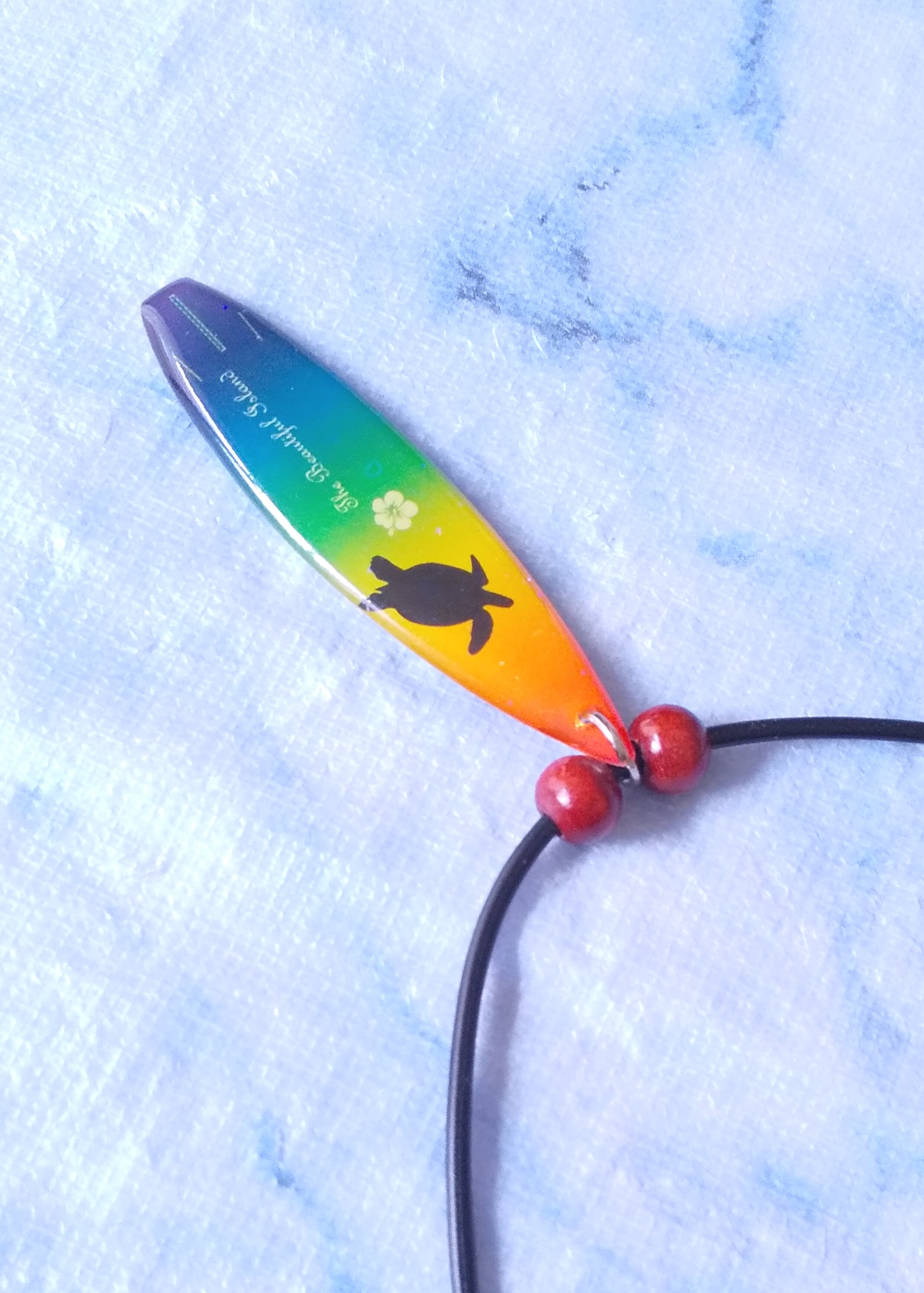 ハワイアンネックレス レインボーカラー ホヌデザイン サーフボード B-337