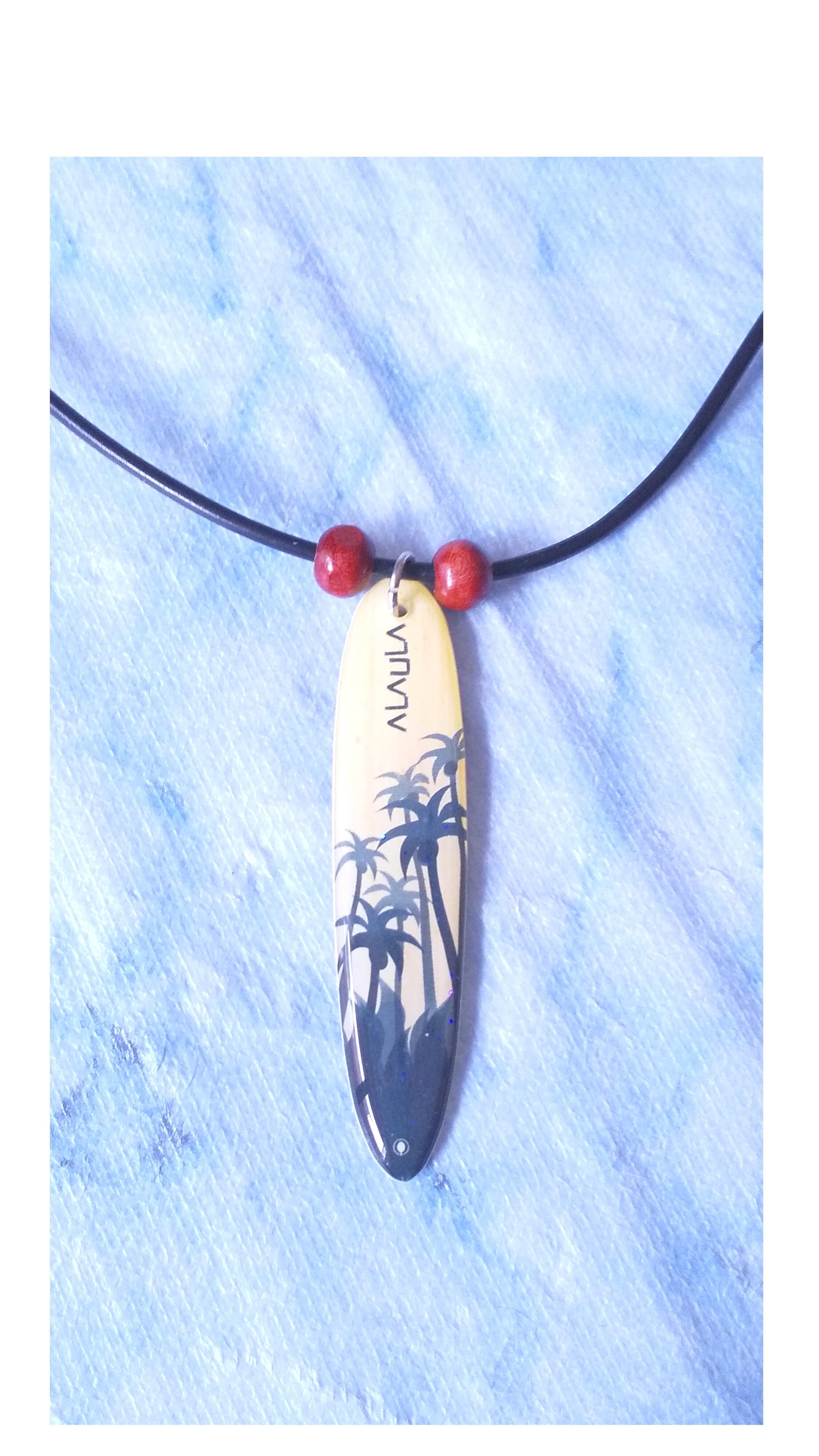 ハワイアンネックレス ホワイト&ブルーカラー ヤシサーフボード B-338