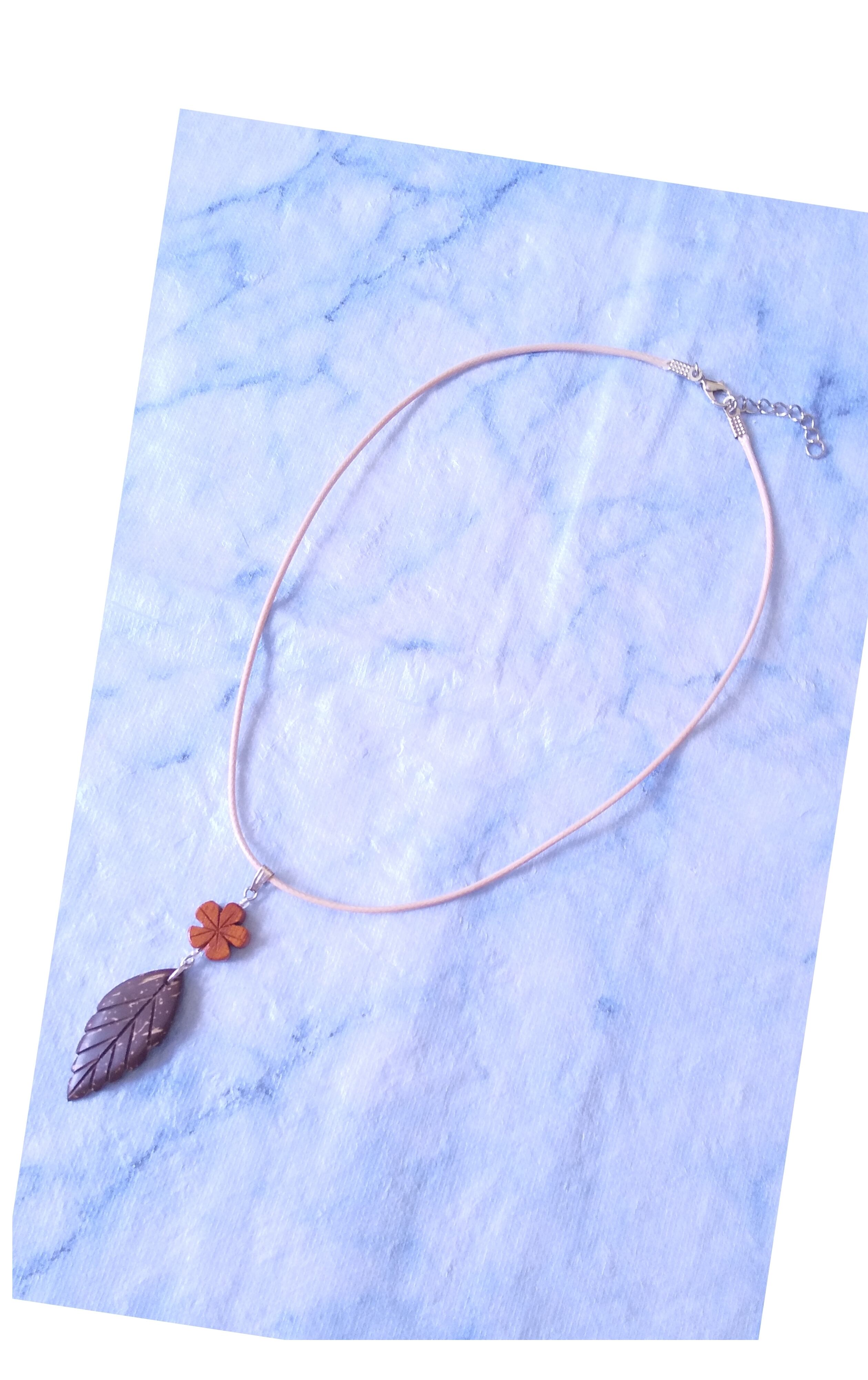 ハワイアンネックレス 椰子ウッドリーフ& ハワイウッドプルメリア U-514