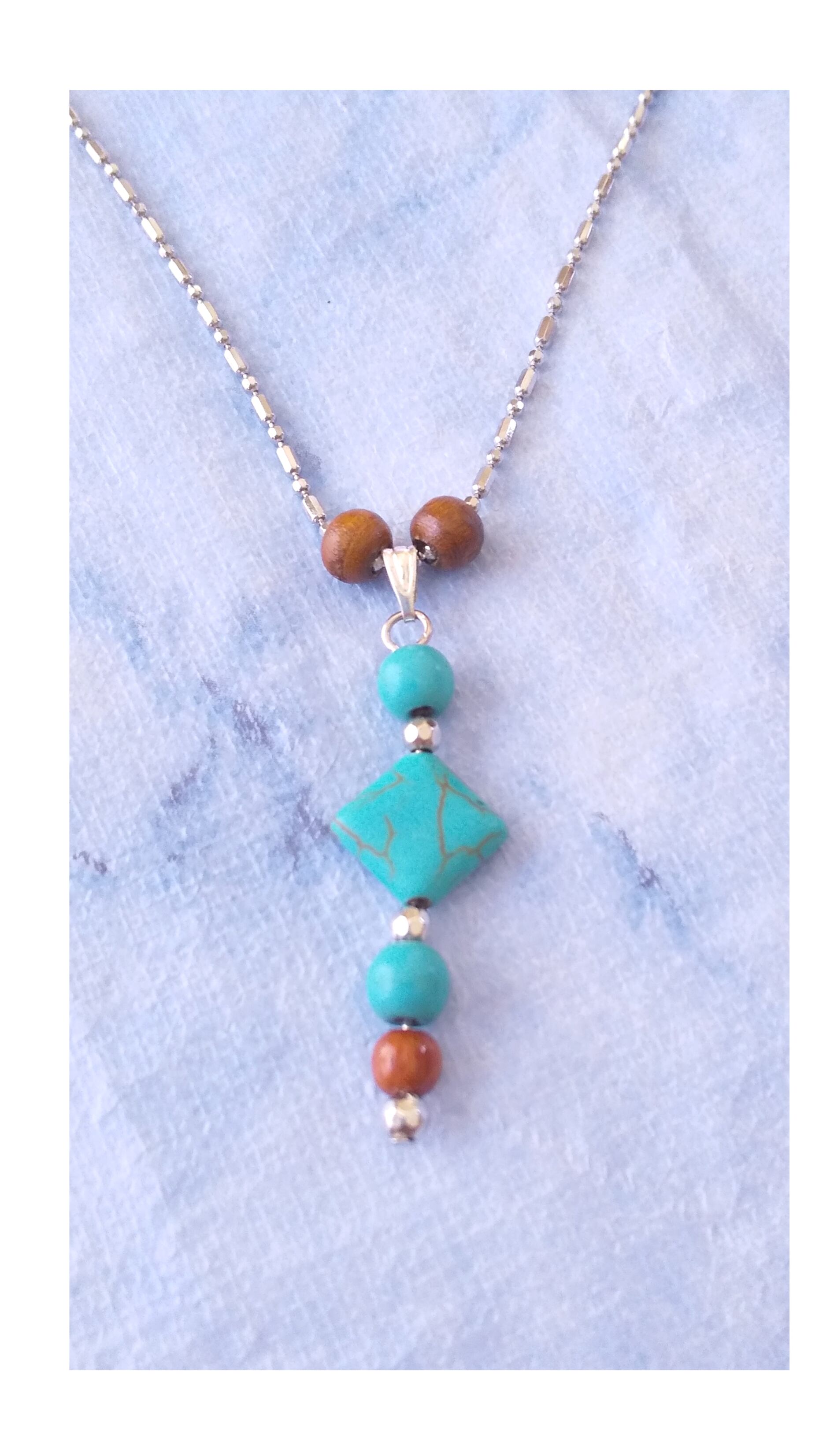 ターコイズネックレス ユニセックスサイズ スクエア&ウッドボール T-909