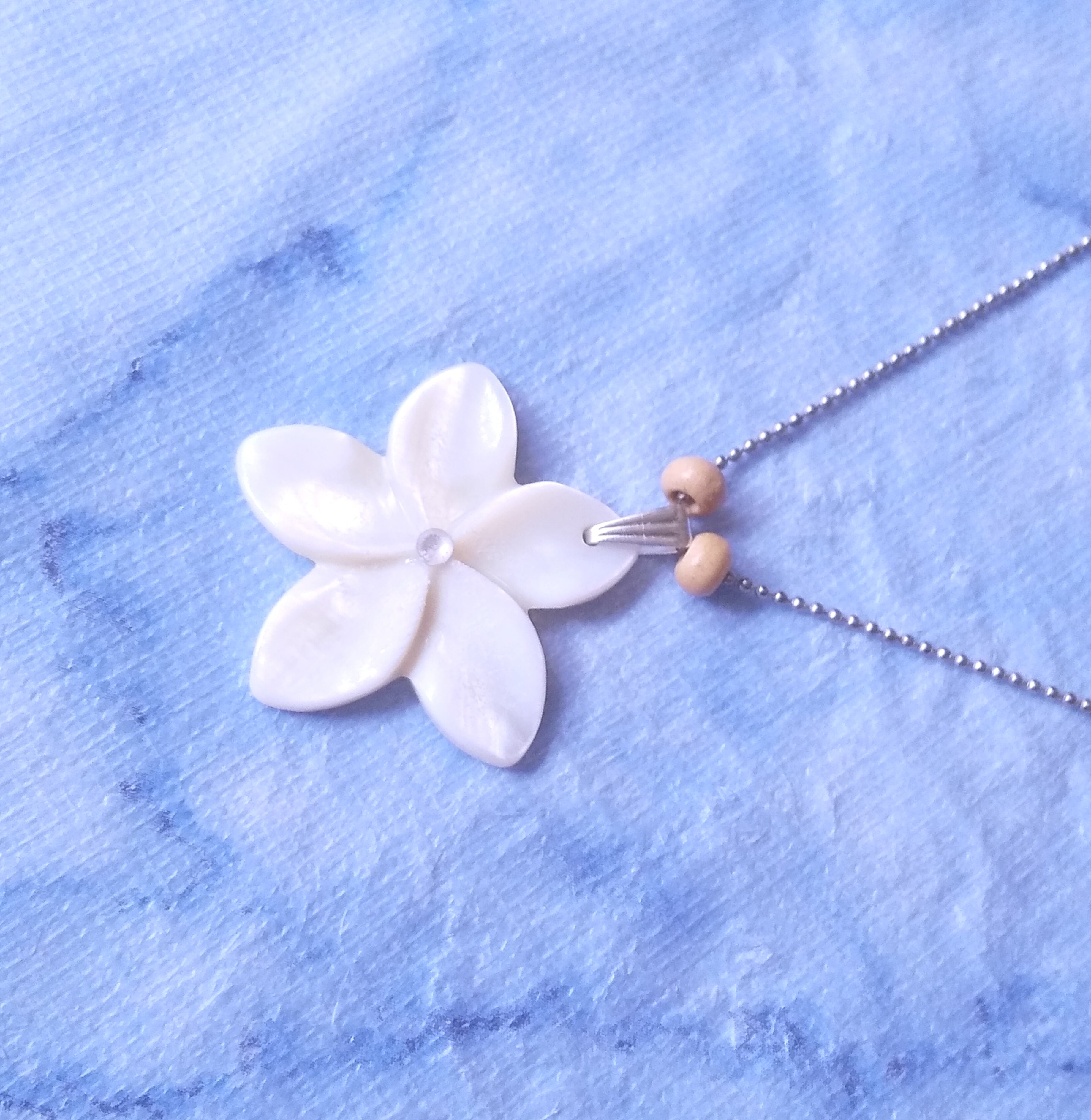 ハワイアンネックレス 天然シェル ホワイトカラー プルメリア P-692