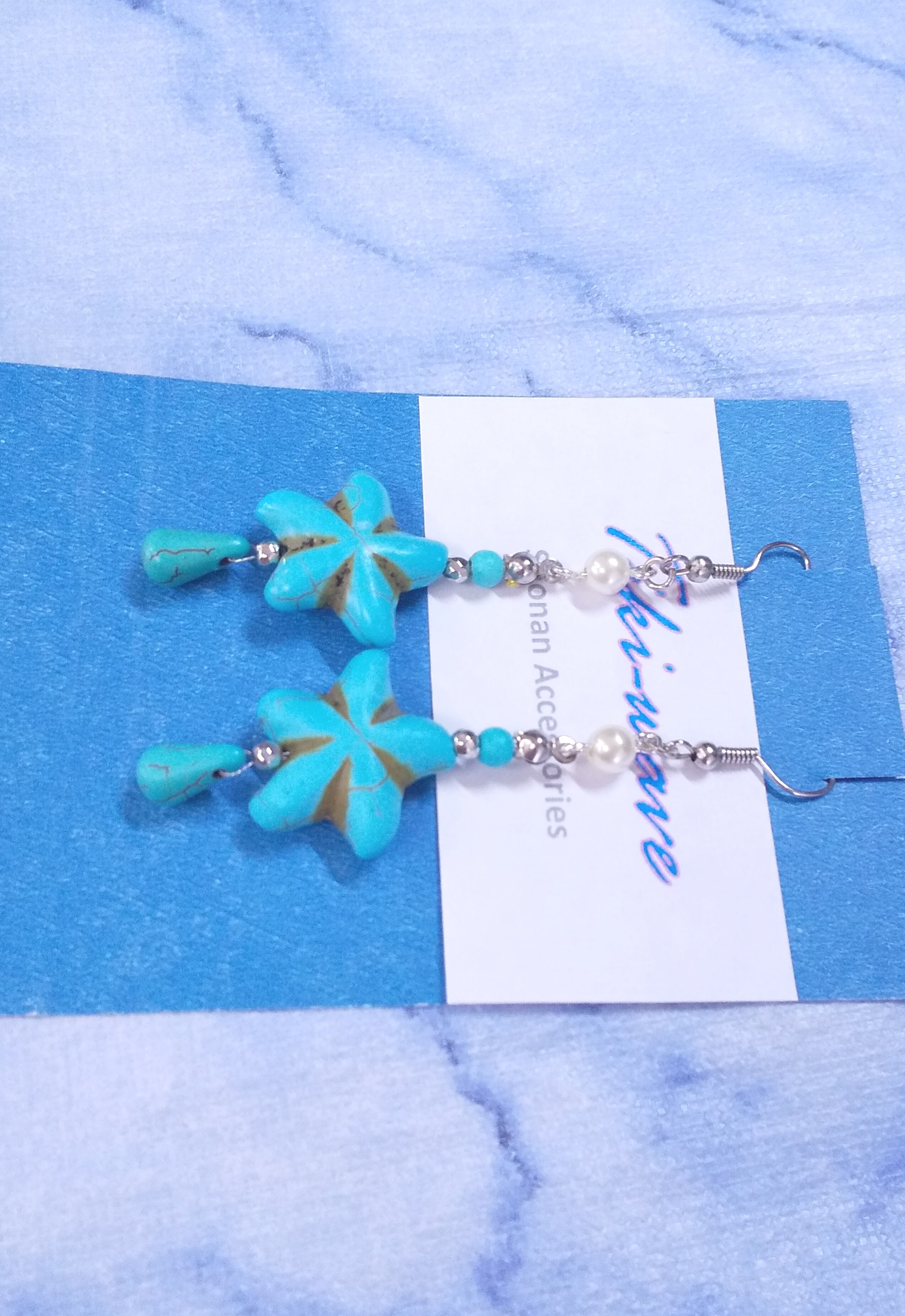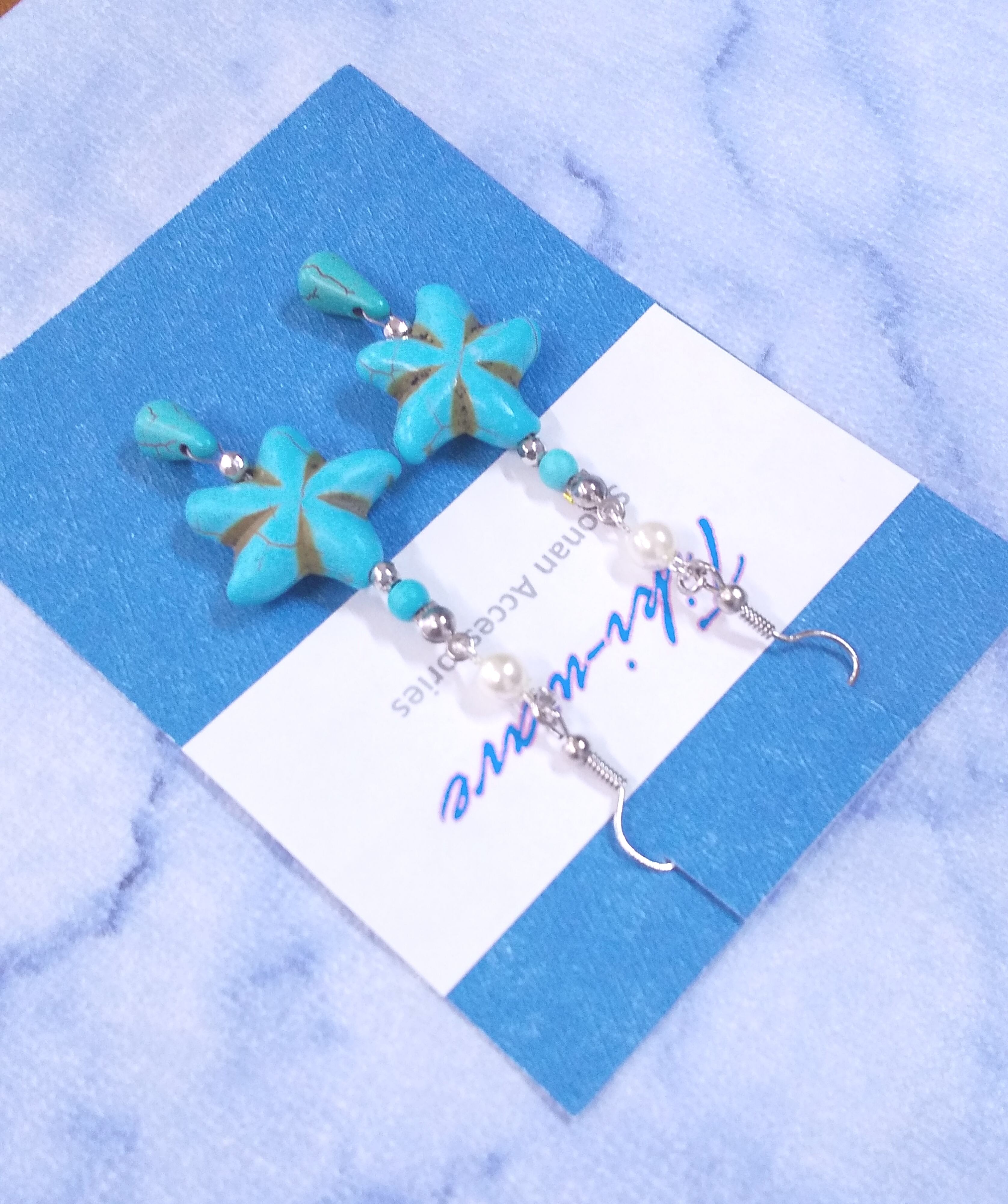 ターコイズピアス スターフィッシュ& ティアドロップ パール A-360
