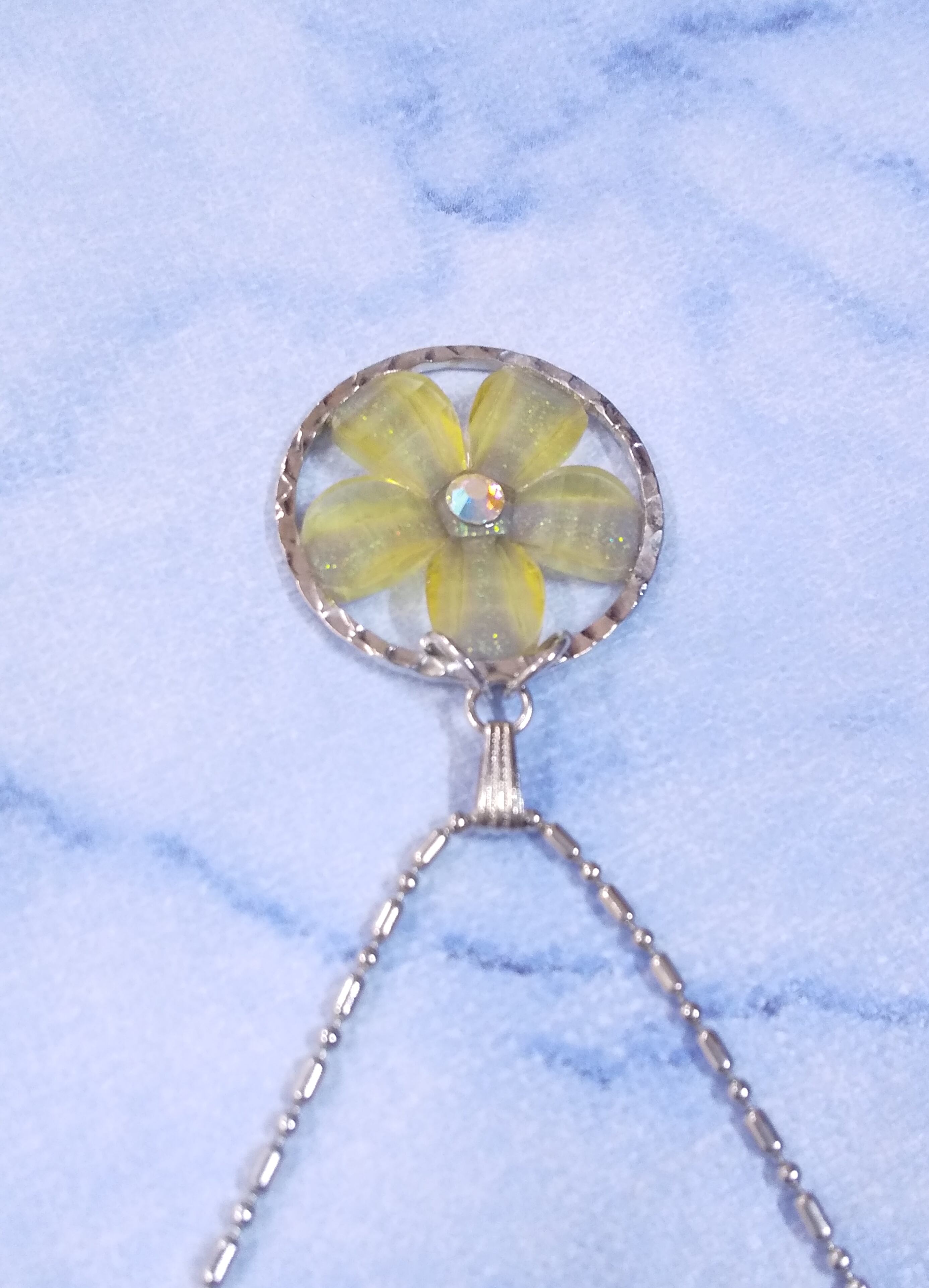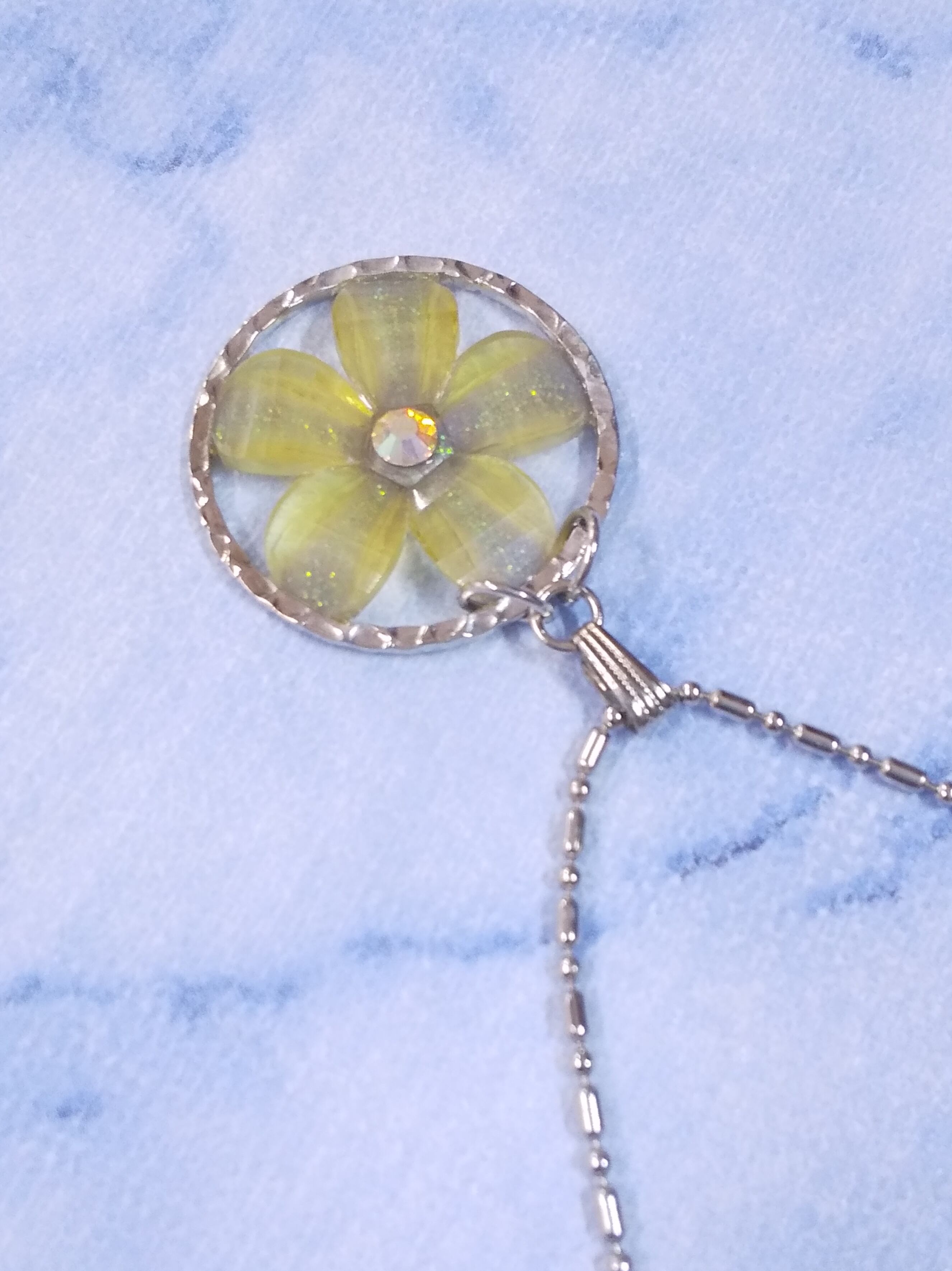 ハワイアンネックレス イエローグリーンカラー サークルプルメリア P-696
