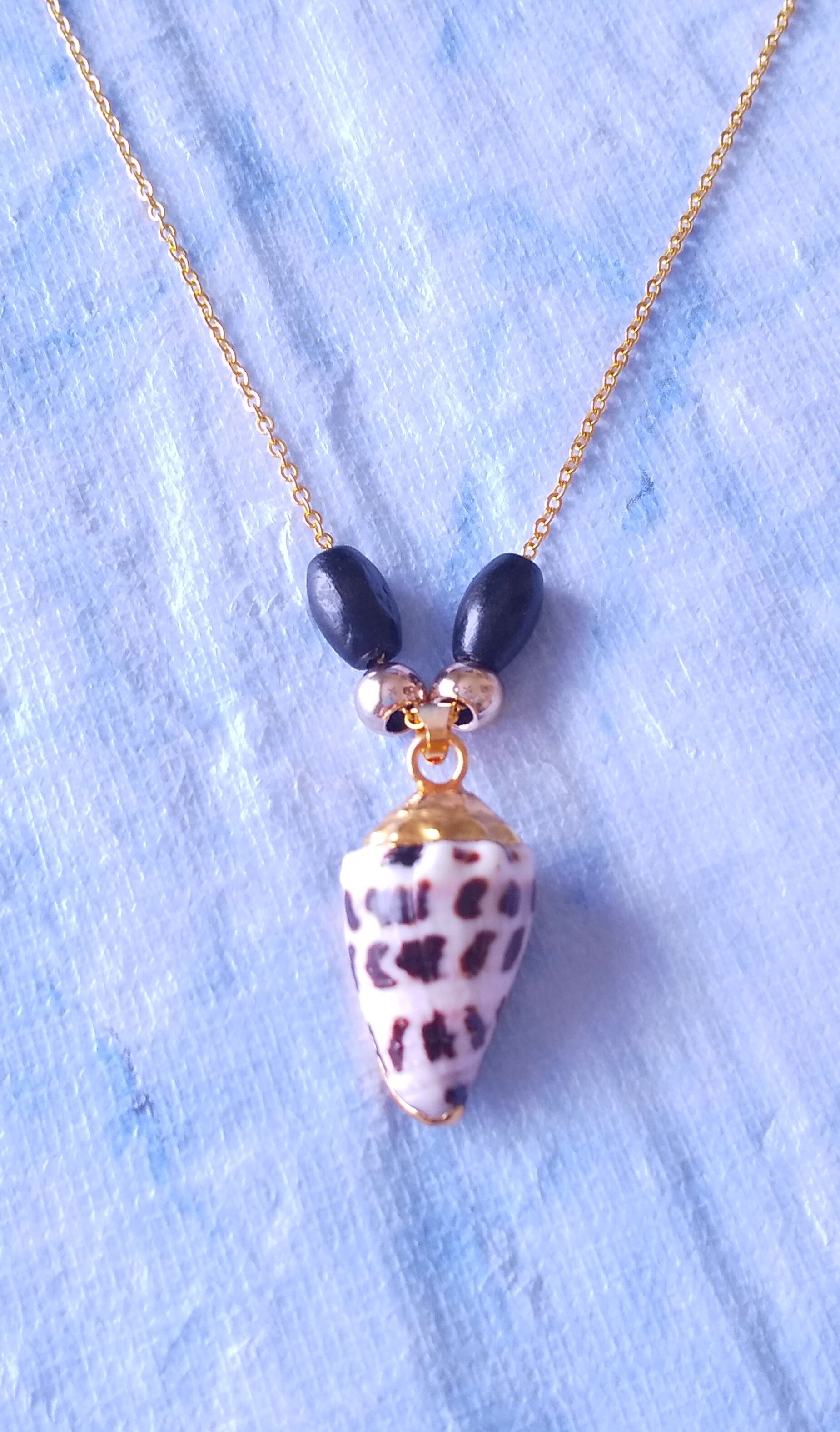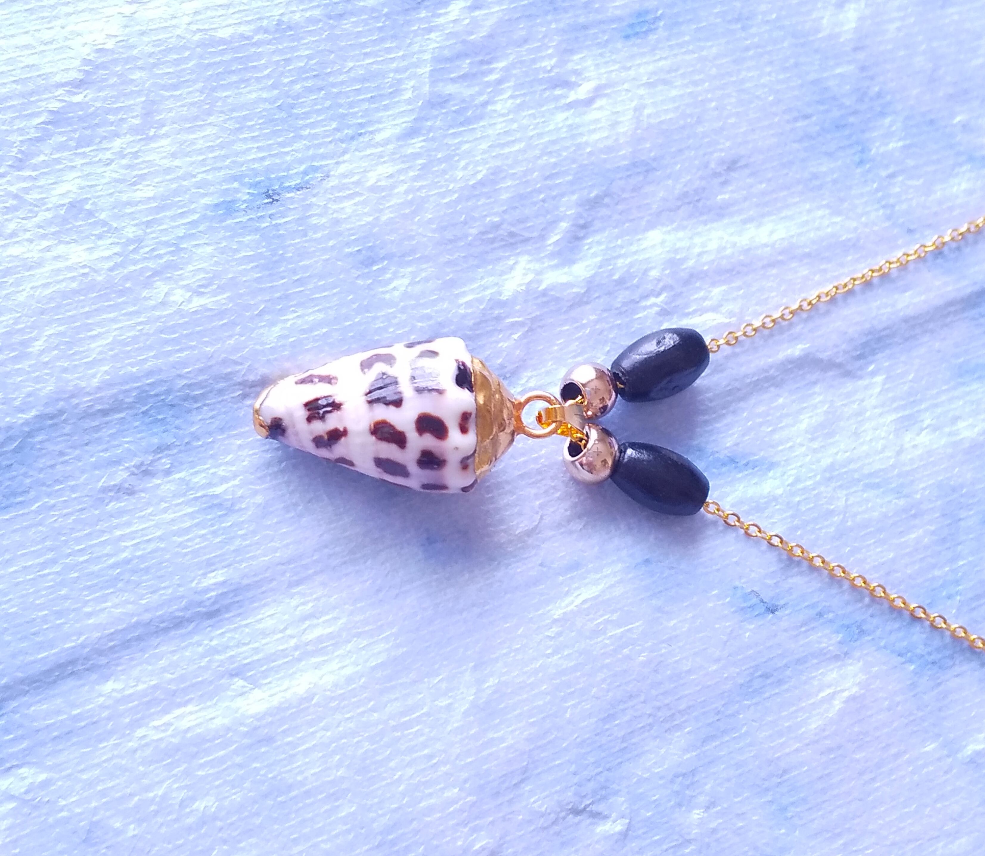 ハワイアンネックレス 天然シェル巻き貝& ゴールドチェーン S-363