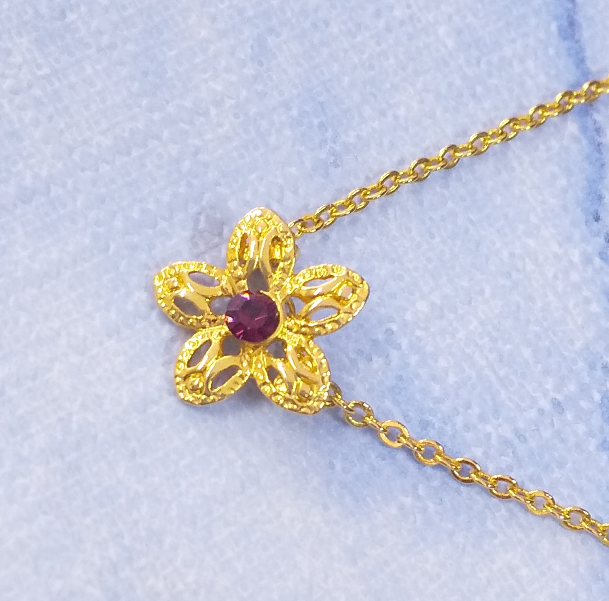 ハワイアンネックレス ゴールドカラー プルメリア& ガーネット P-670