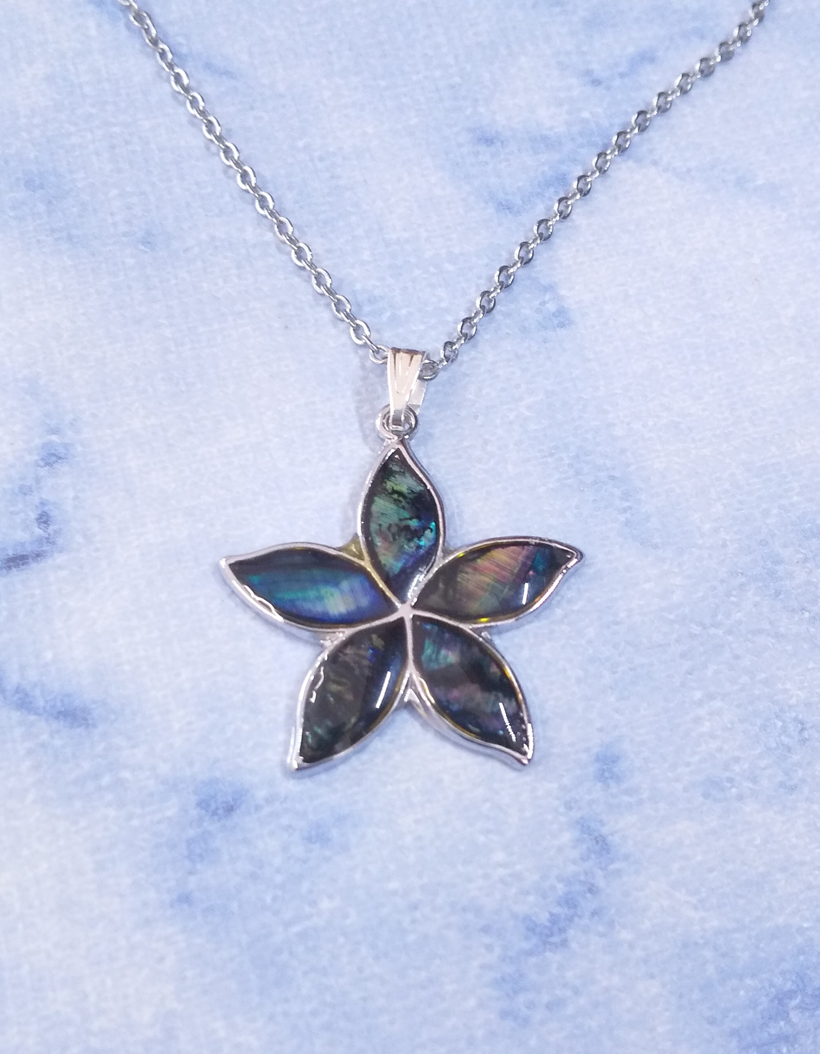 ハワイアンネックレス パウアシェル ブルーカラー プルメリア P-698