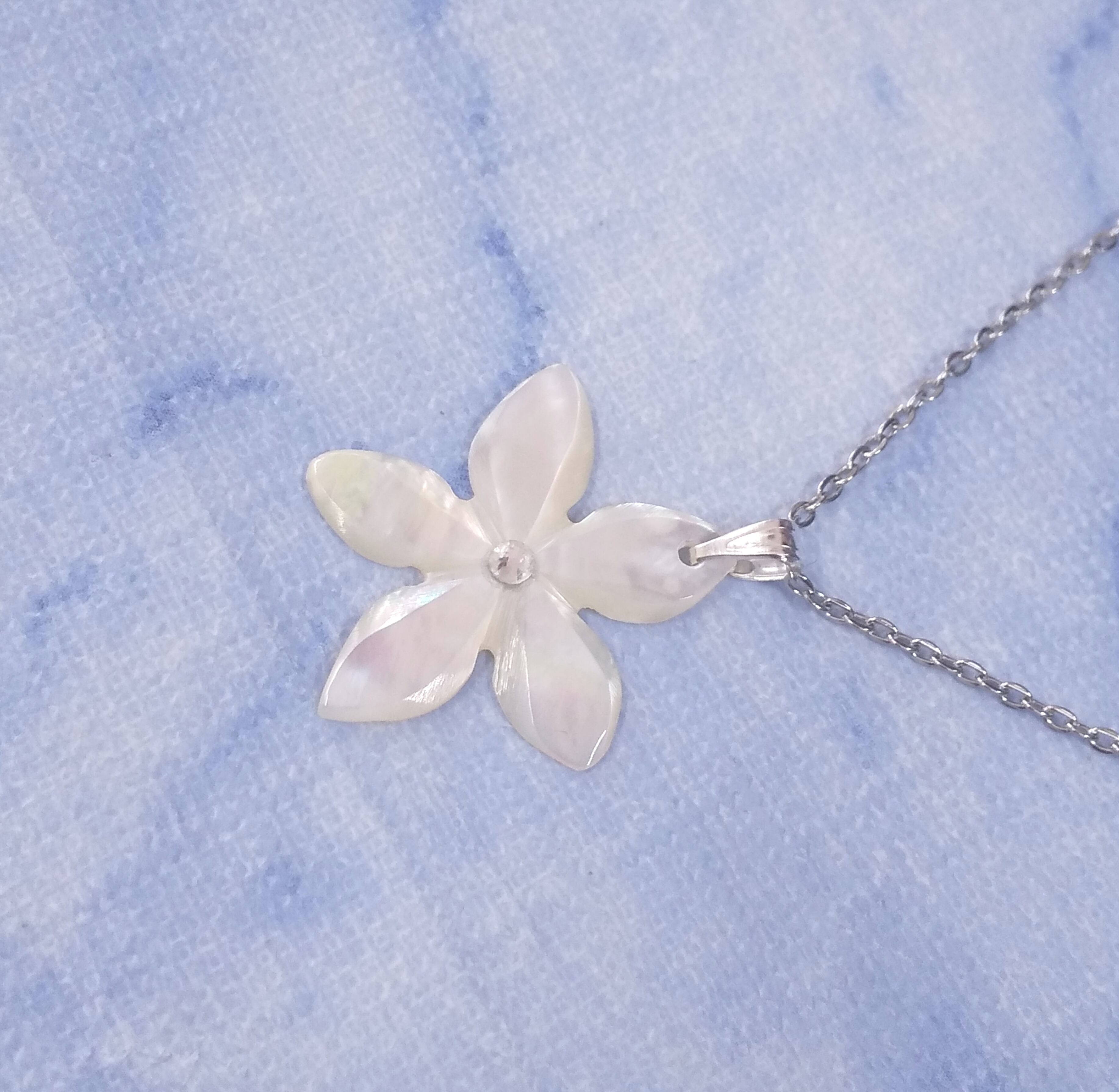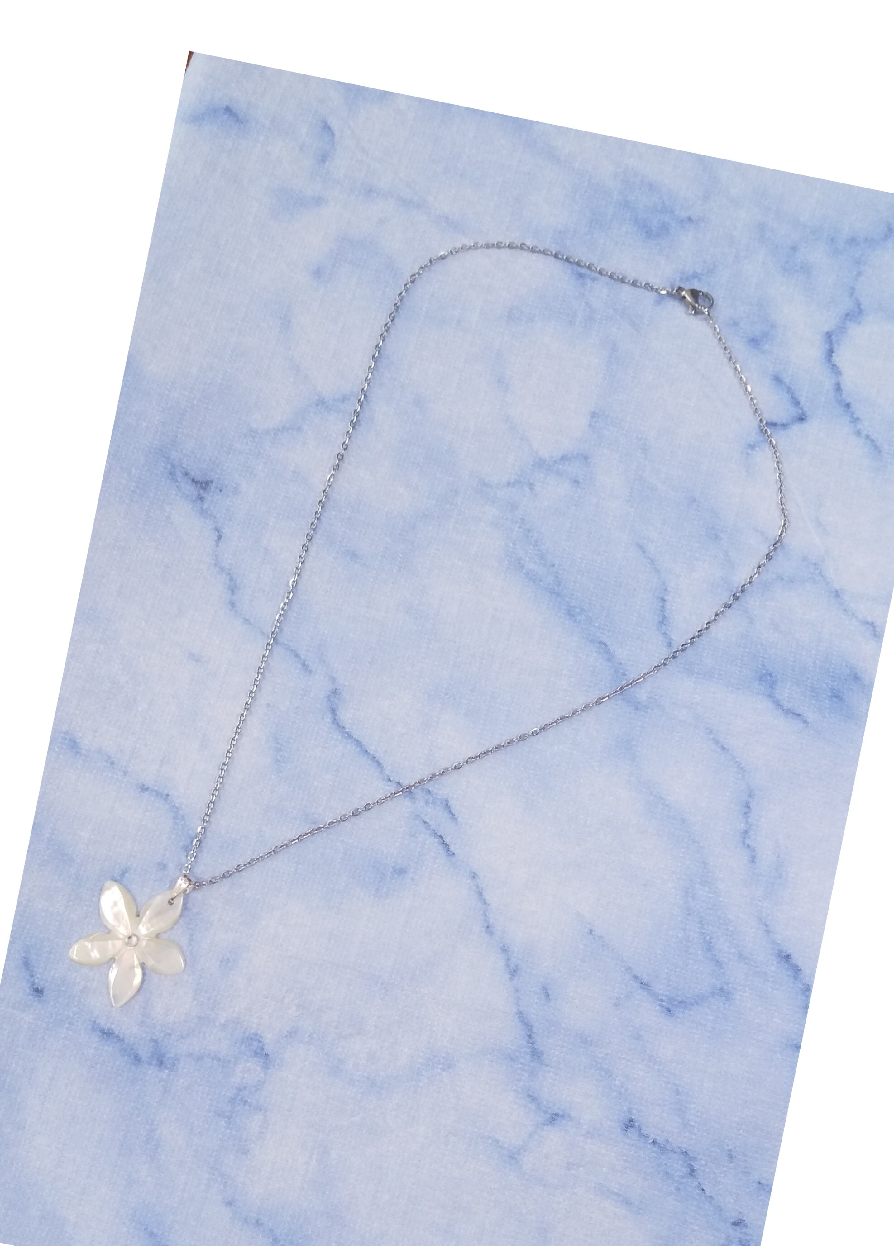 ハワイアンネックレス ホワイトカラーシェル プルメリア&CZ P-699