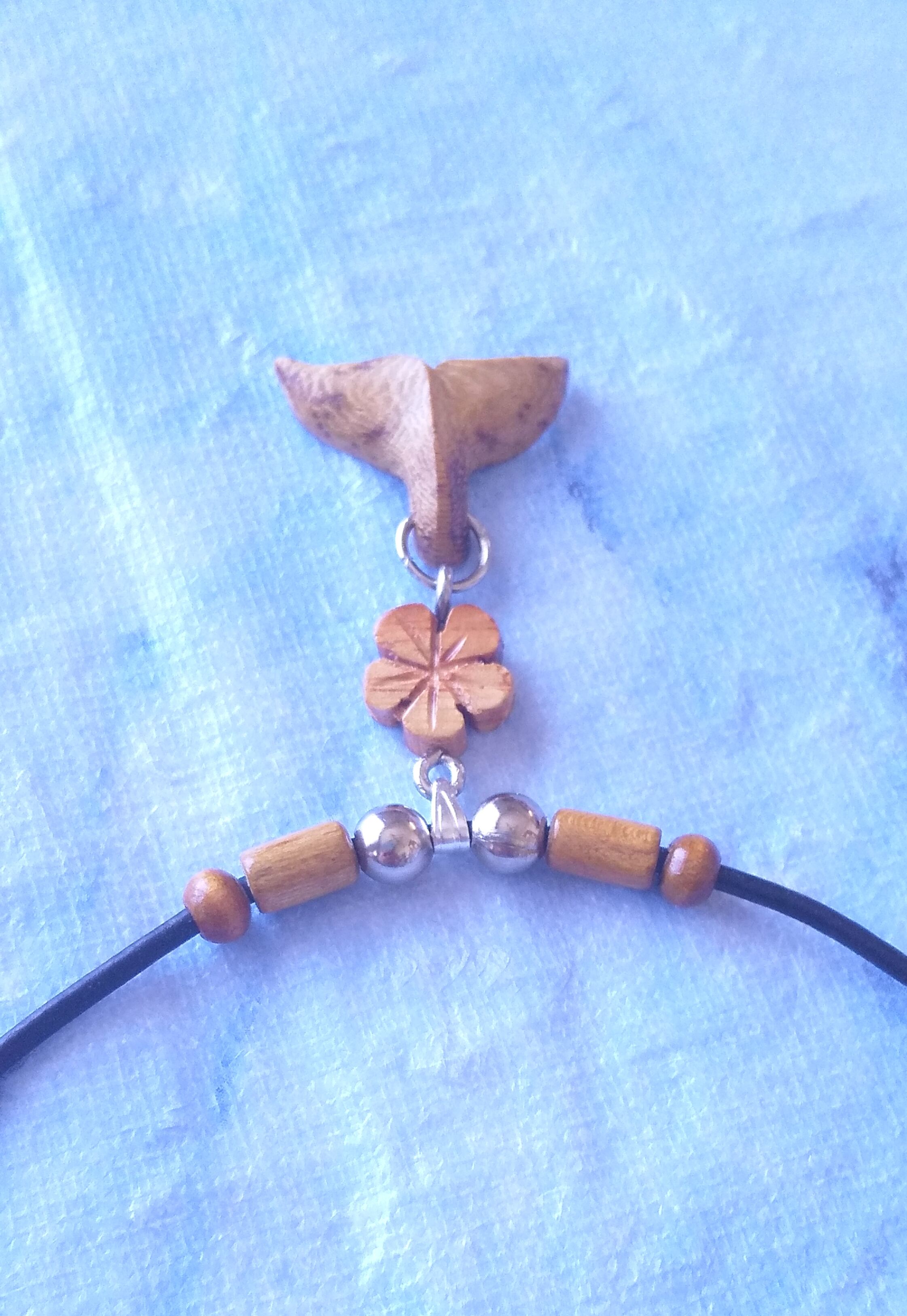 ハワイアンネックレス 天然ウッド ドルフィンテール&プルメリア D-233
