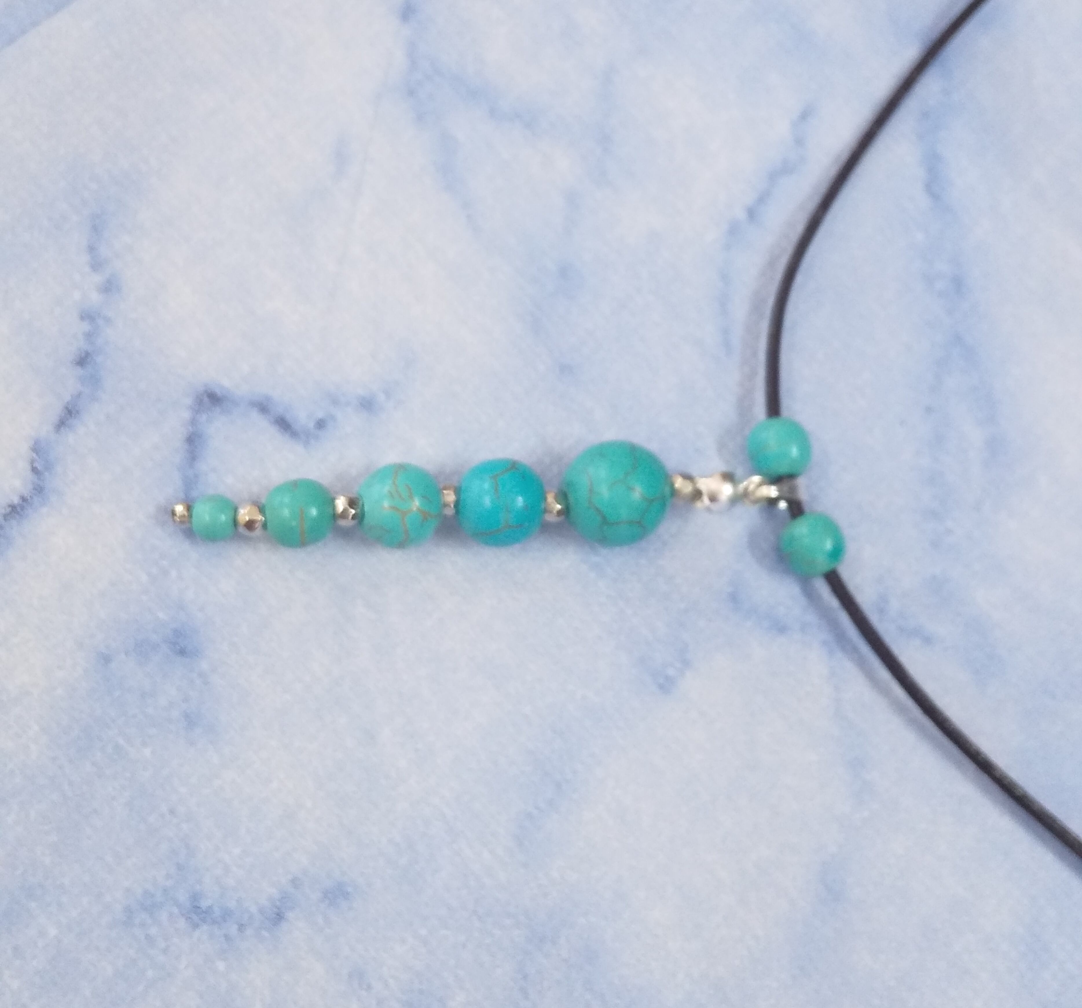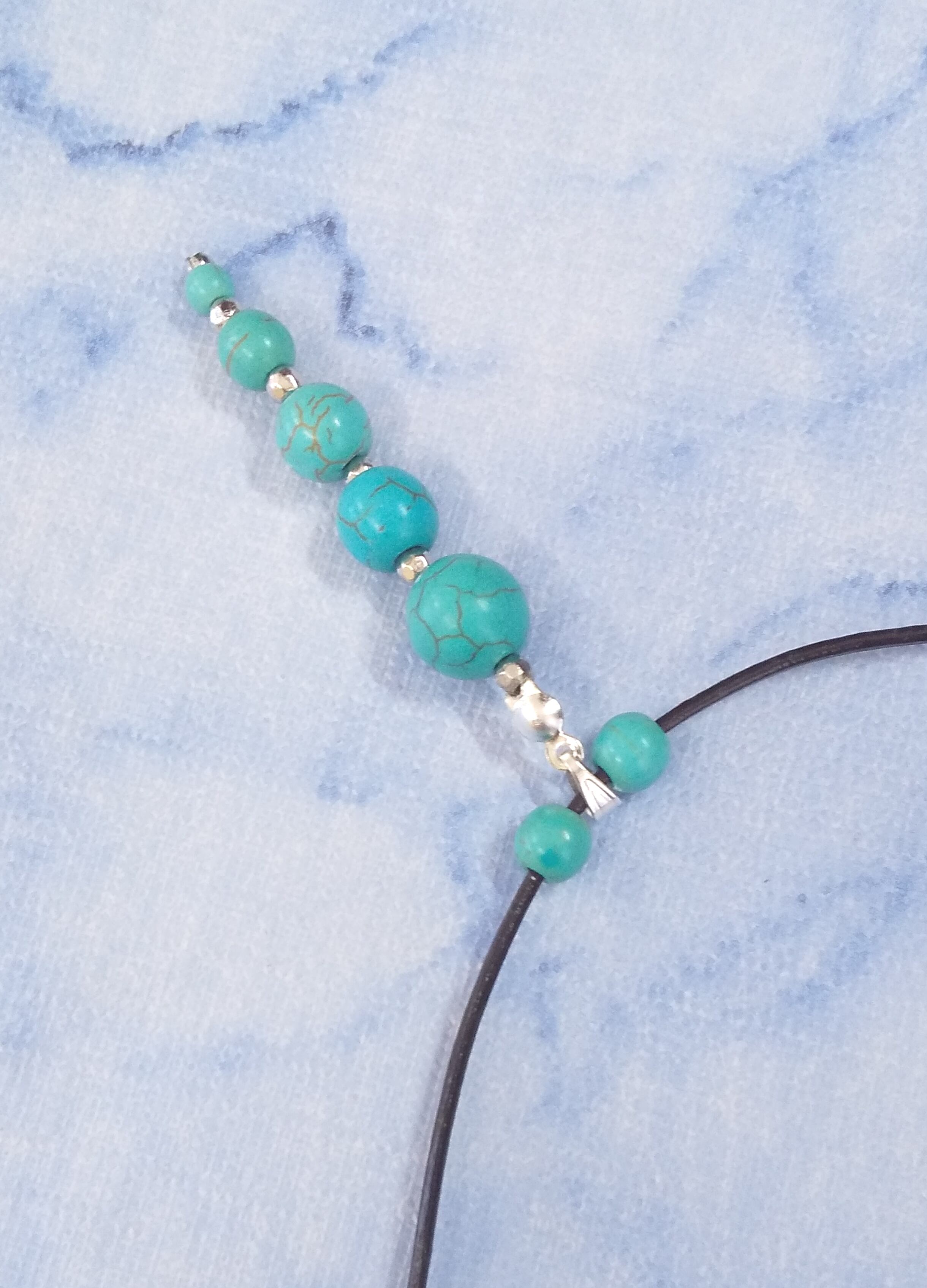 ストーンネックレス 5連ボールブルーターコイズ &本革黒紐 T-912