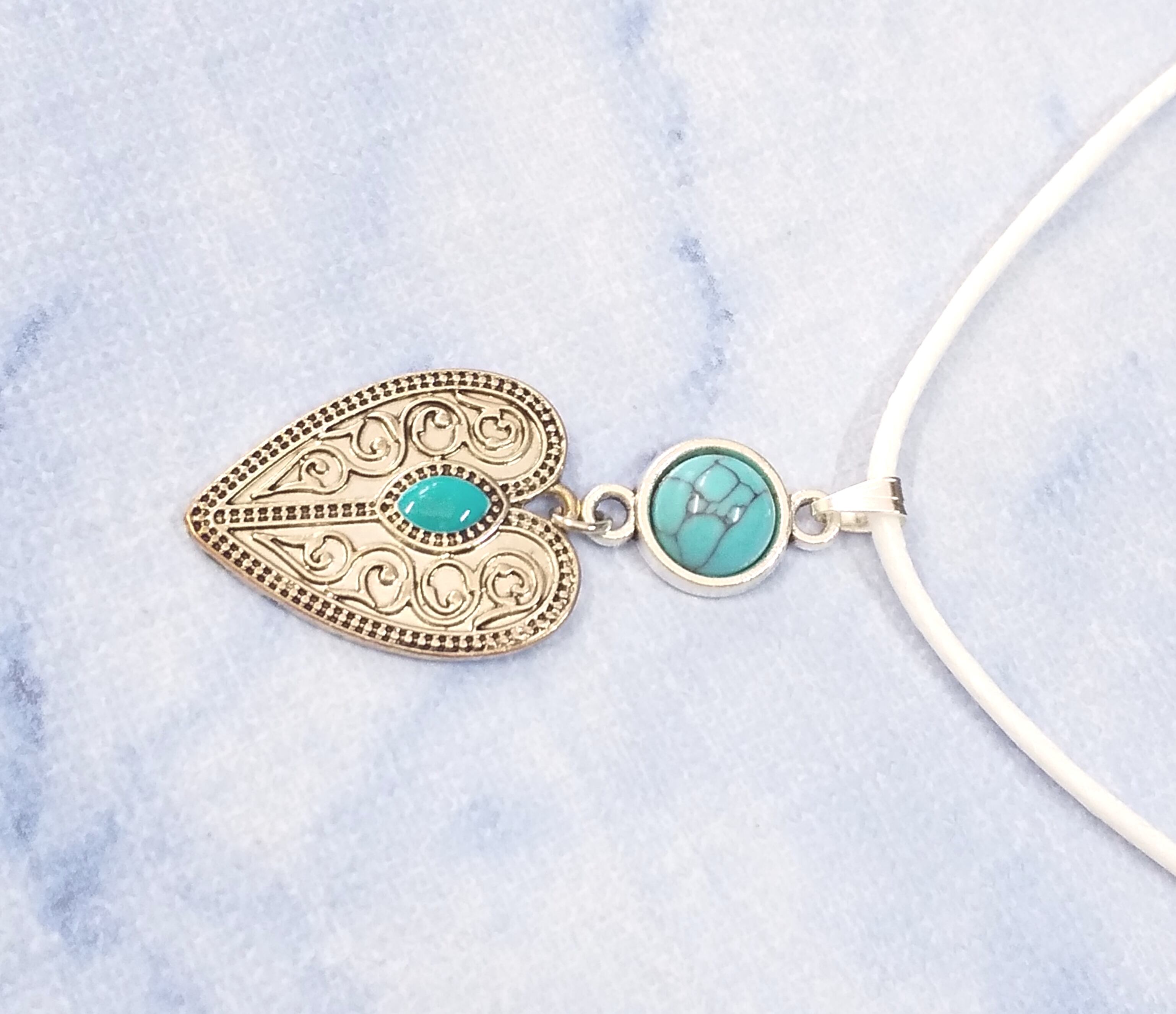 レディースネックレス シルバーデザインハート& サークルターコイズ T-913