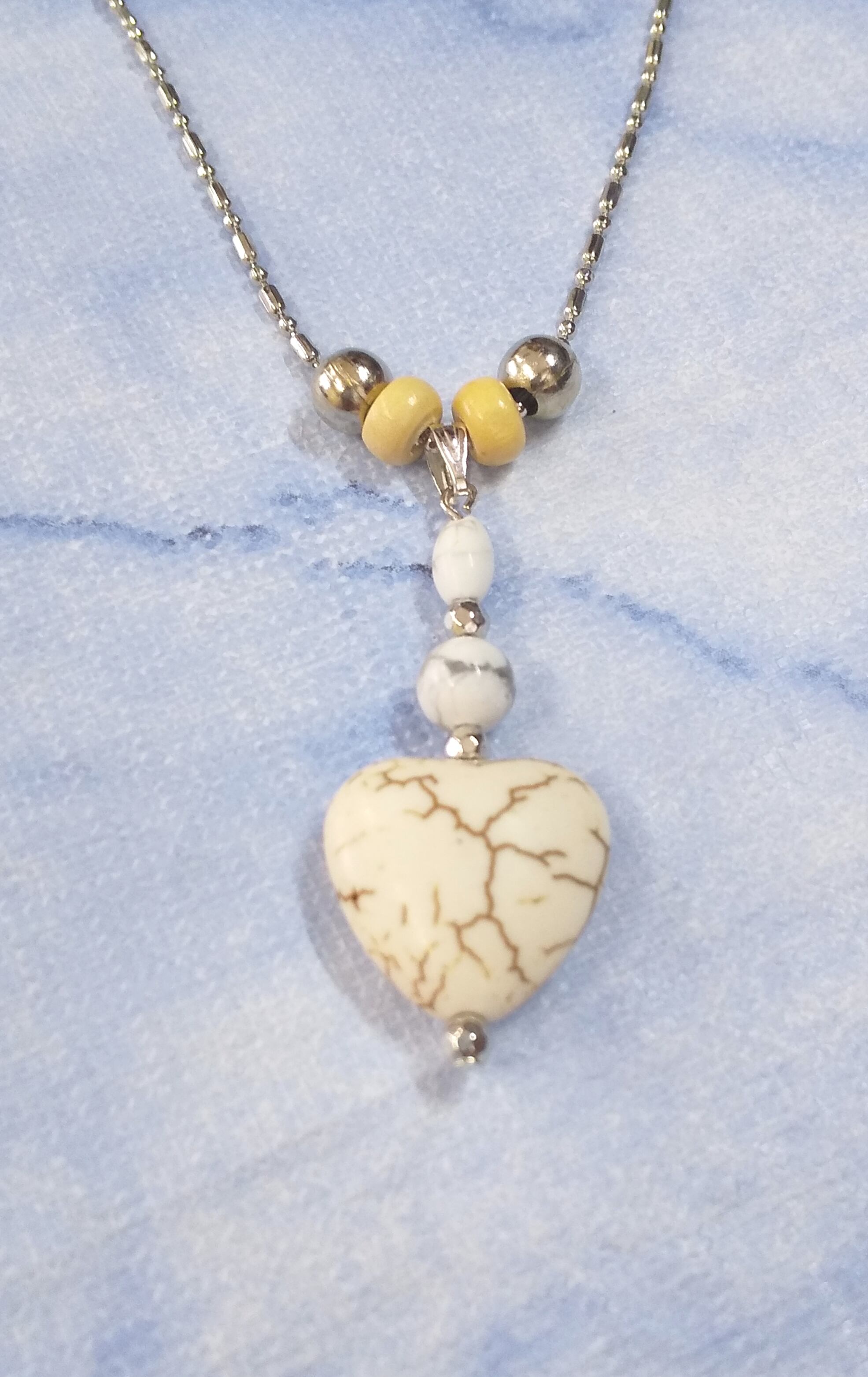 レディースネックレス ホワイトカラーターコイズ ハート&ボール T-914