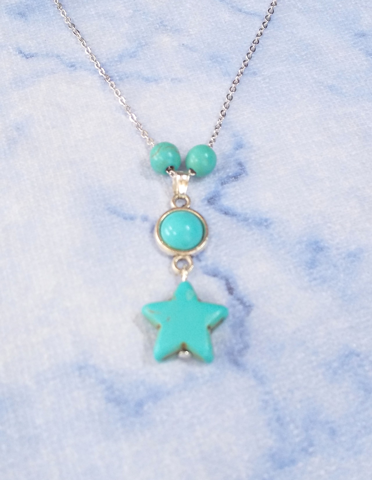 レディースネックレス 2連ターコイズ スター& サークル ボール T-915