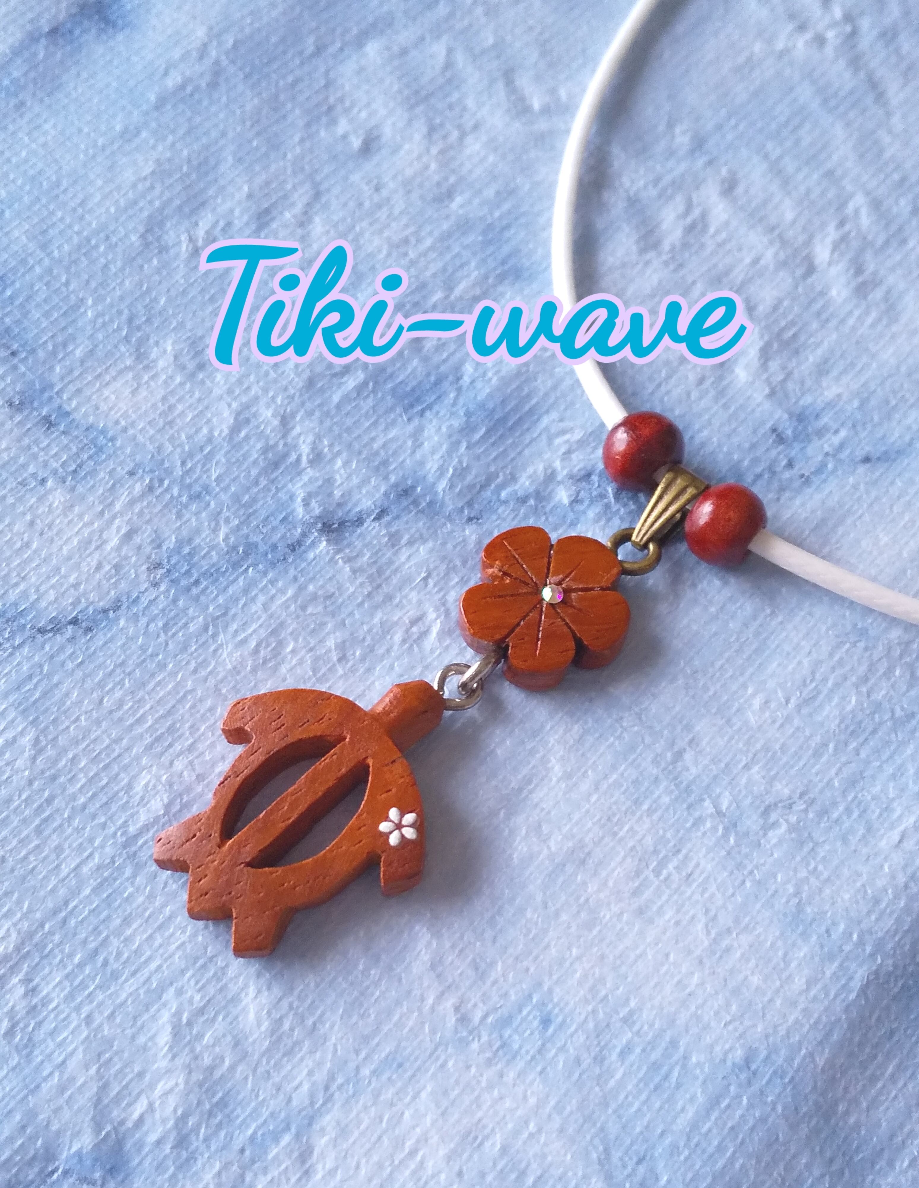 ハワイアンネックレス 天然ハワイウッド ホヌ&プルメリア ナイロン紐 H-172