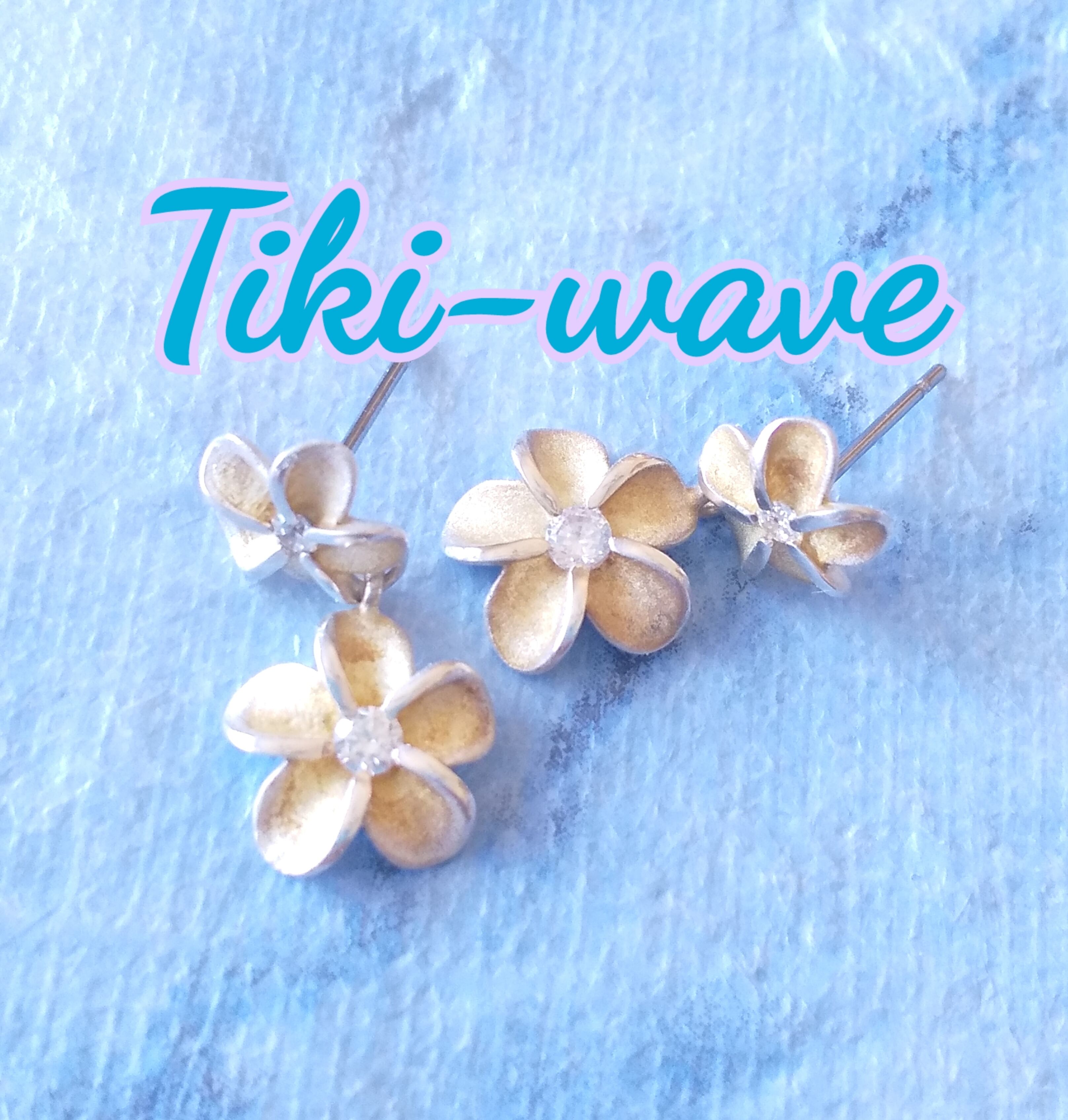ハワイアクセサリー シルバー925 シャンパンカラー プルメリア 2連ピアス A-185
