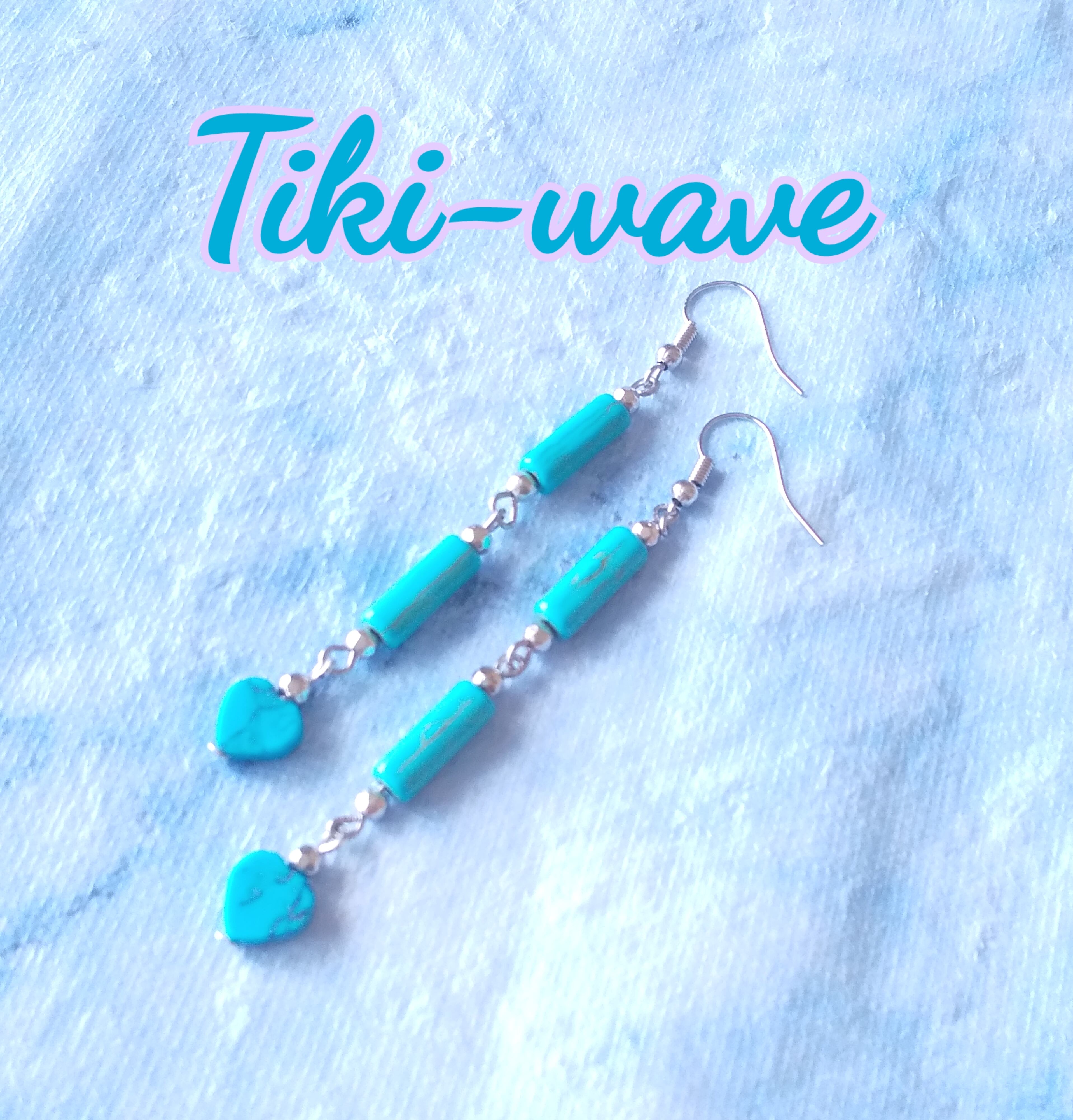 ターコイズ3連ピアス ハート&スティック シルバービーズ A-362