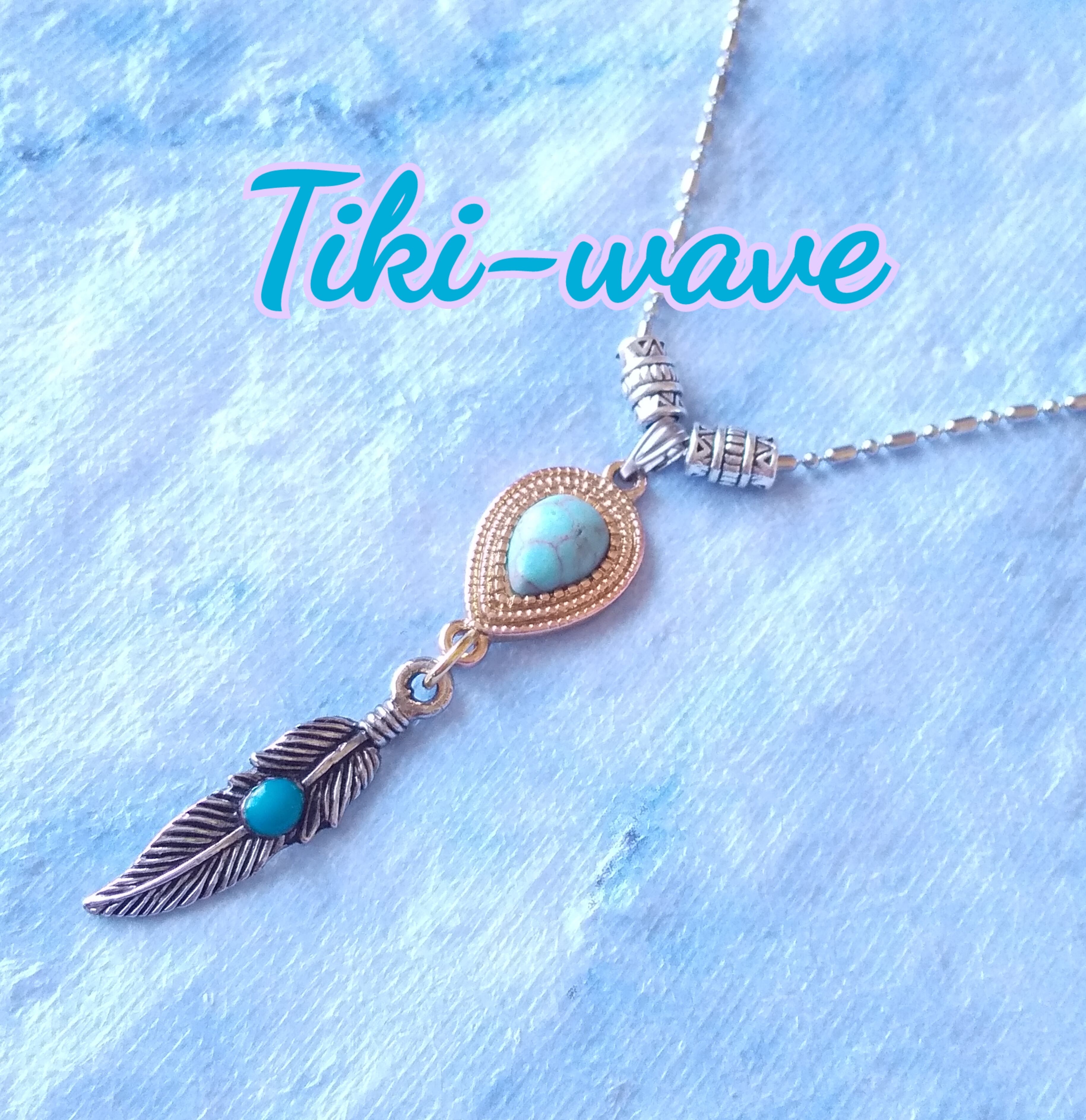 メンズネックレス 2連 シルバーフェザー&ドロップ ターコイズ Y-534