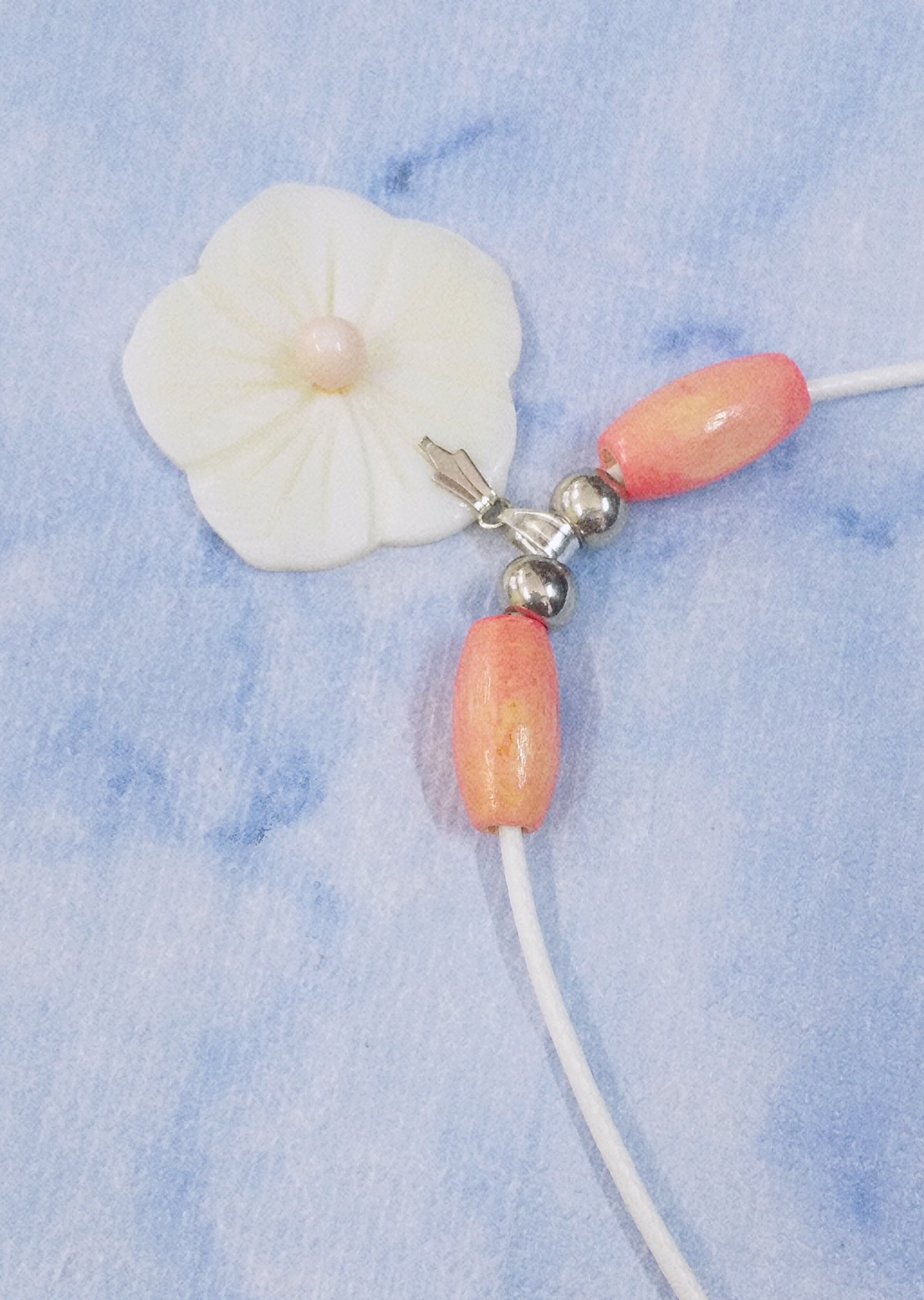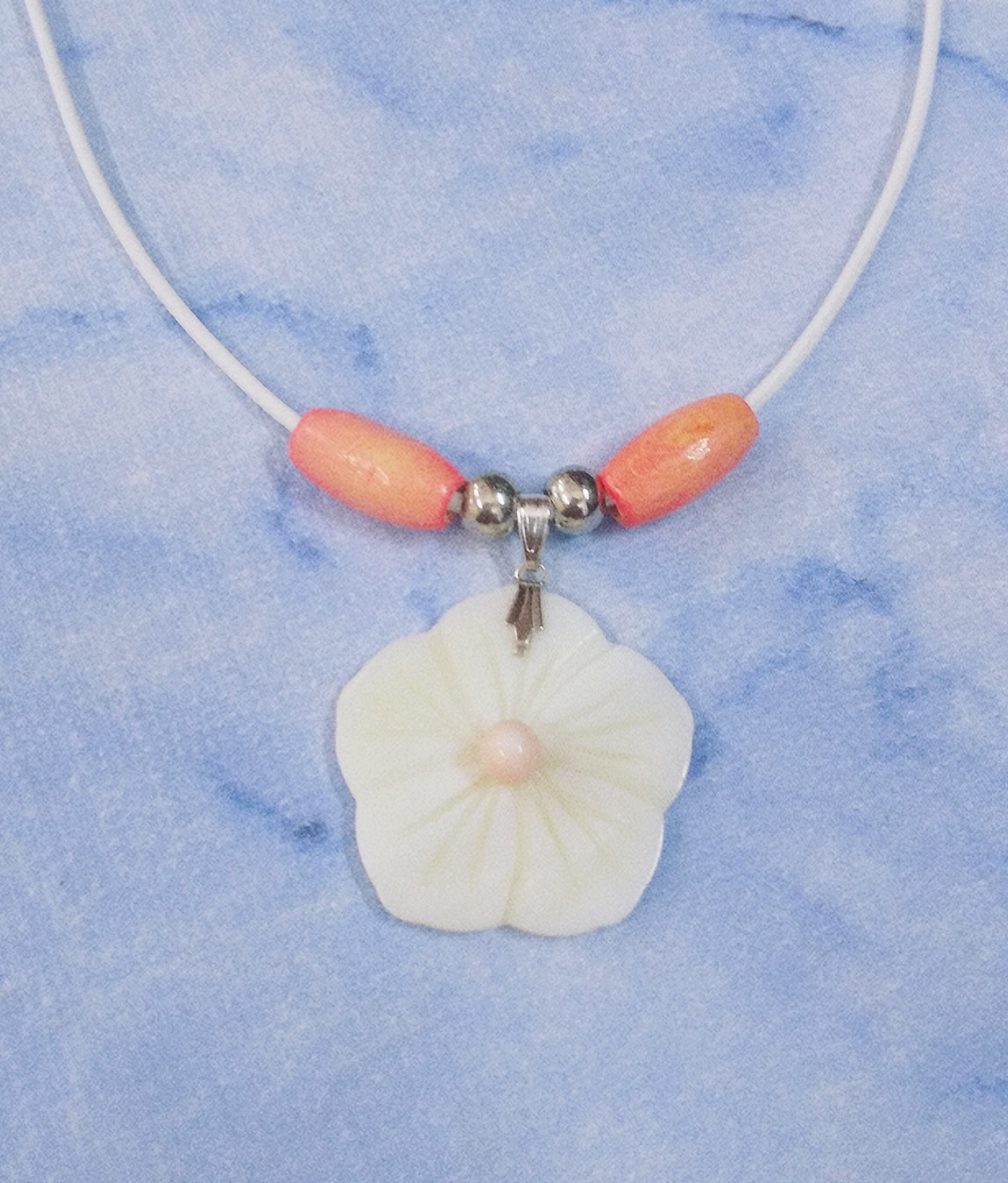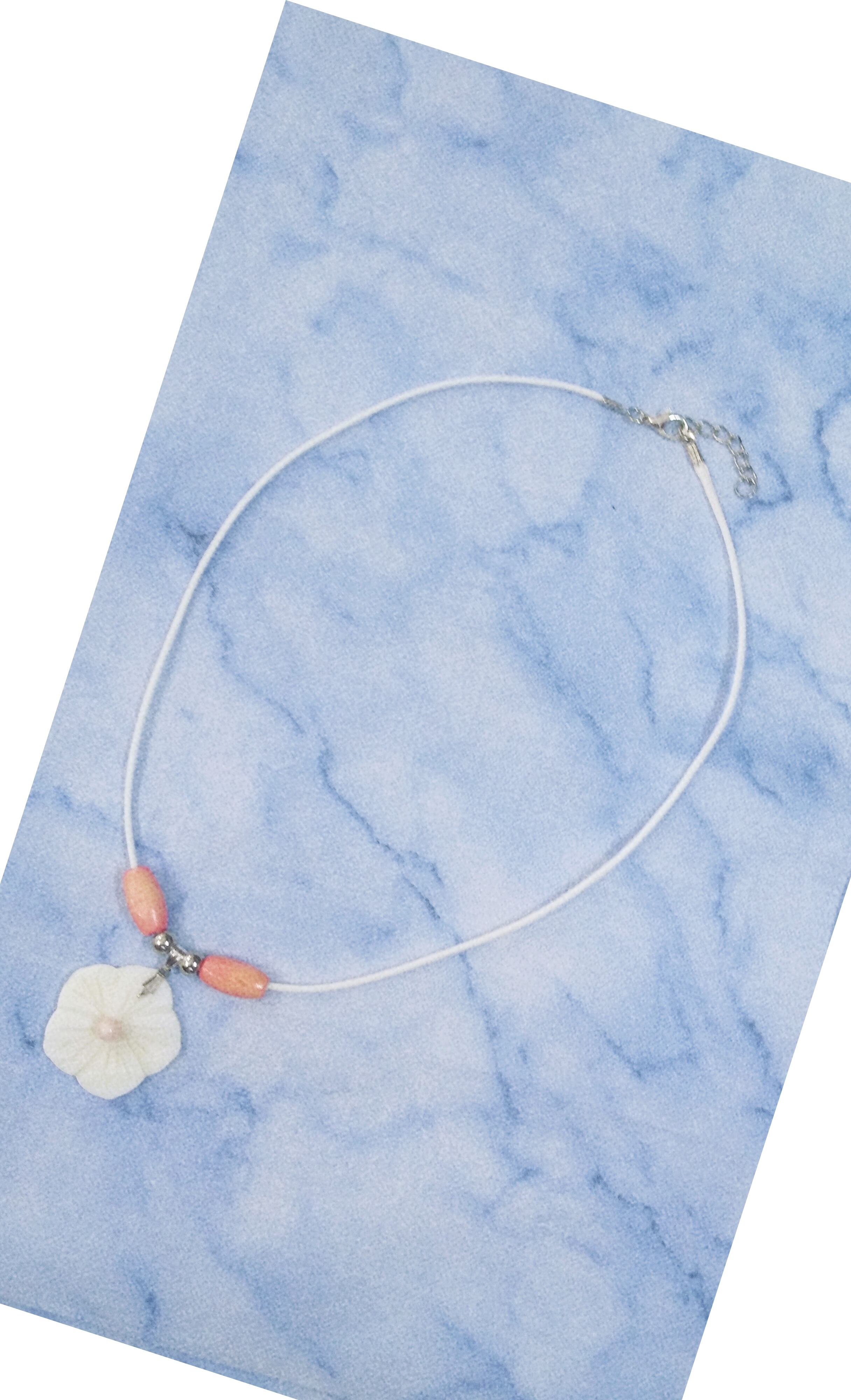 ハワイアンネックレス ホワイトシェルプルメリア&ピンクシェルボール P-675