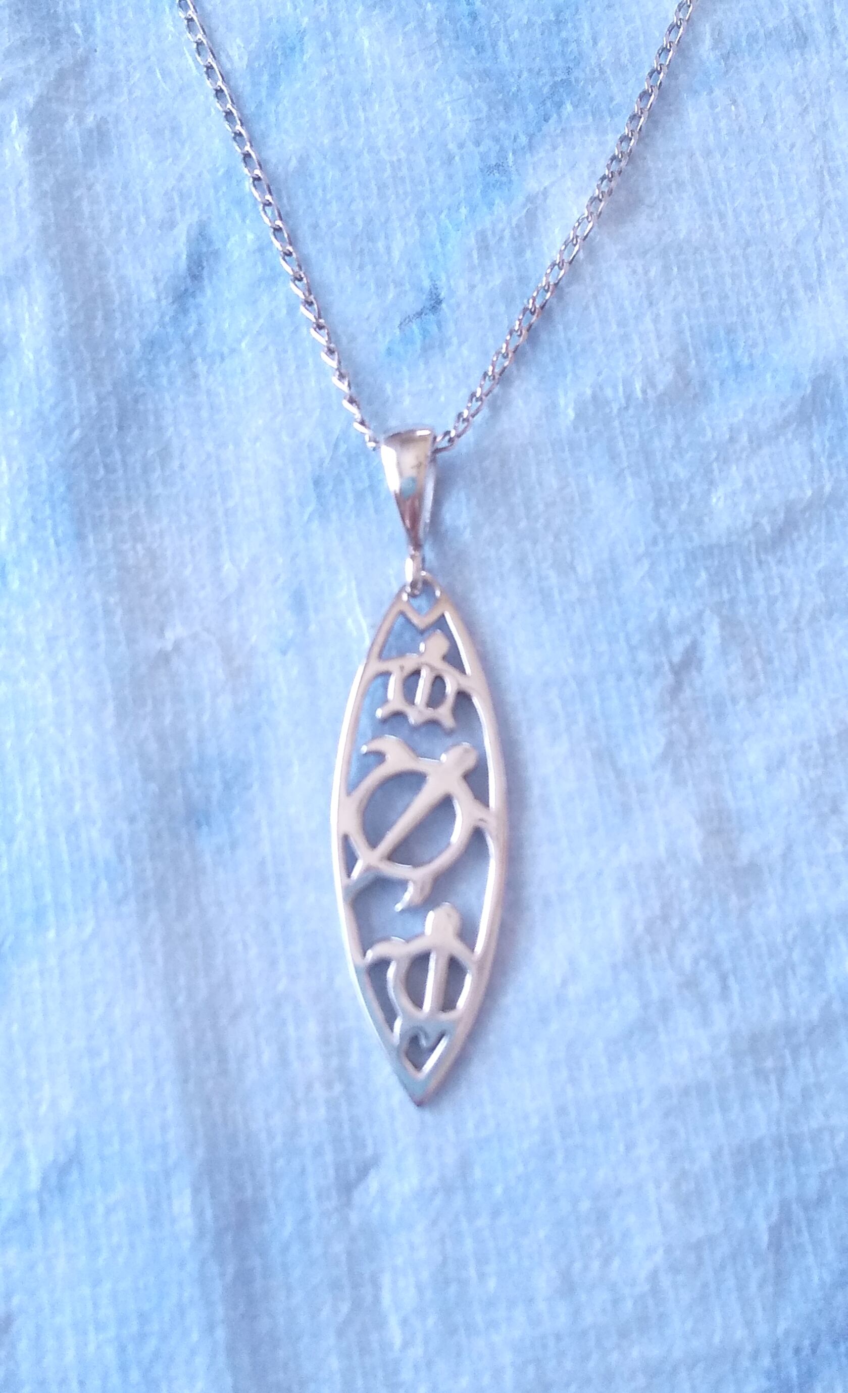 ハワイアンネックレス シルバー925 サーフボード デザイン 3連ホヌ U-175