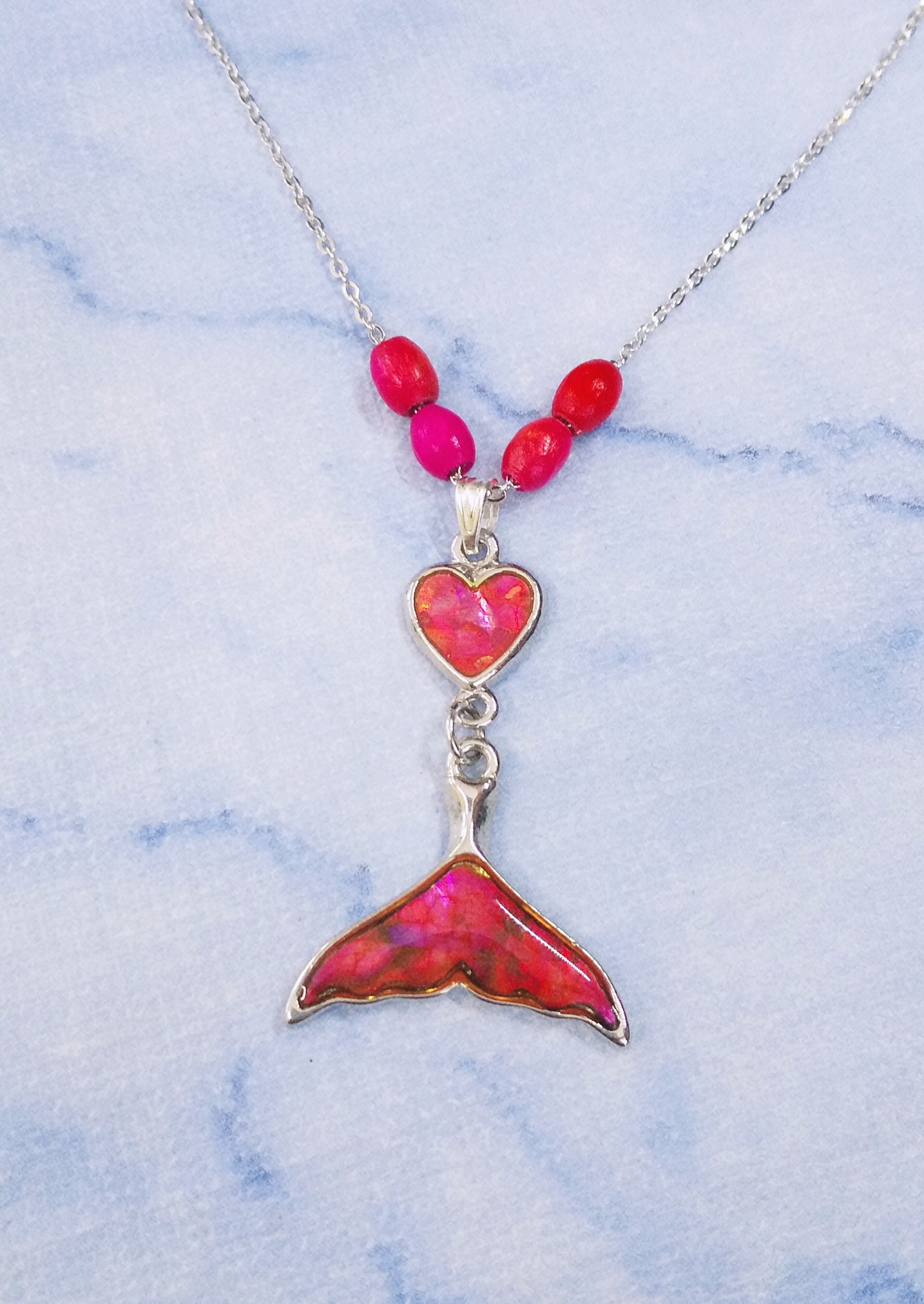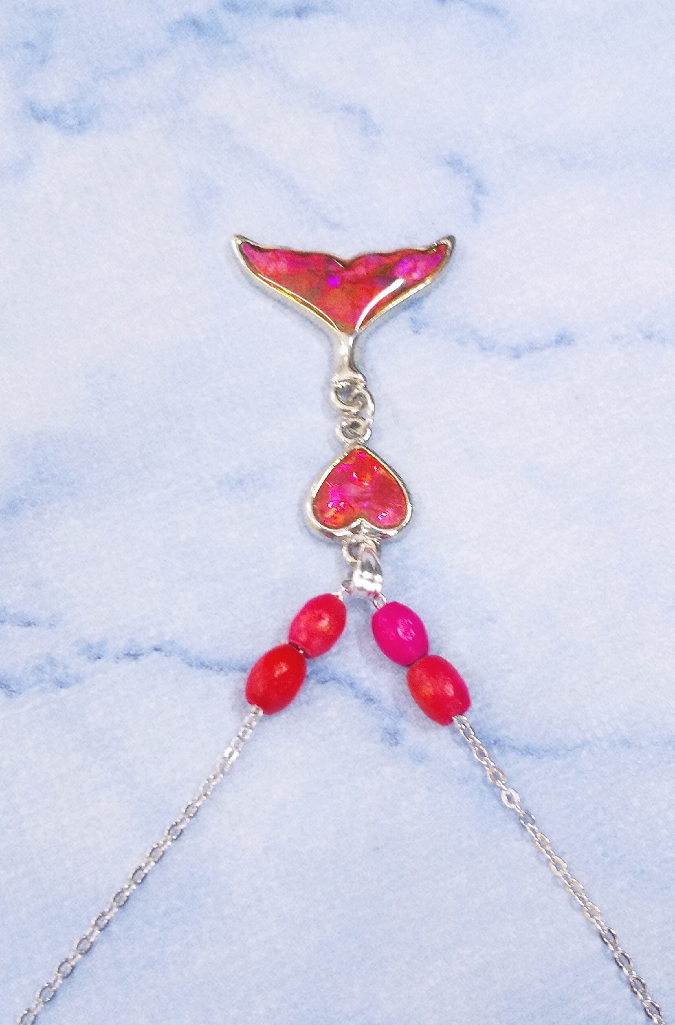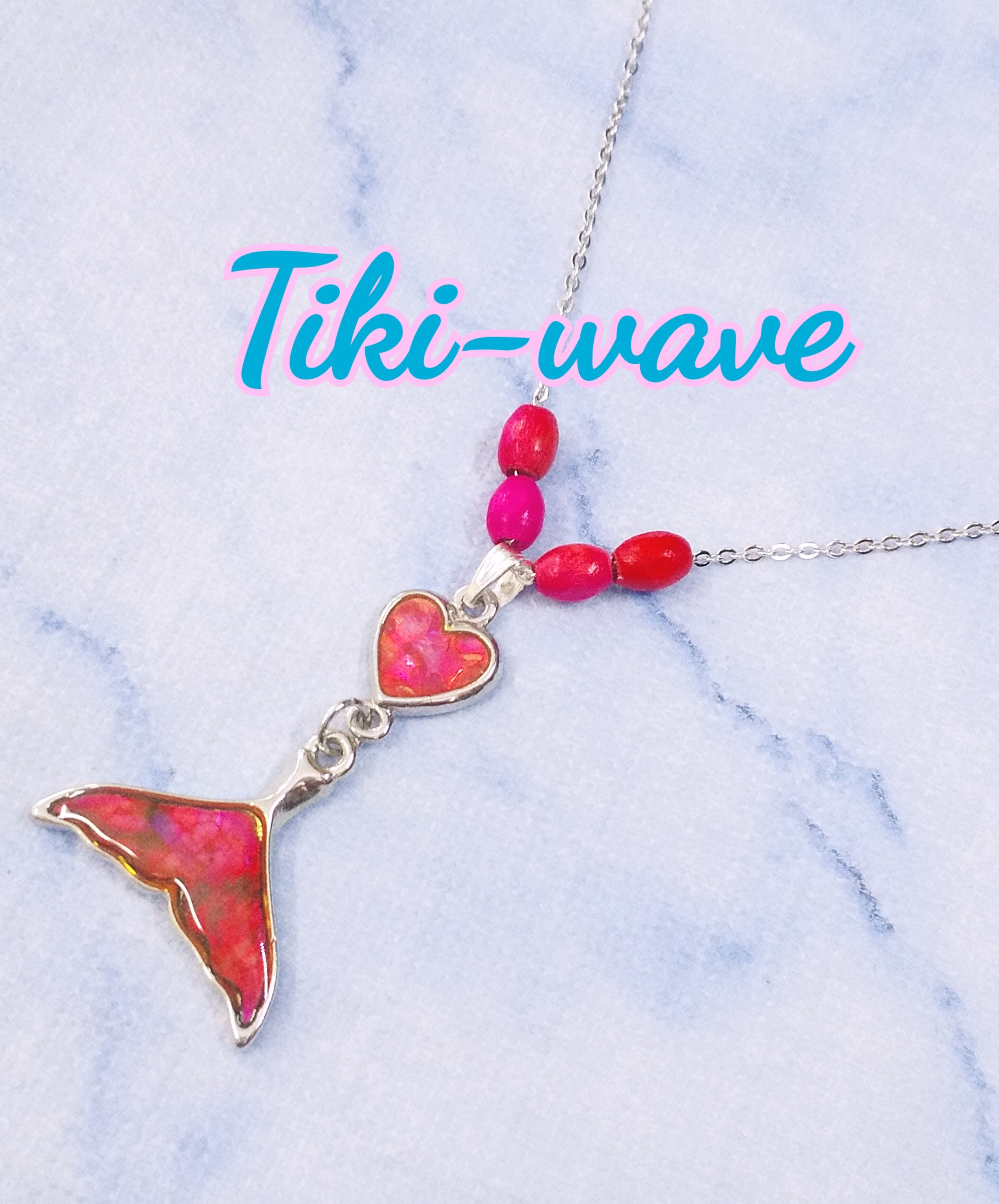 ハワイアンネックレス パウアシェルワインカラー ドルフィンテール&ハート D-234
