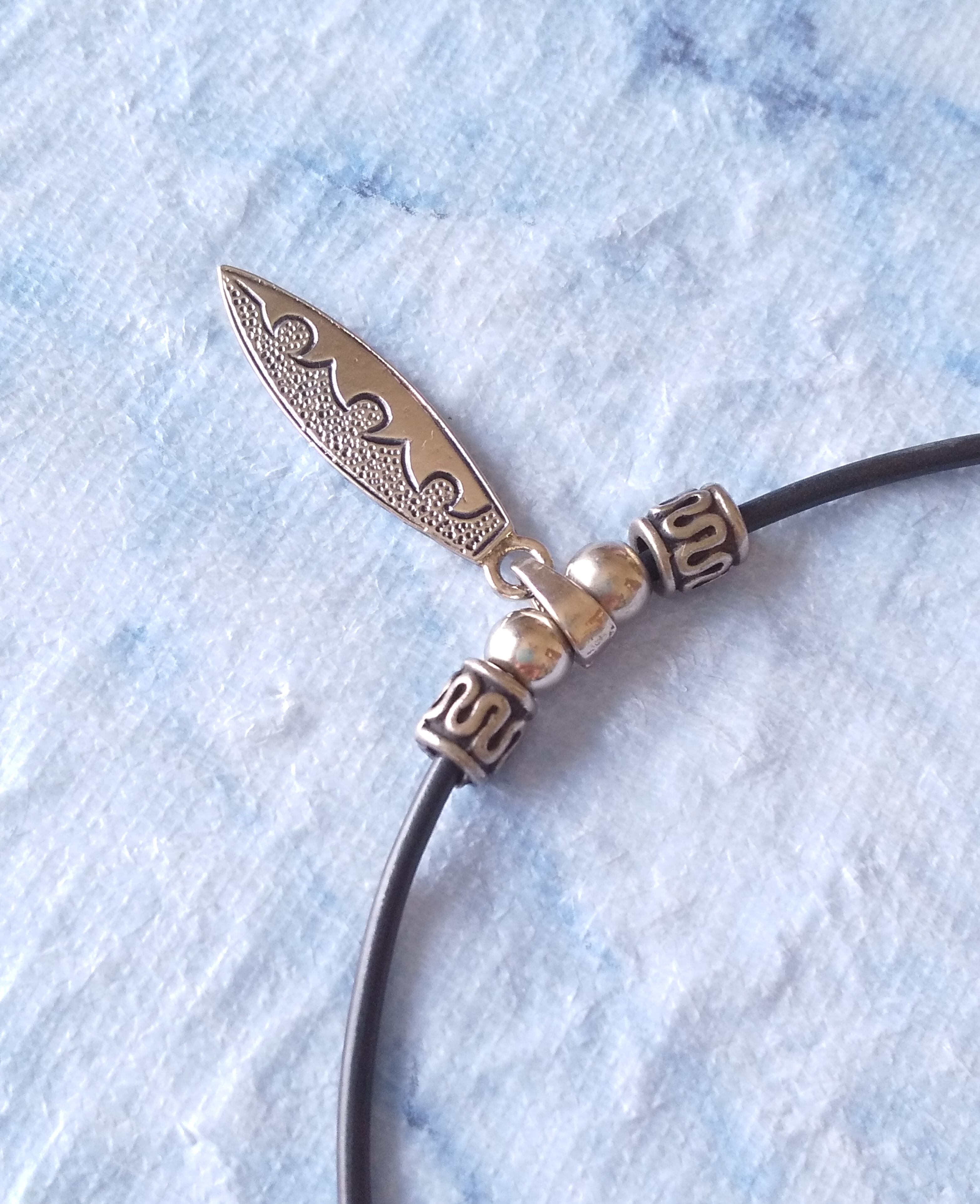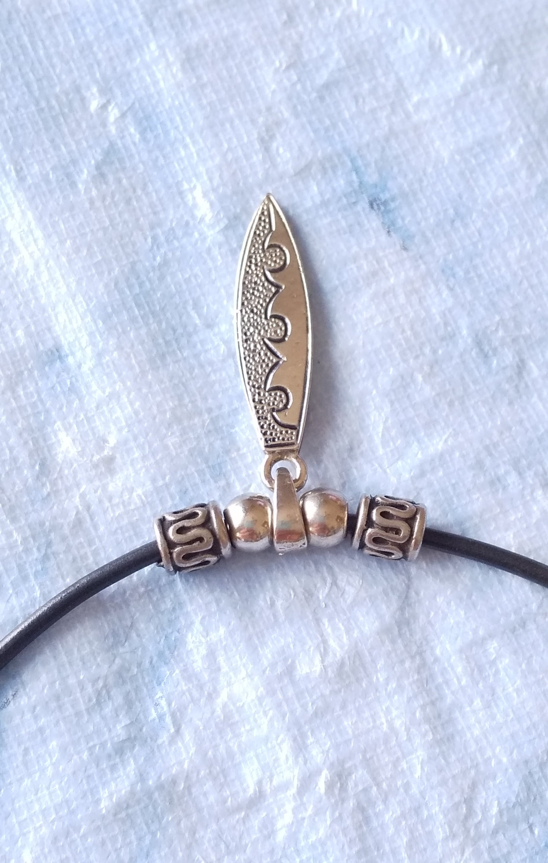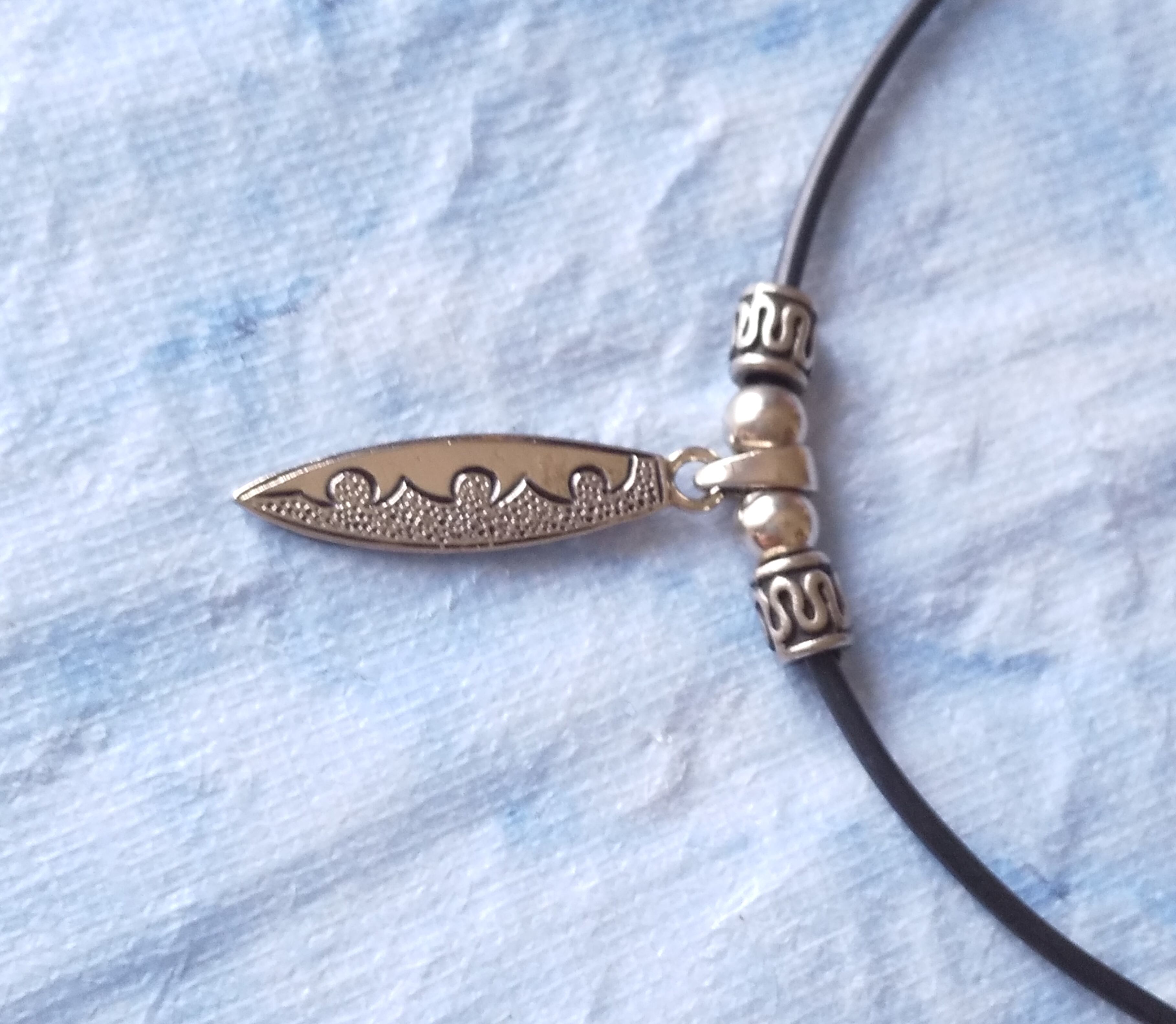 ハワイアンネックレス シルバーカラーサーフボード& ブラックラバー紐 U-346