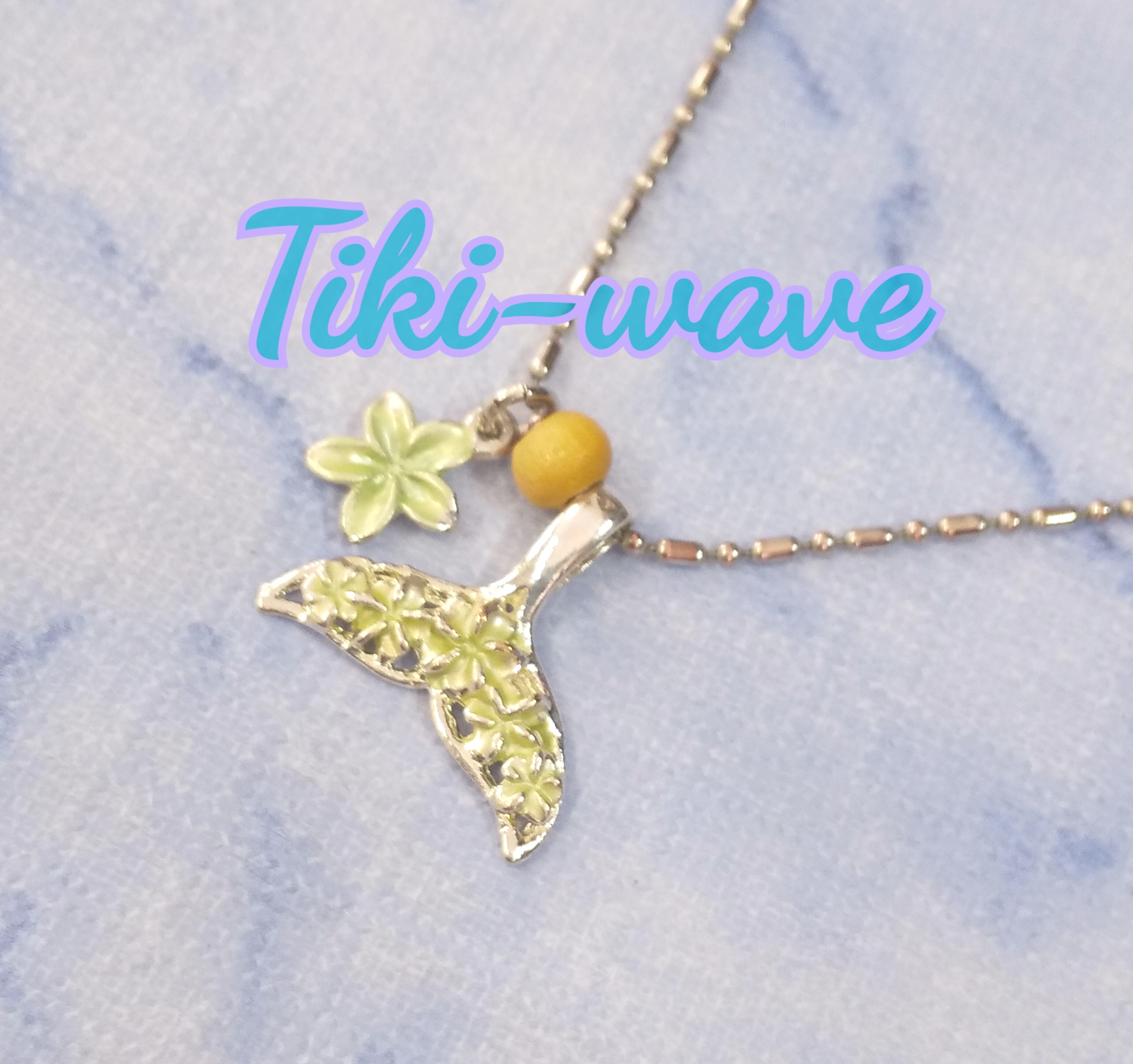 ハワイアンネックレス ミントグリーンカラー ドルフィンテール&プルメリア D-235