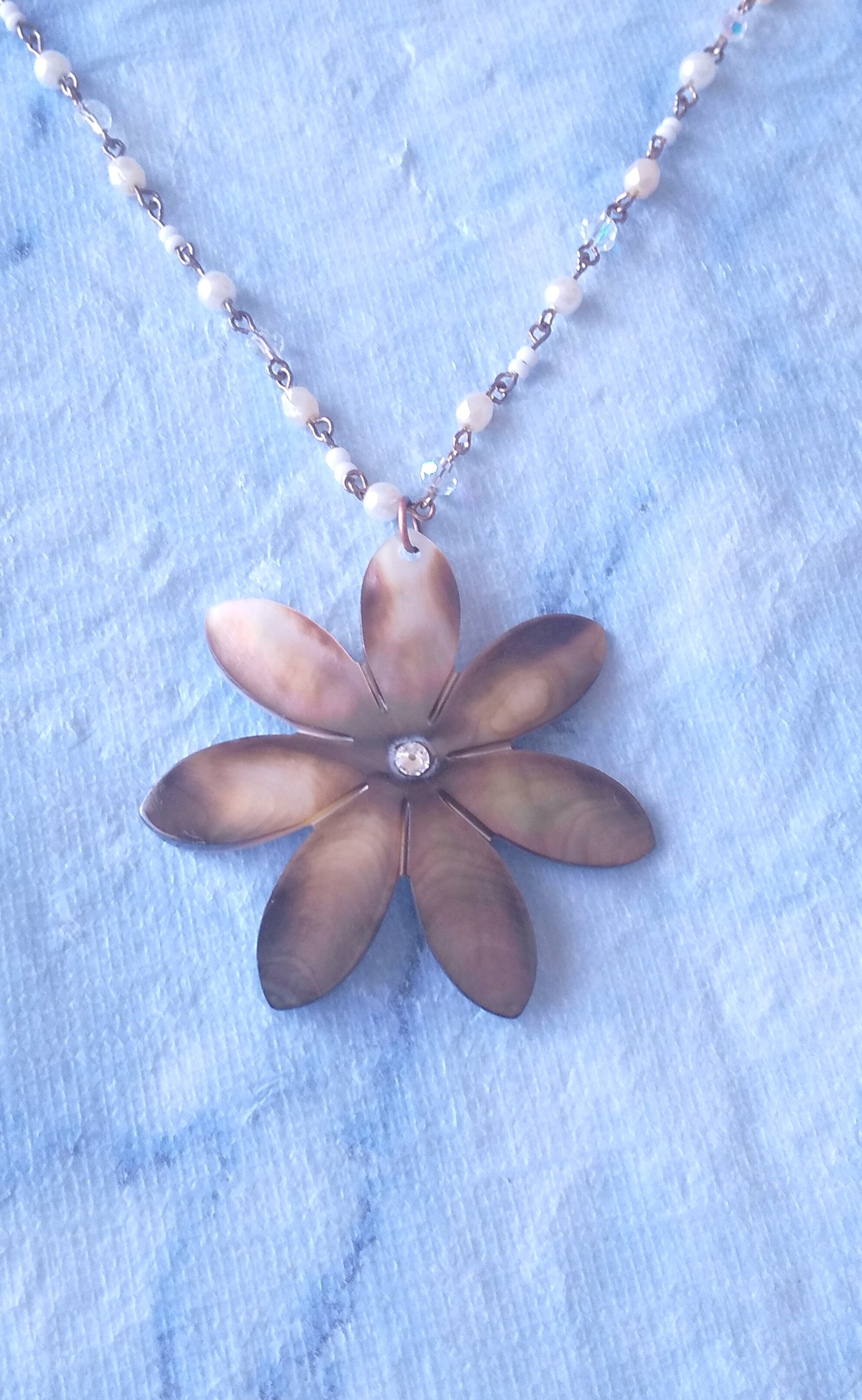 ハワイアンネックレス 天然グレーシェルティアレ& クリアスワロ粒 T-213