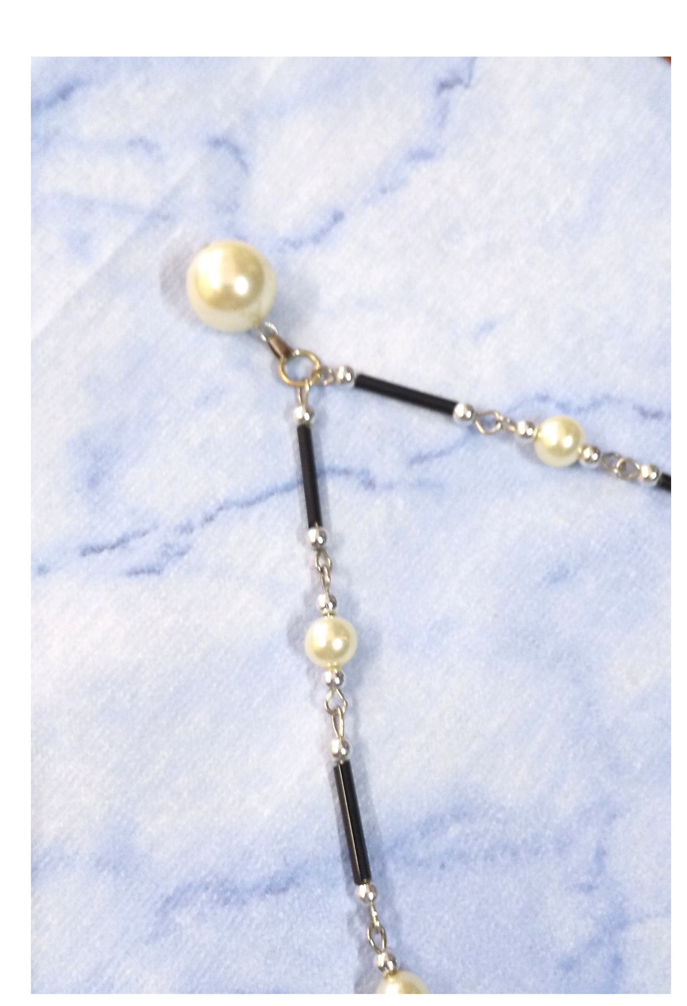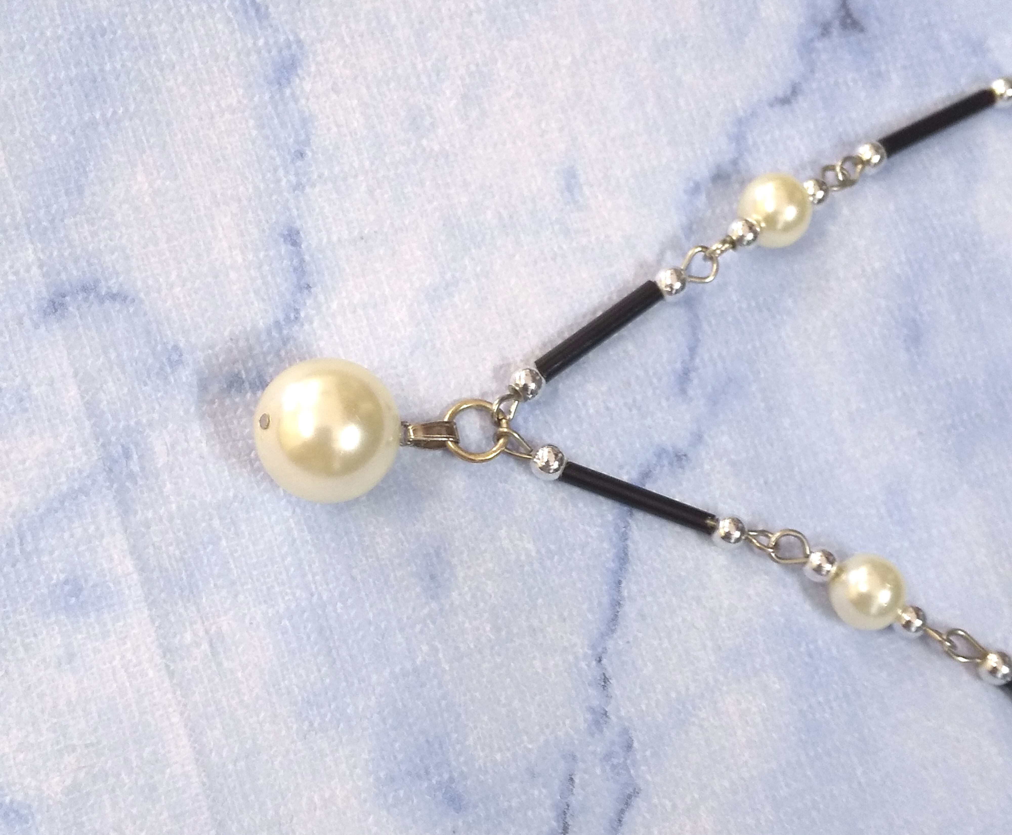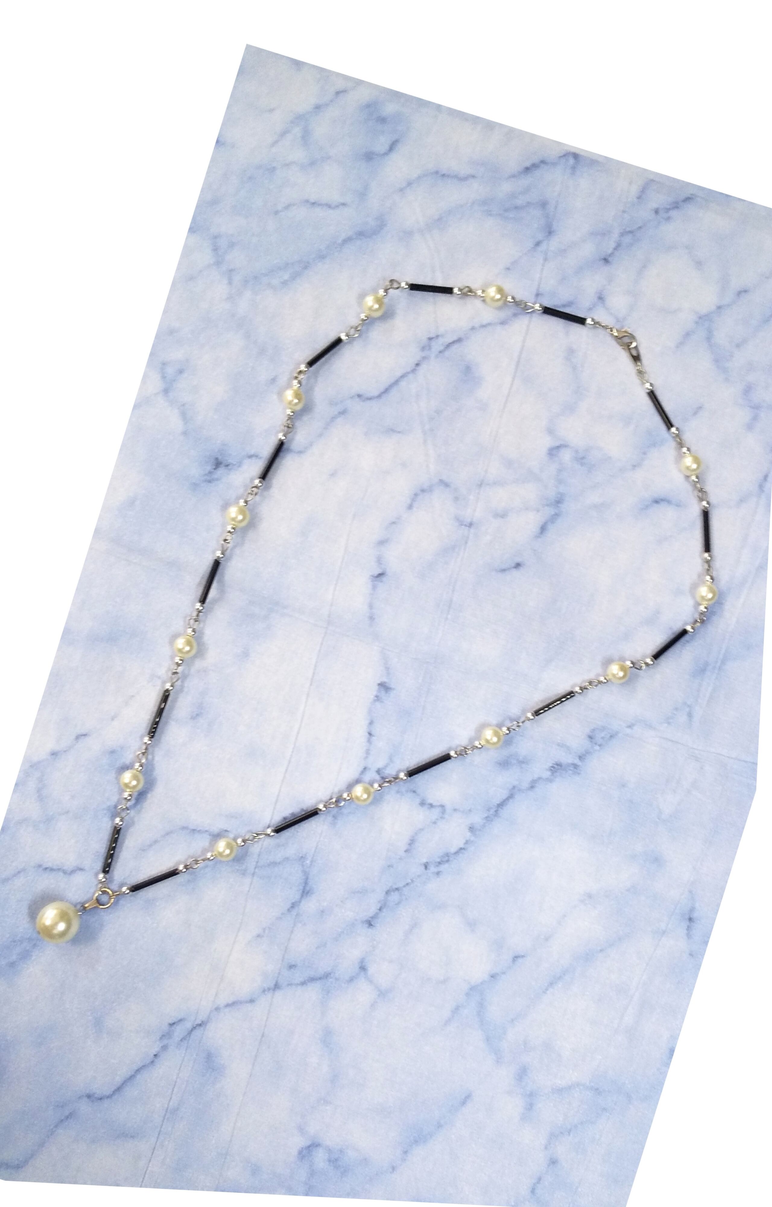 レディースネックレス パールホワイトカラーボール ブラックライン L-847