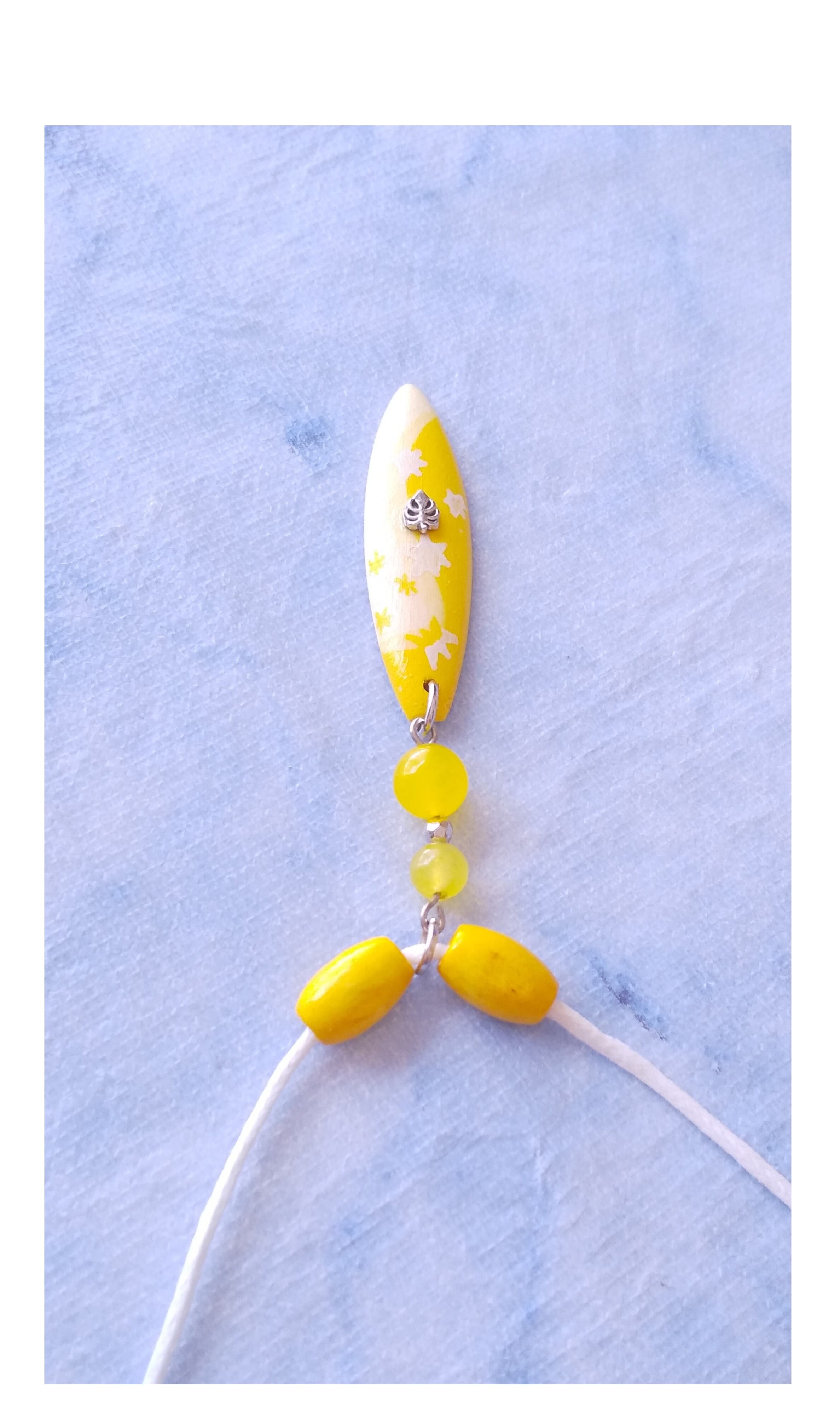ハワイアンネックレス 天然ウッドサーフボード& イエロージェイドストーン U-348