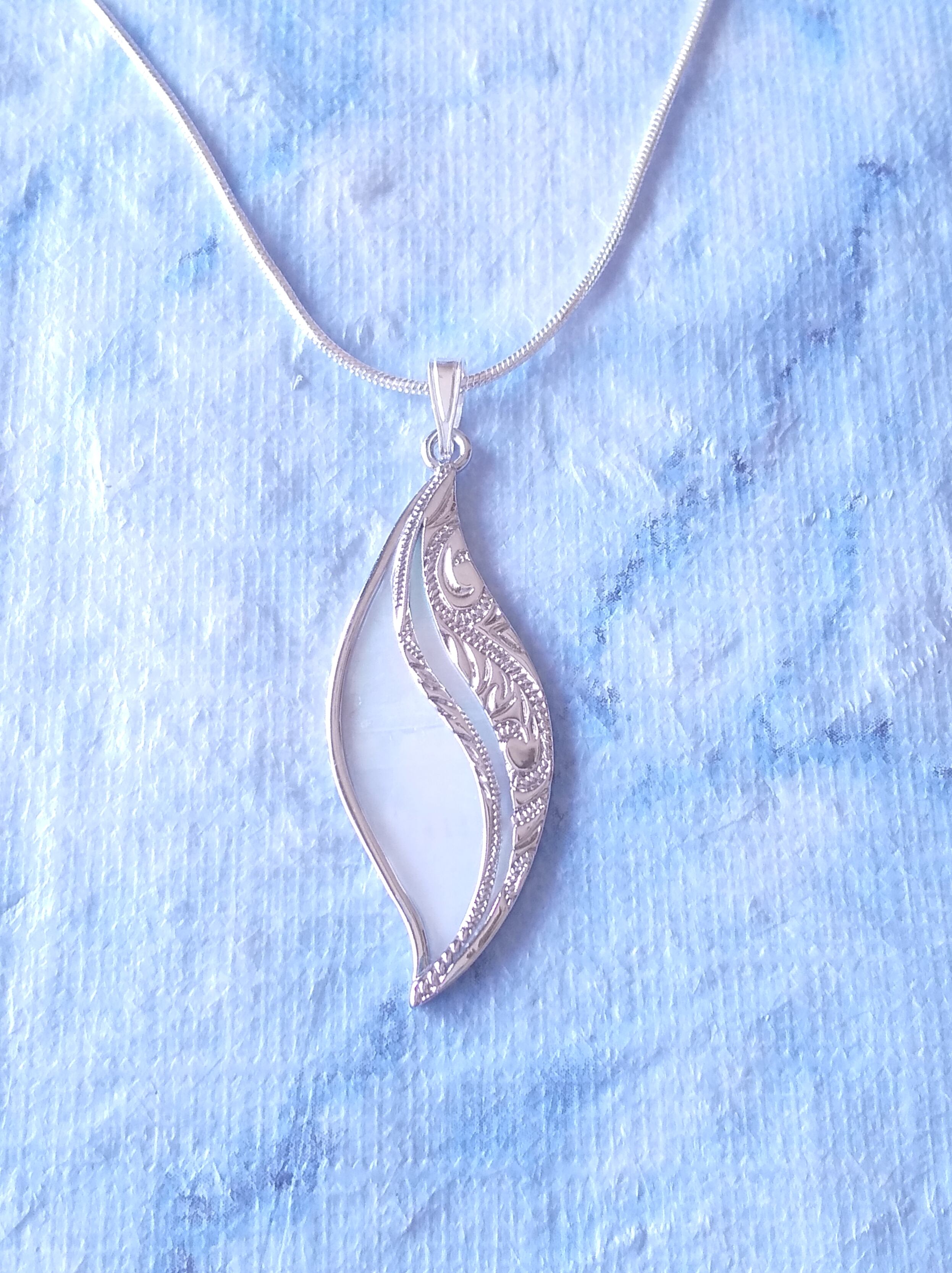 ハワイアンネックレス 天然シェルリーフ& シルバー925 カービング S-365