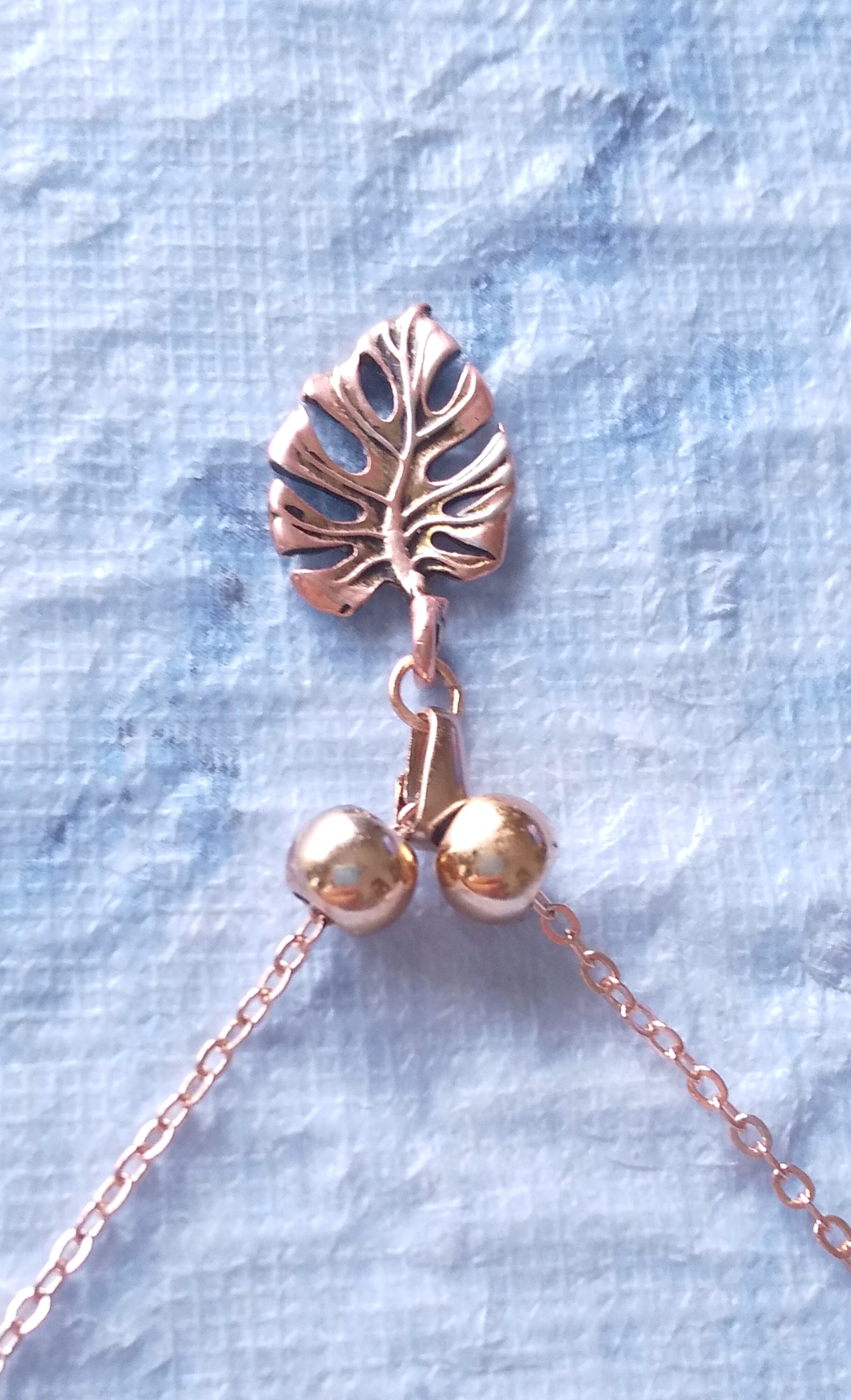 ハワイアンネックレス ピンクゴールドカラー モンステラ M-526