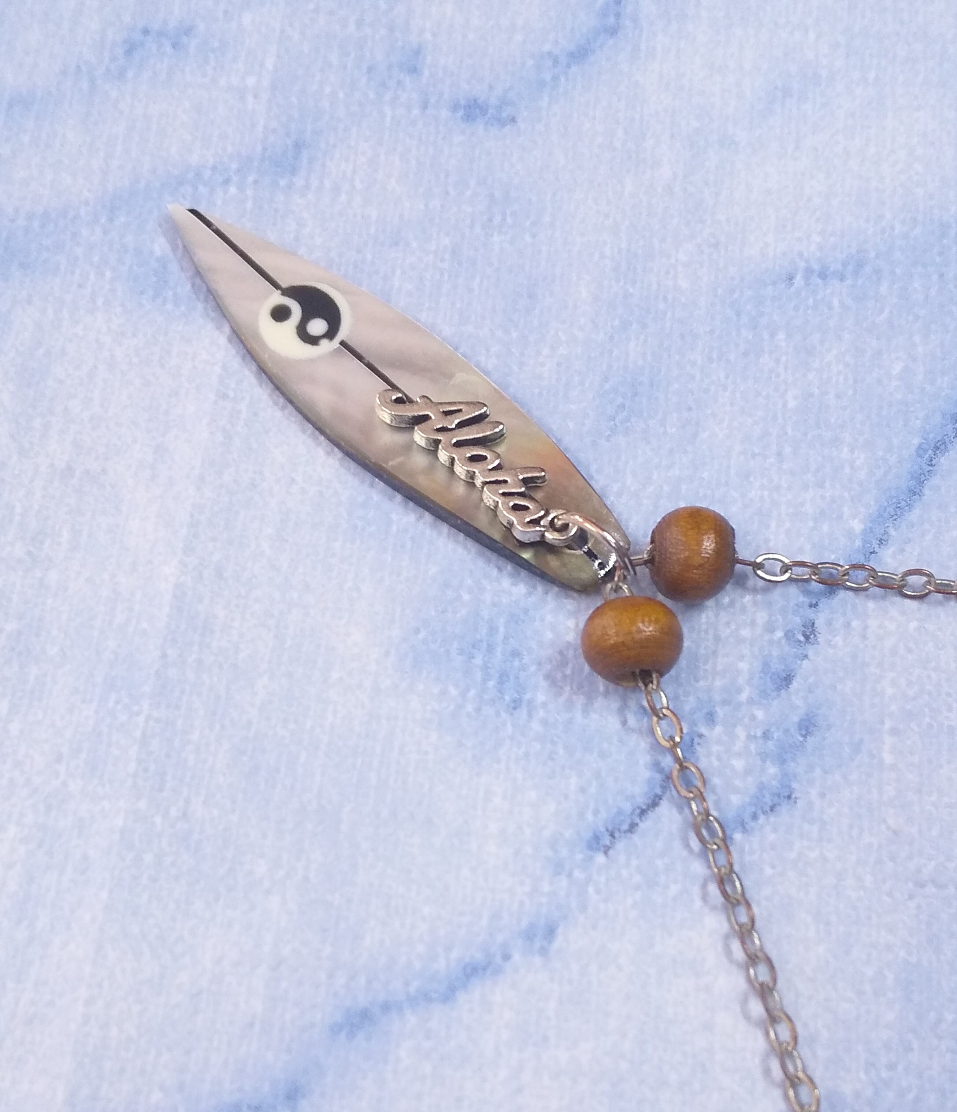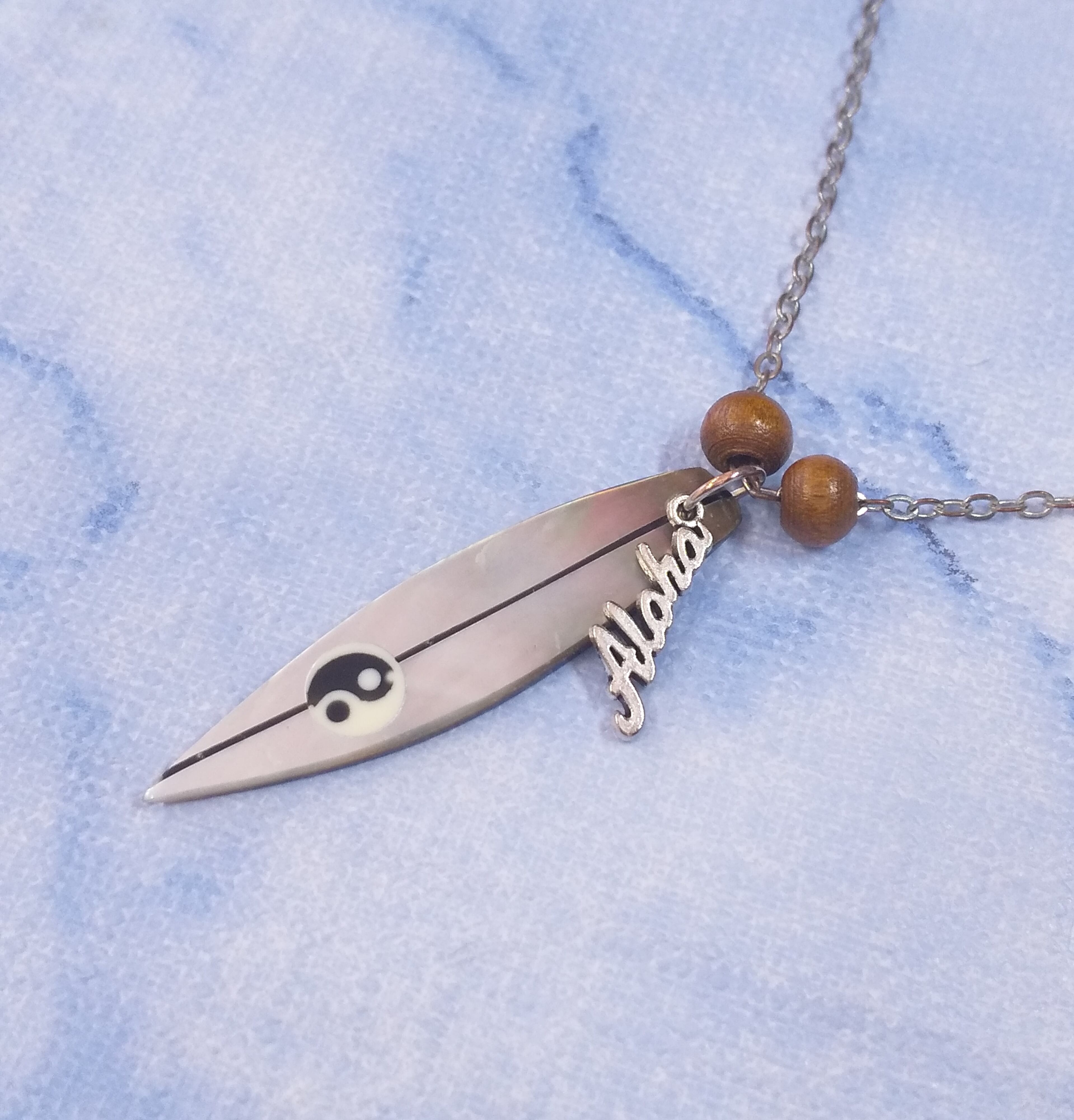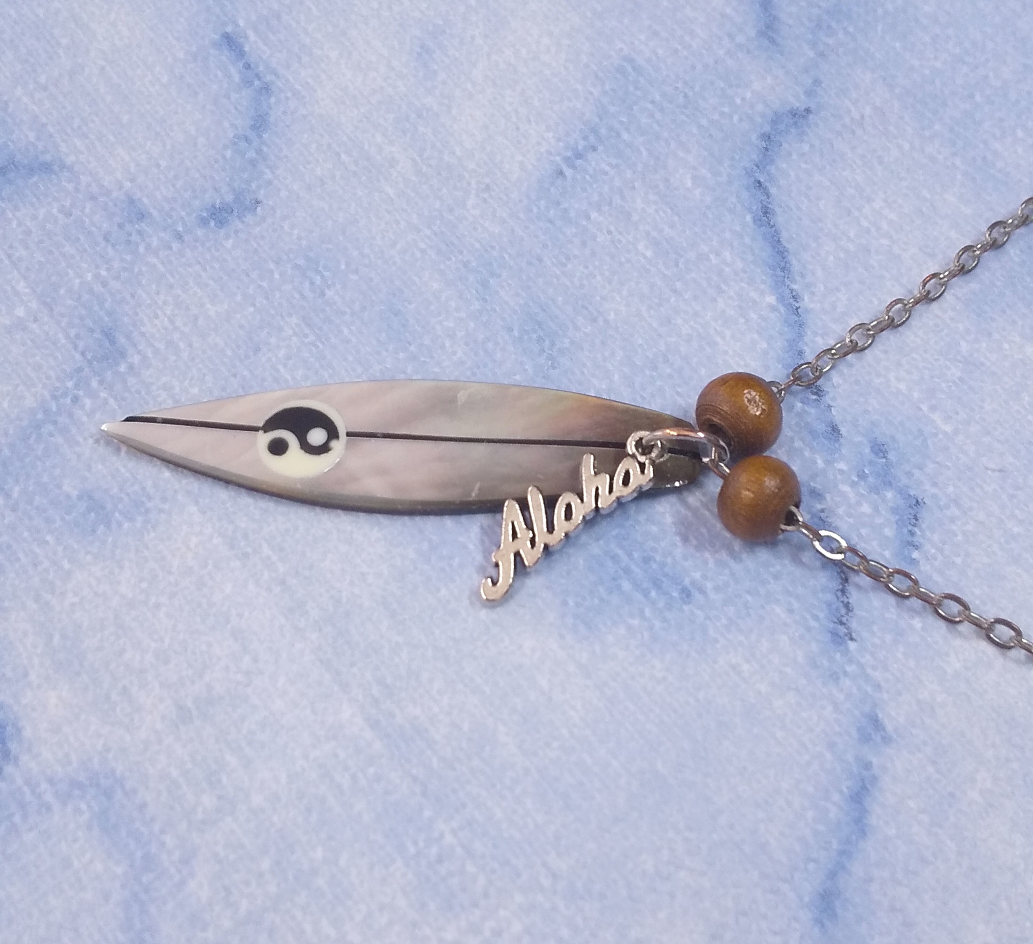 ハワイアンネックレス 天然ホシェル サーフボード& Aloha プレート B-349