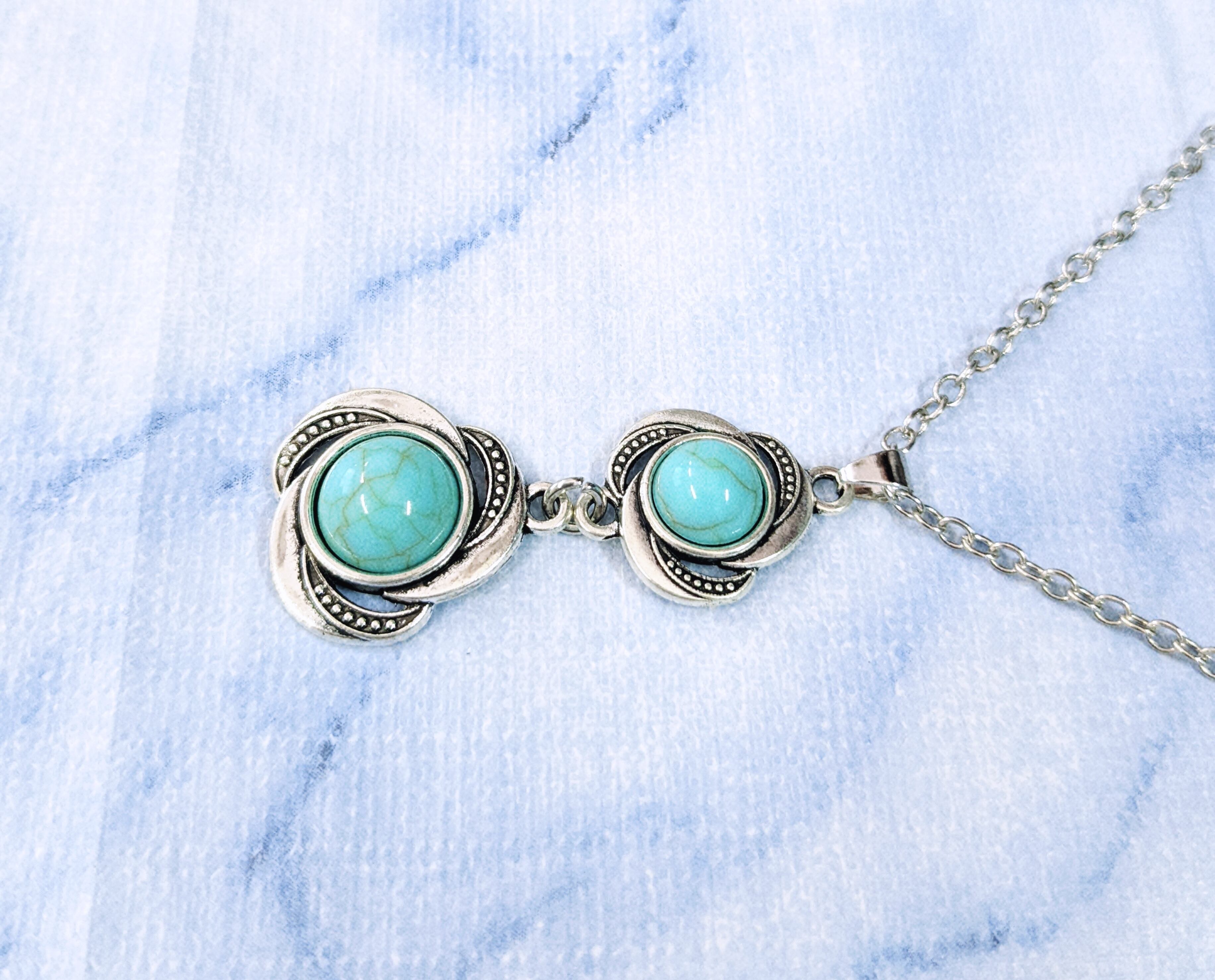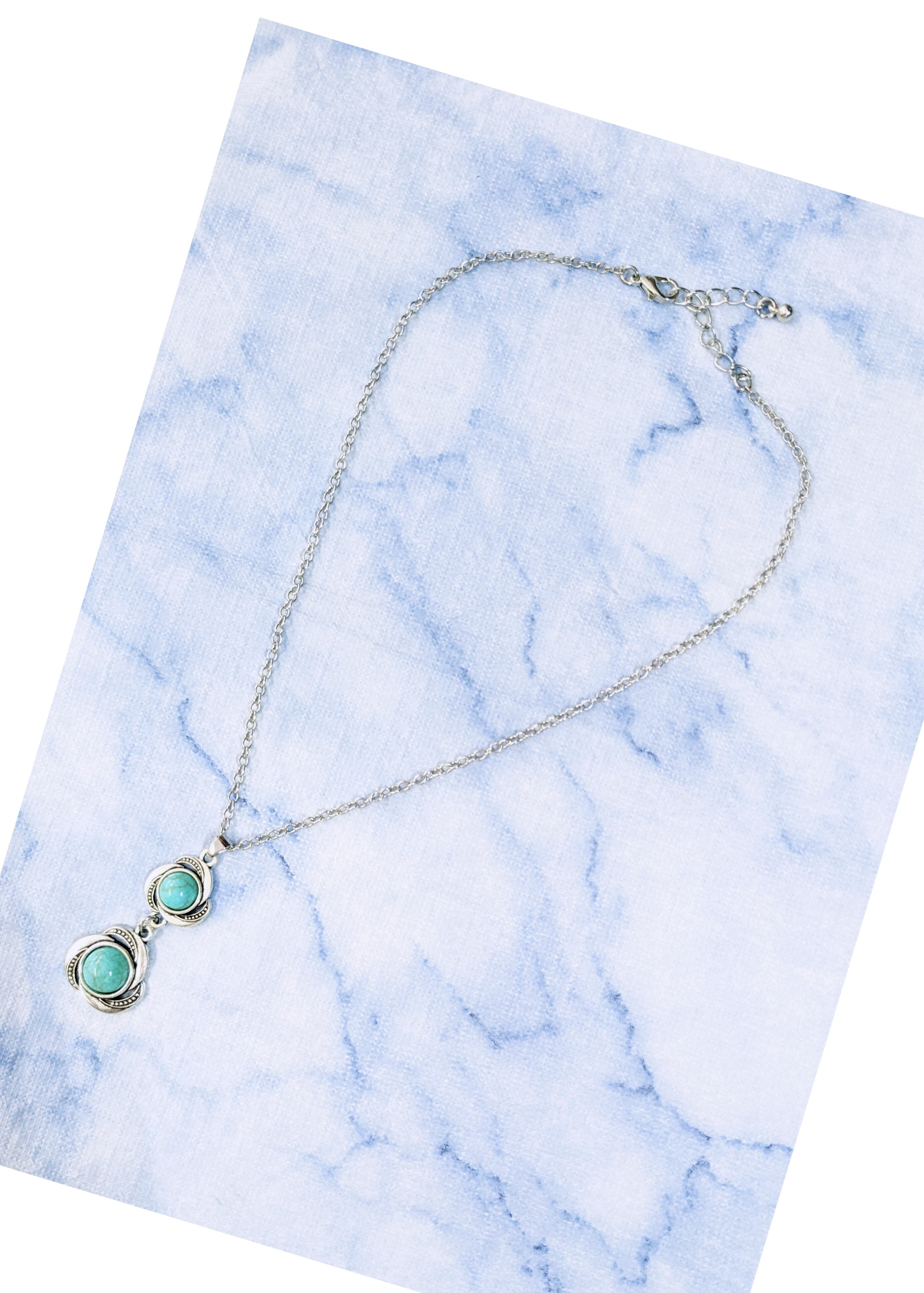 レディースネックレス ブルーターコイズ&2連 シルバートルネード T-920