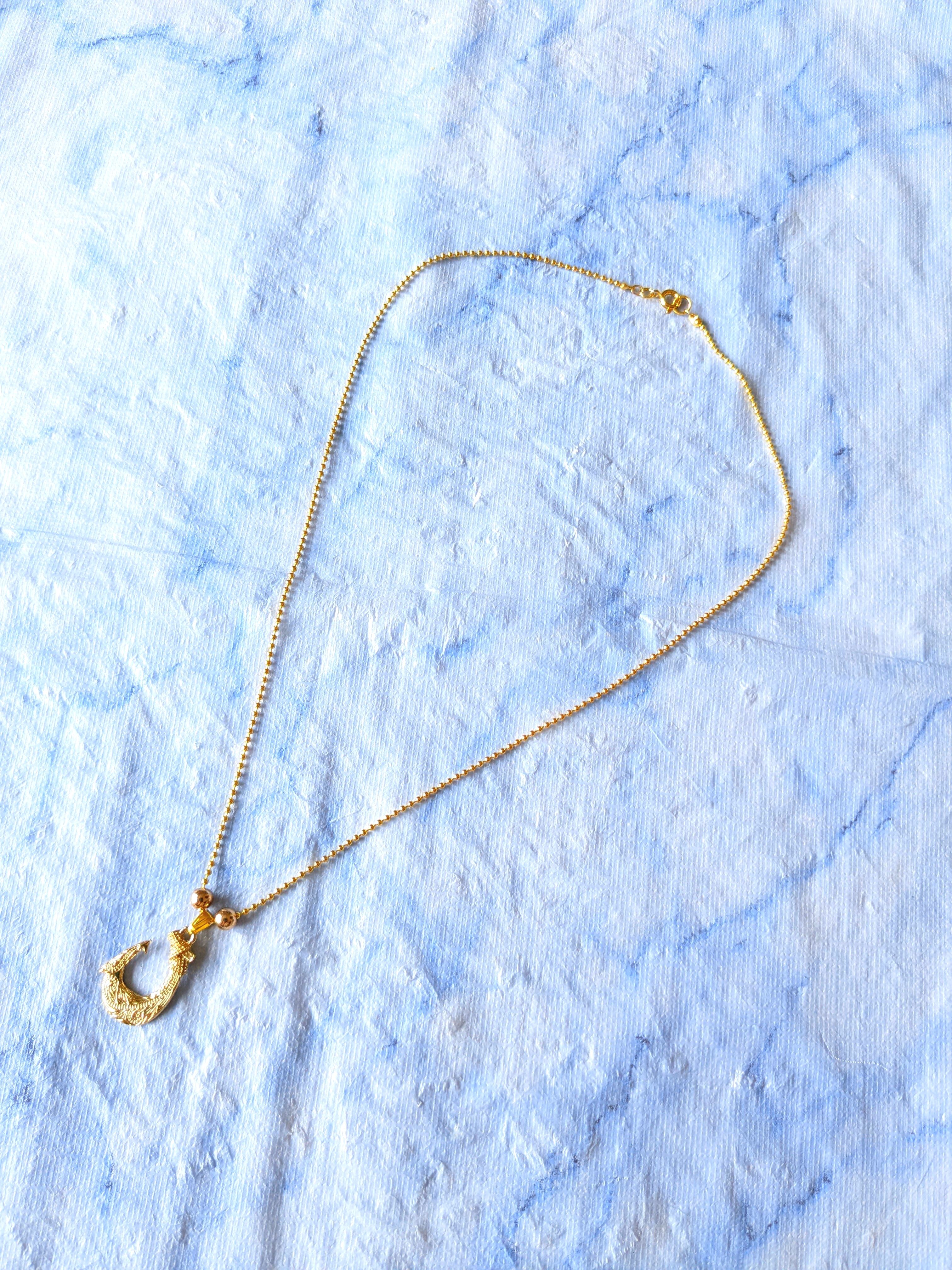ハワイアンネックレス ゴールドカラー カービング フィッシュフック F-112
