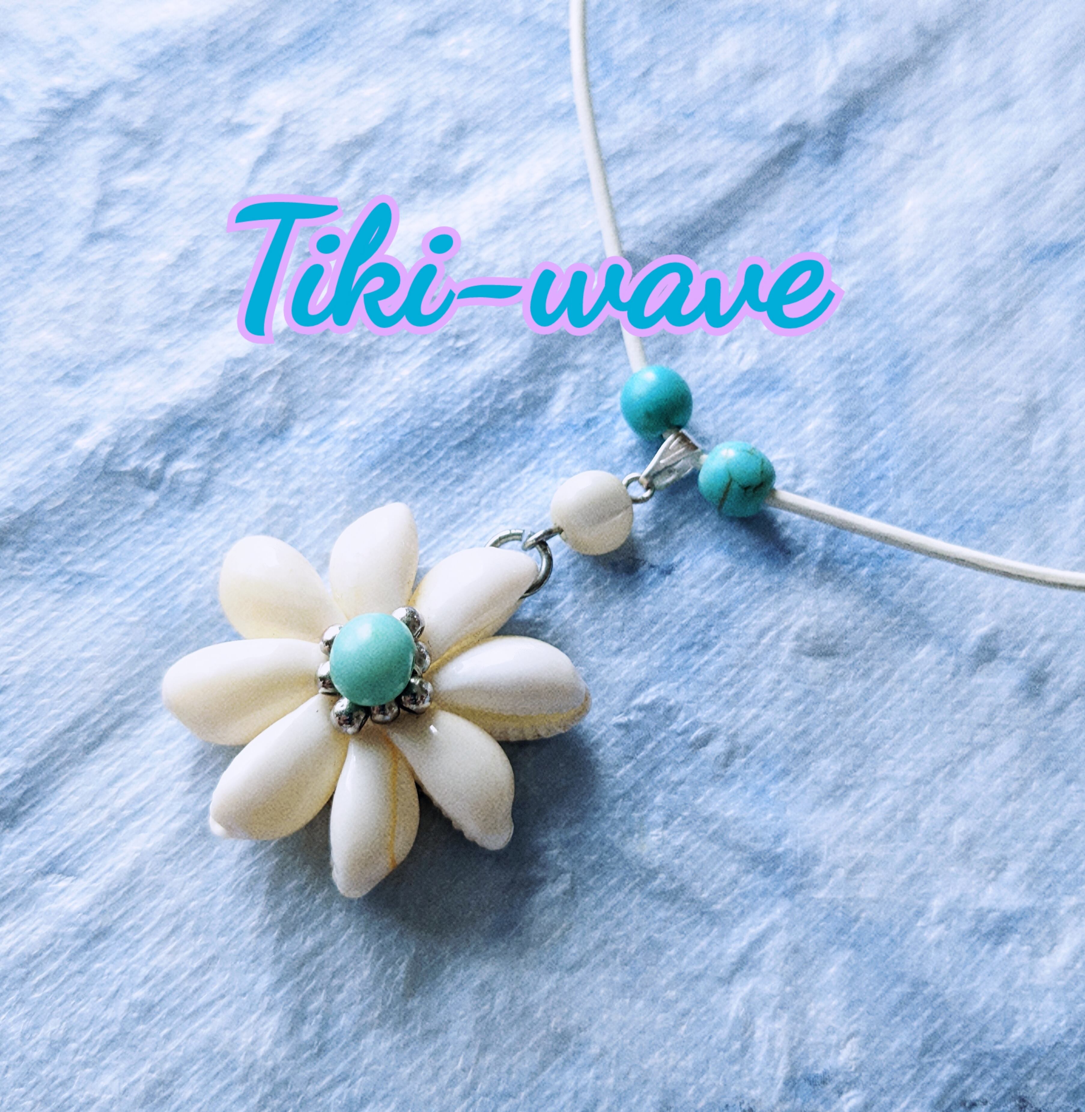 ハワイアンネックレス 天然シェルタカラ貝ティアレ& ターコイズ S-366