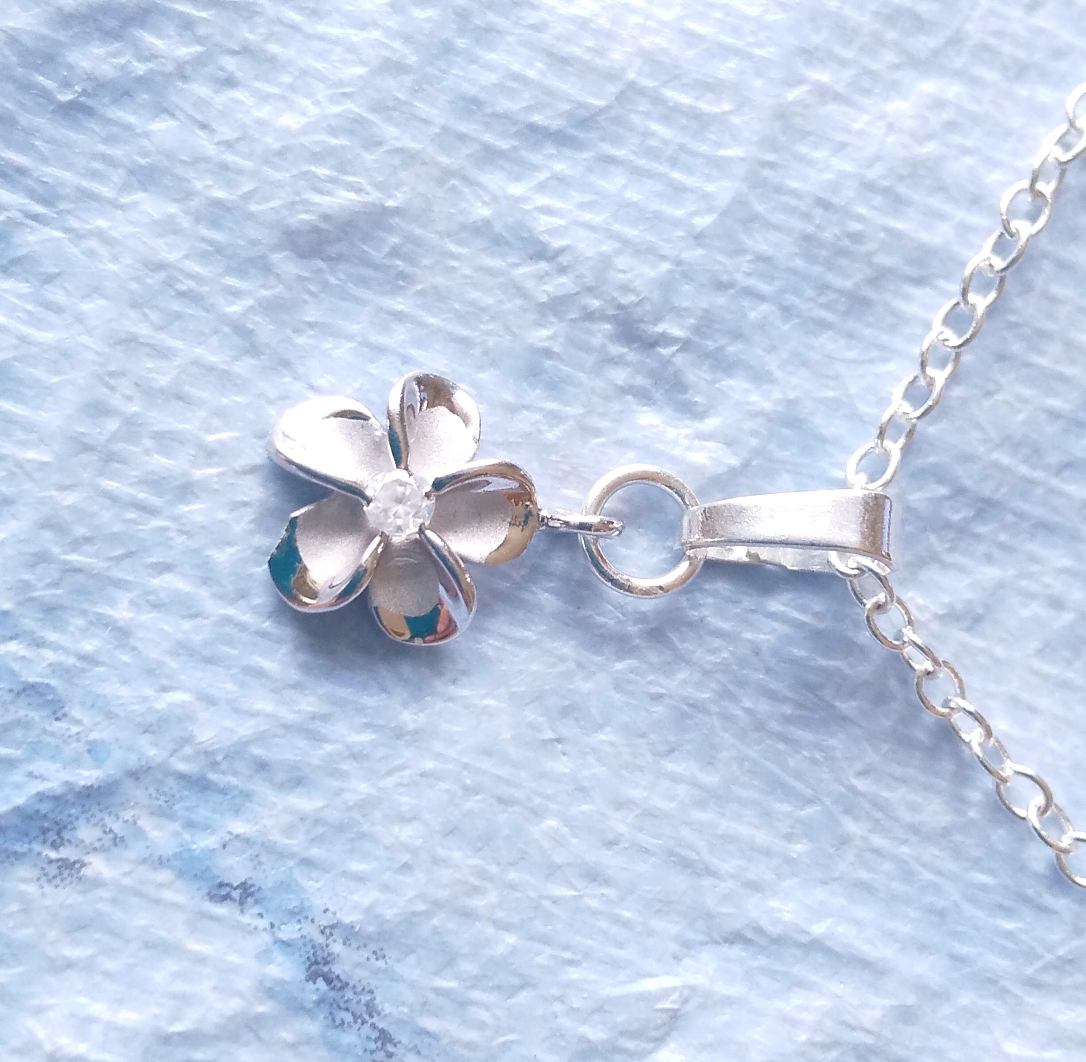 ハワイアンネックレス シルバー925 プルメリア &クリアCZ粒 P-707