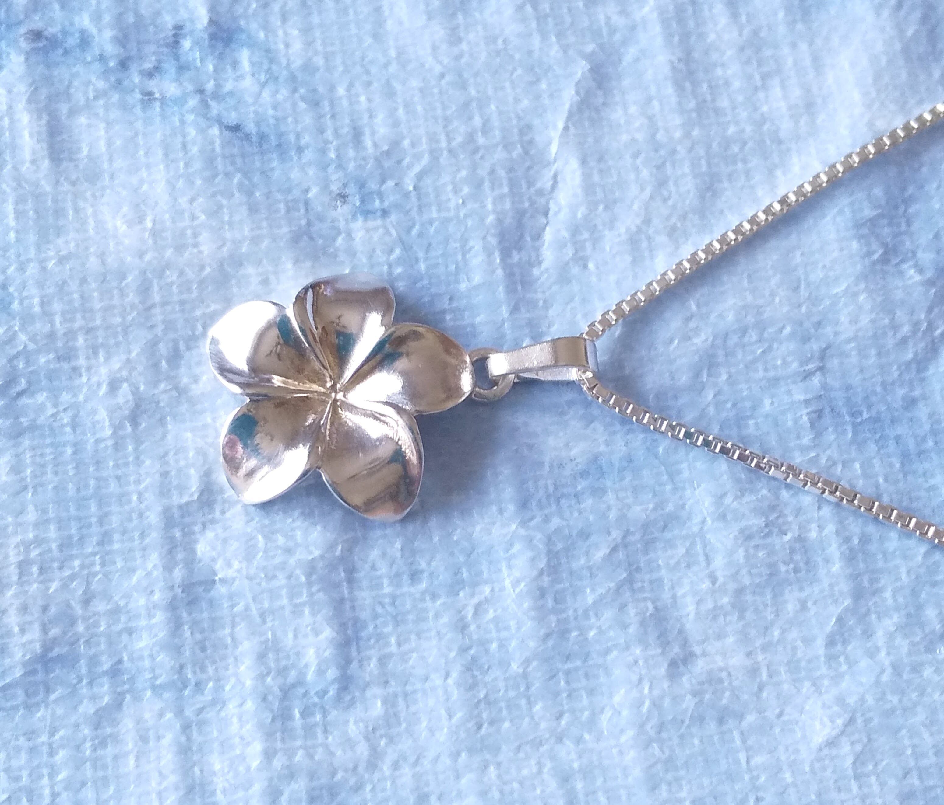 ハワイアンネックレス スターリングシルバー925 プルメリア P-708