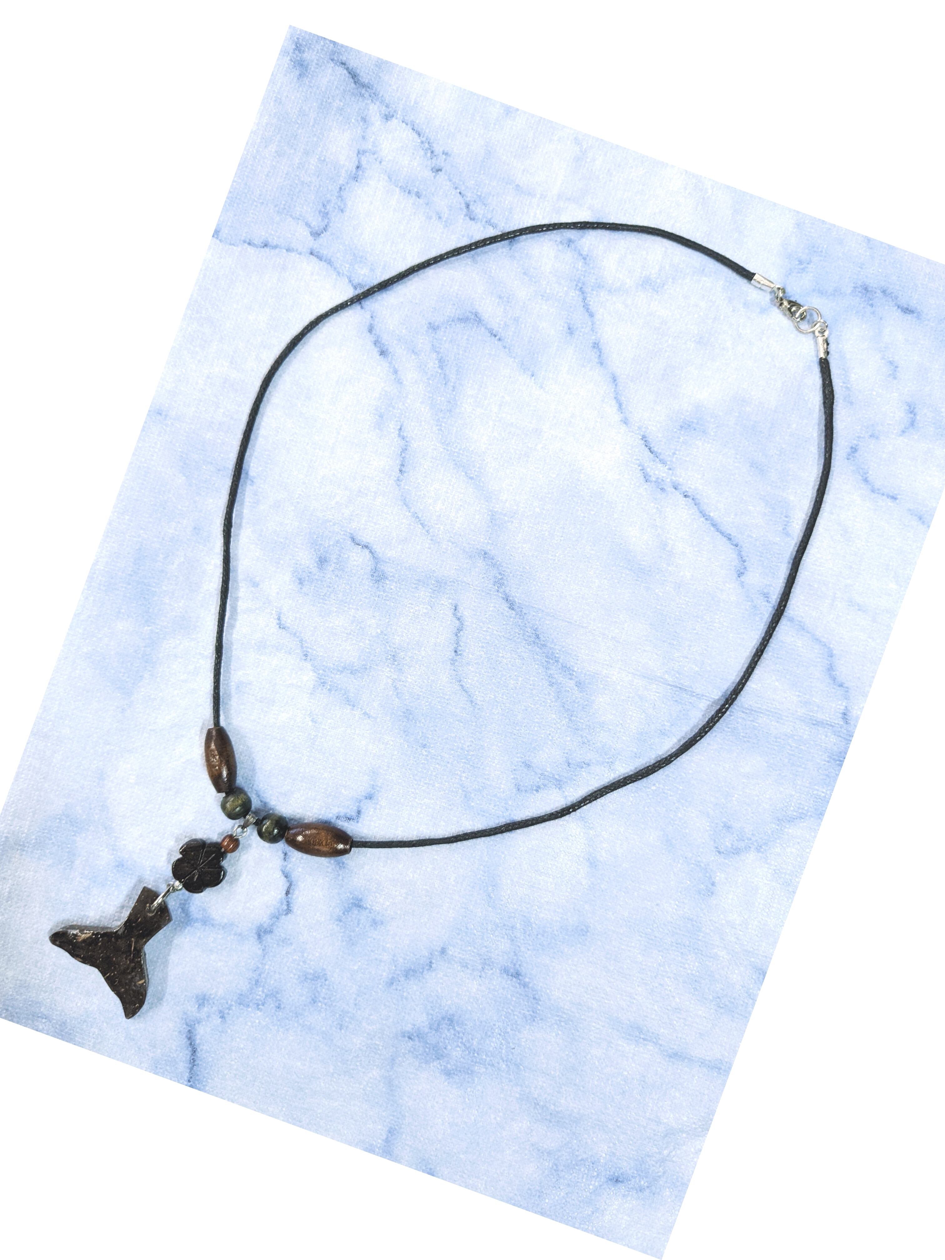 ハワイアンネックレス 天然椰子ウッド ホエールテール &プルメリア D-238