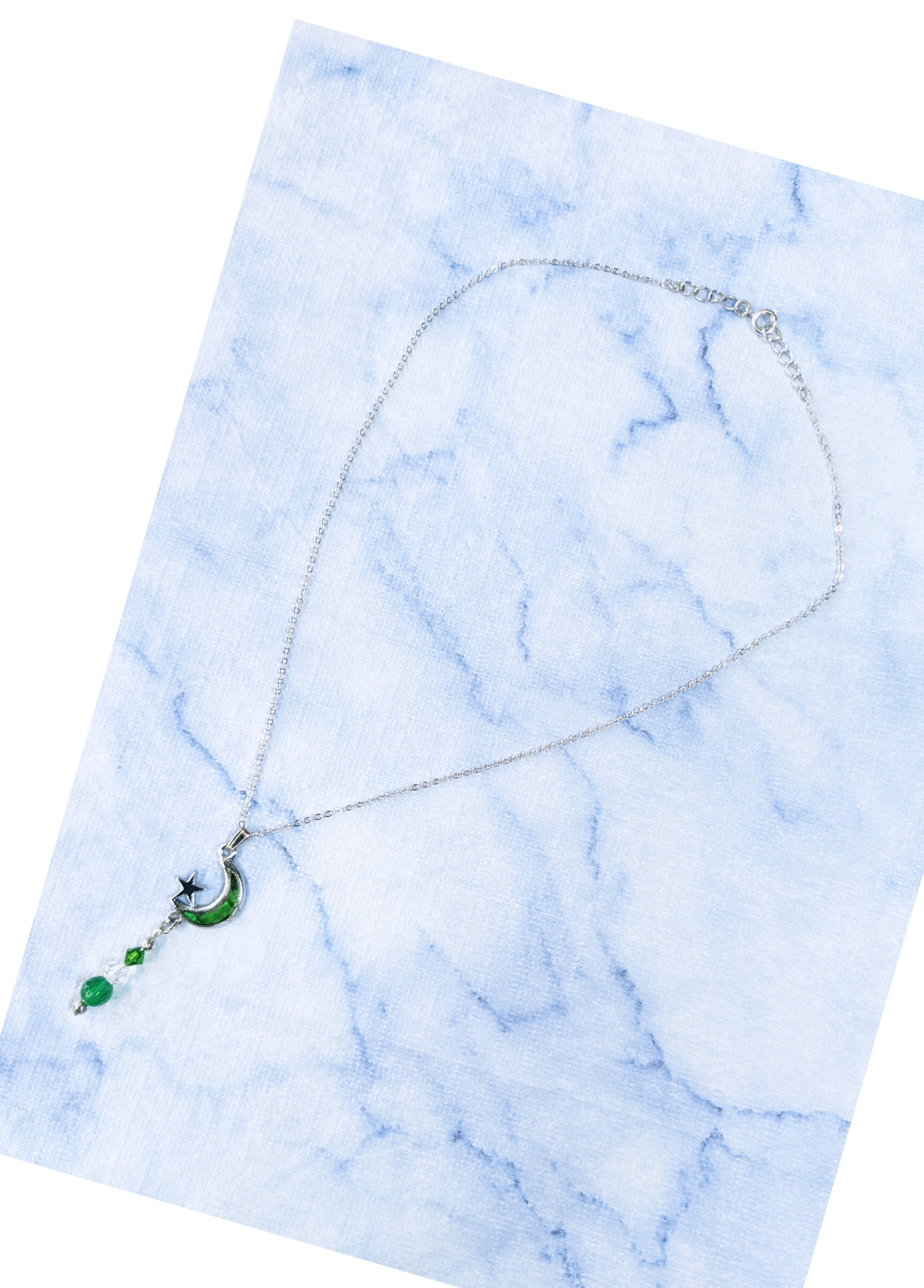 ハワイアンネックレス グリーンパウア貝ムーン& グリーンジェイド S-367