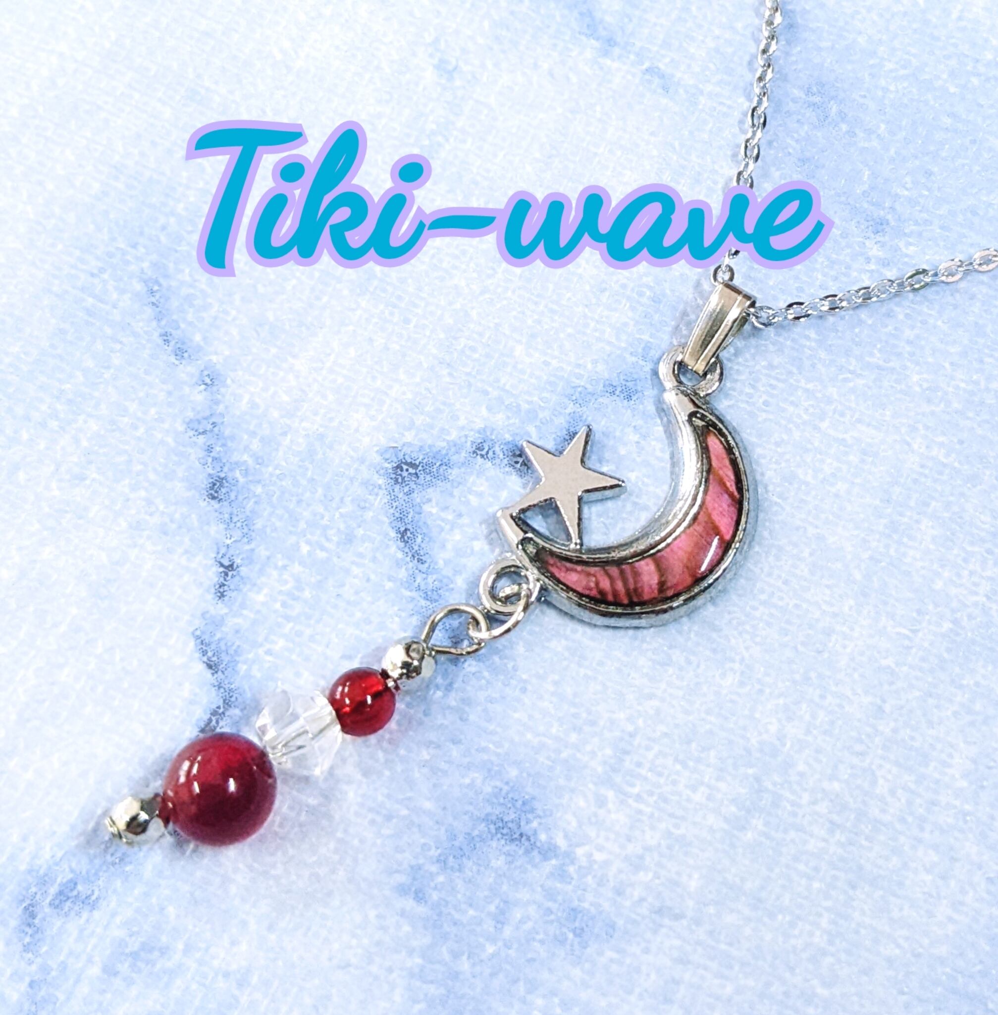 ハワイアンネックレス ワインカラーパウア貝ムーン&レッドジェイド S-368