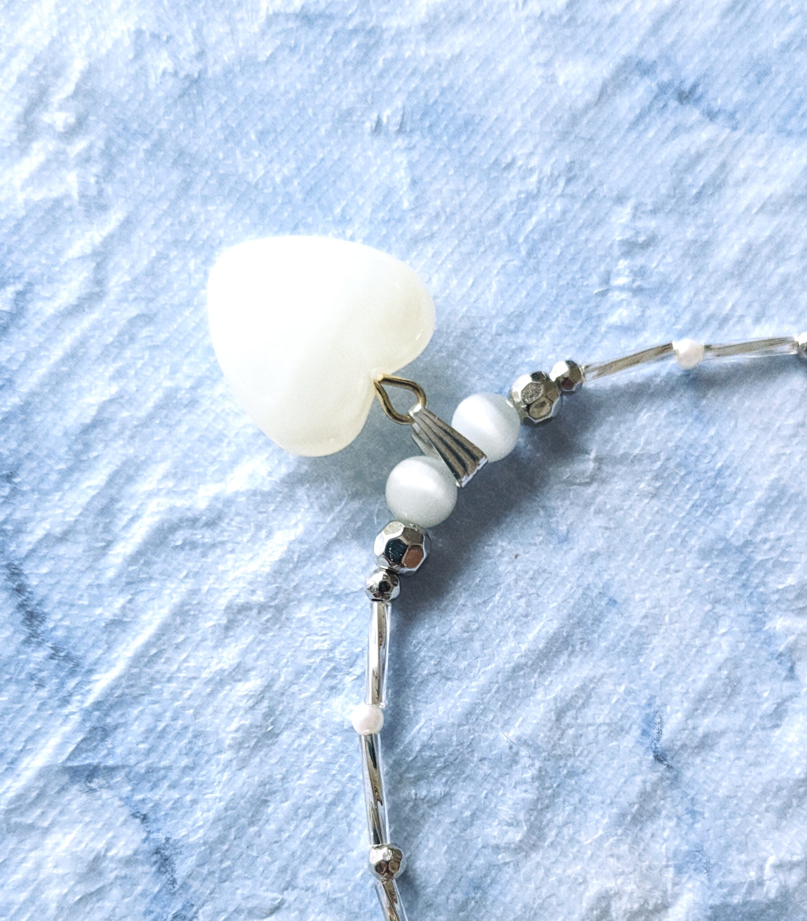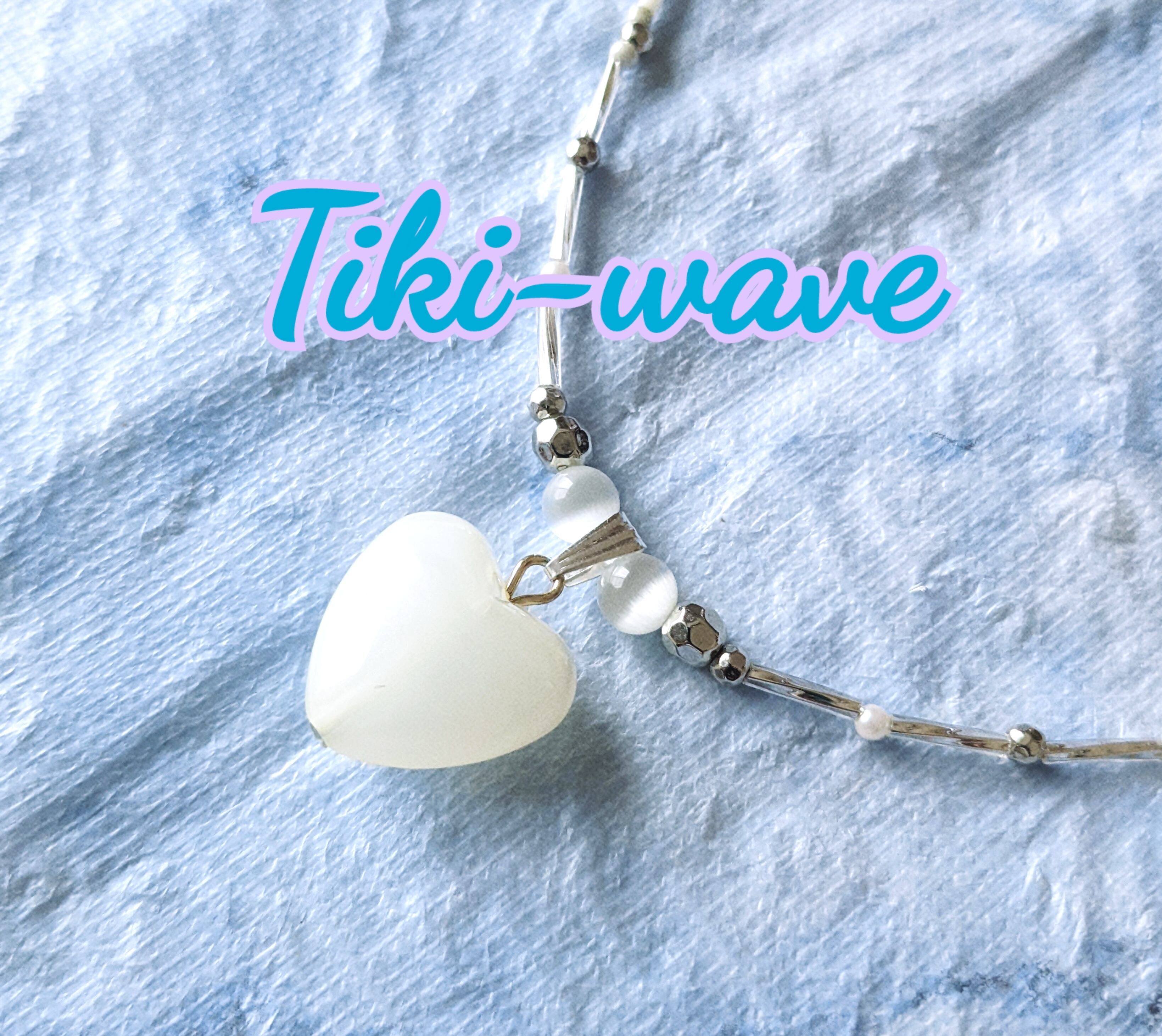 ハワイアンネックレス パールホワイトカラー ハート&シルバービーズ L-621