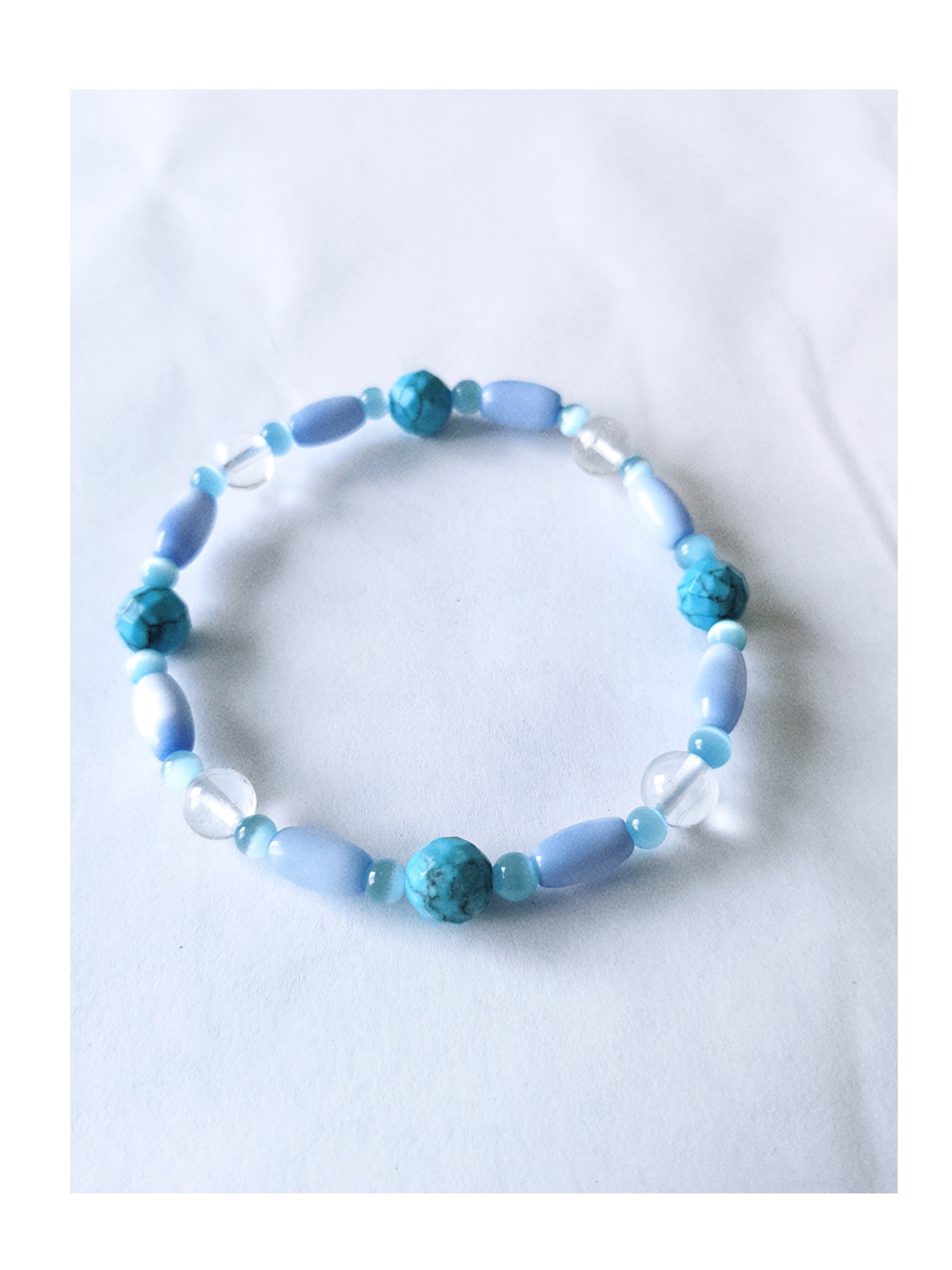 ストーンブレス ターコイズ&アクアカラーシェル デザインブレス M-517