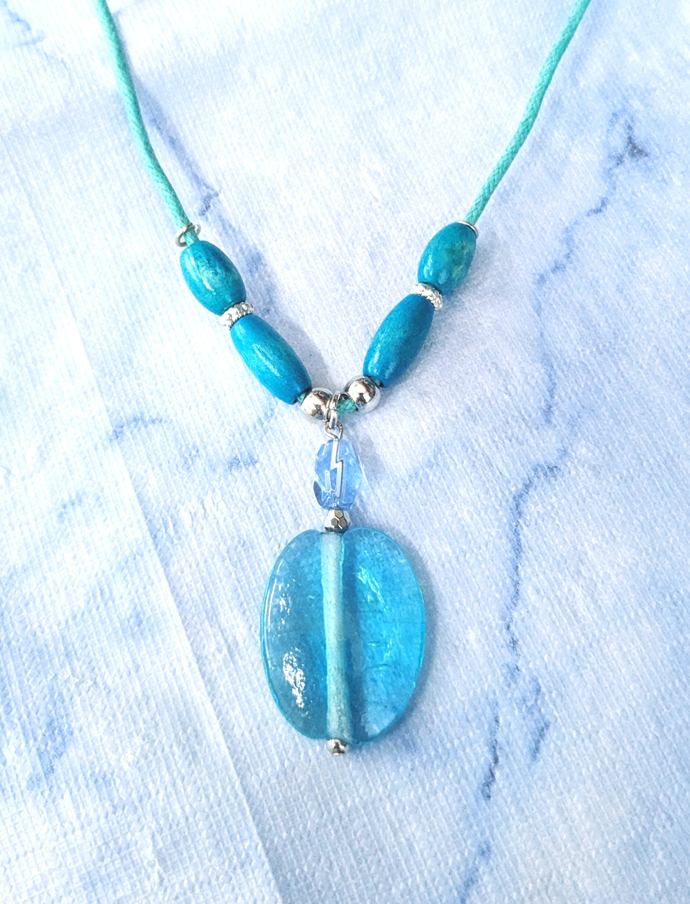 レディースネックレス アクアブルーカラートンボ オーバル&クリスタル L-848