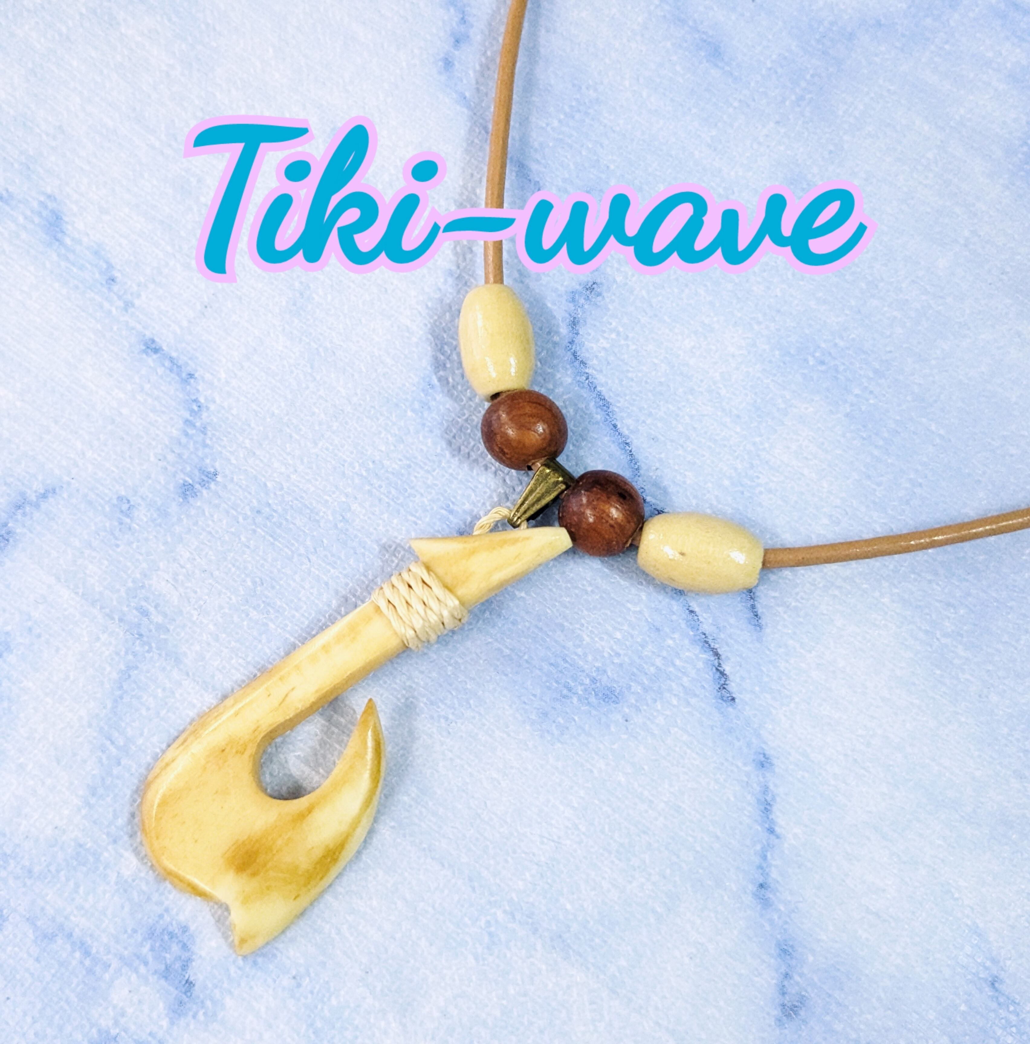 ハワイアンネックレス ブラウンカラーボーン フィッシュフック&本革紐 F-113