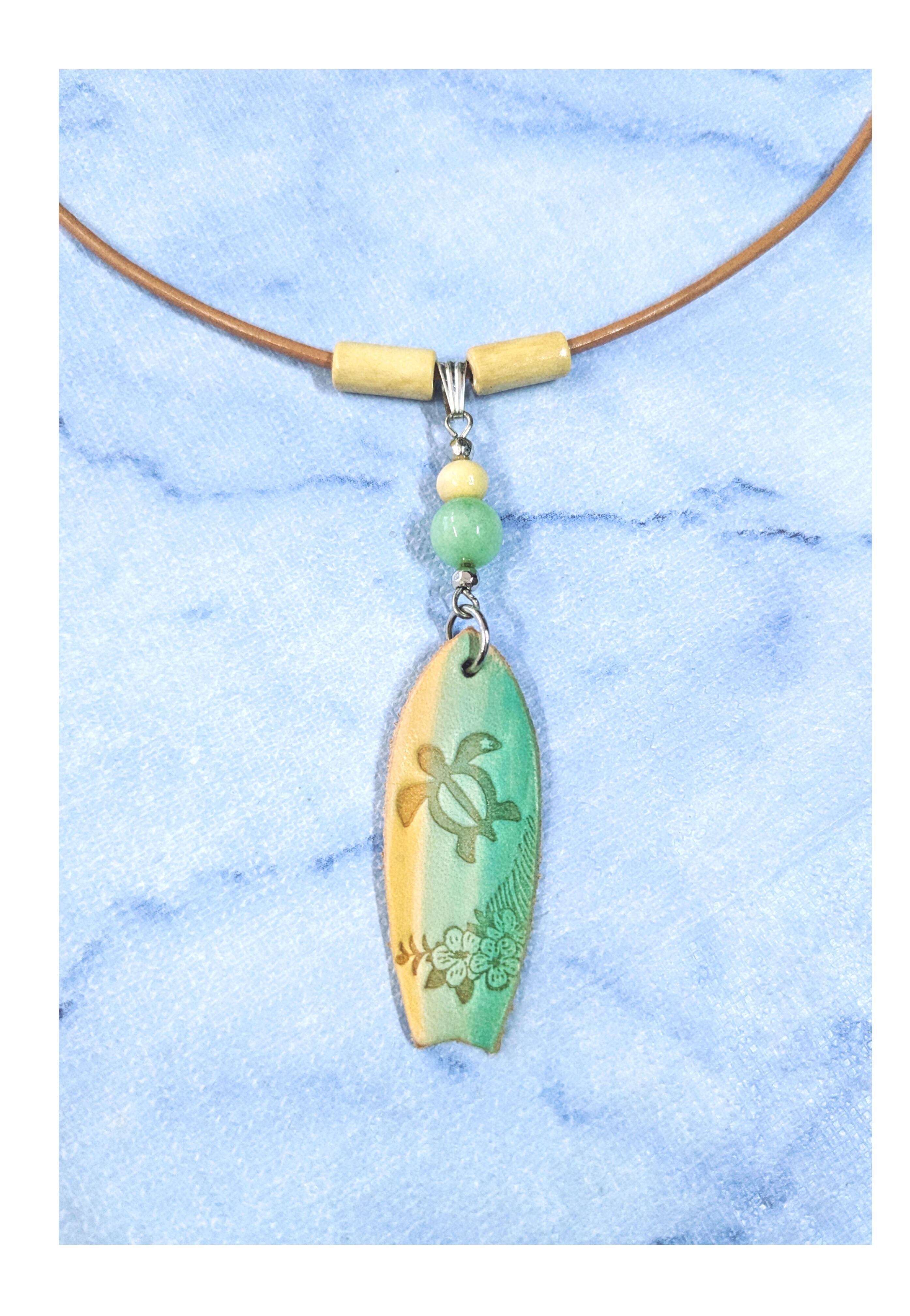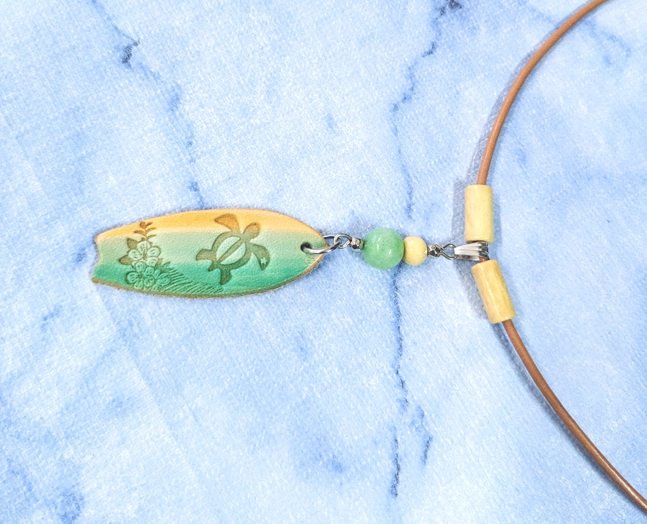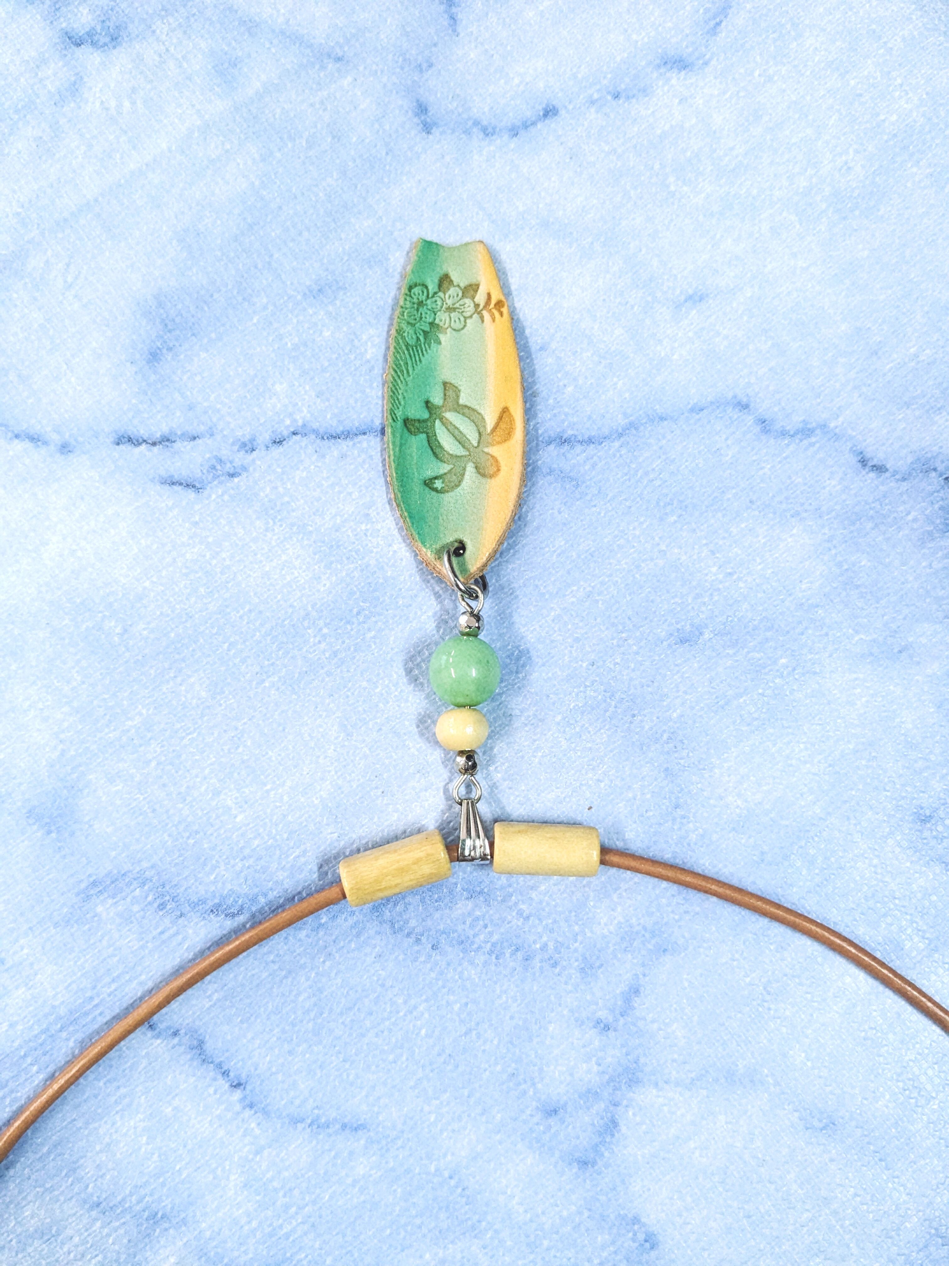 ハワイアンネックレス 本革サーフボード ホヌデザイン ミントグリーン B-350