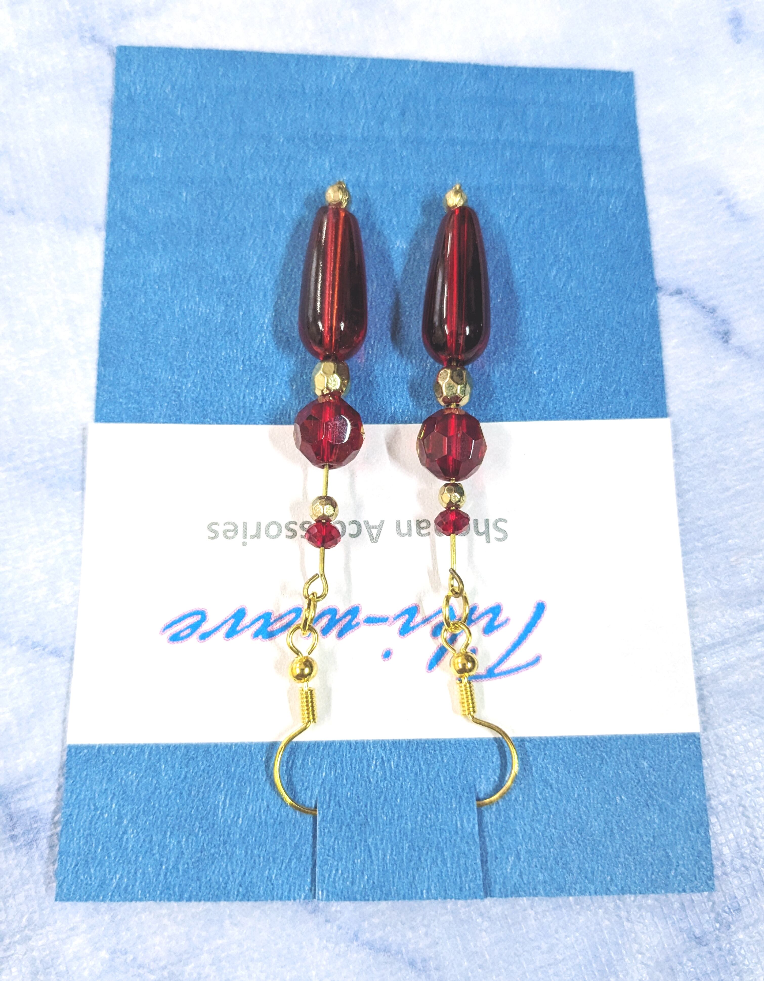 ゴールドピアス ワインカラー アロー&カットボール デザインピアス A-365
