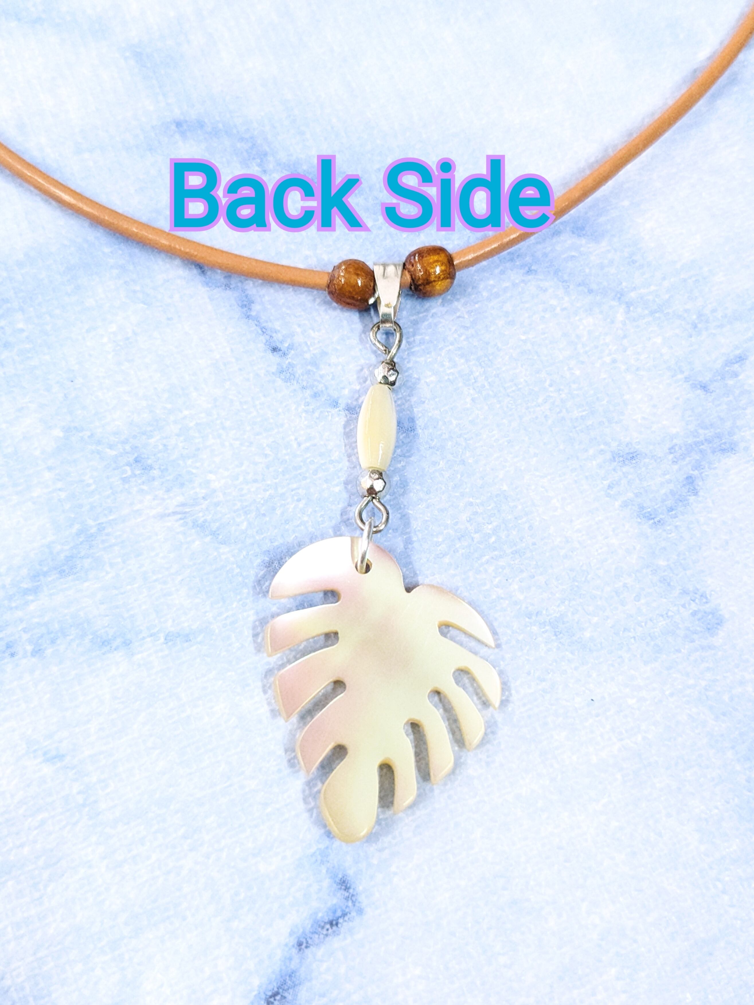 ハワイアンネックレス 夜光貝シェル モンステラ& スワロCZ 本革紐 M-527