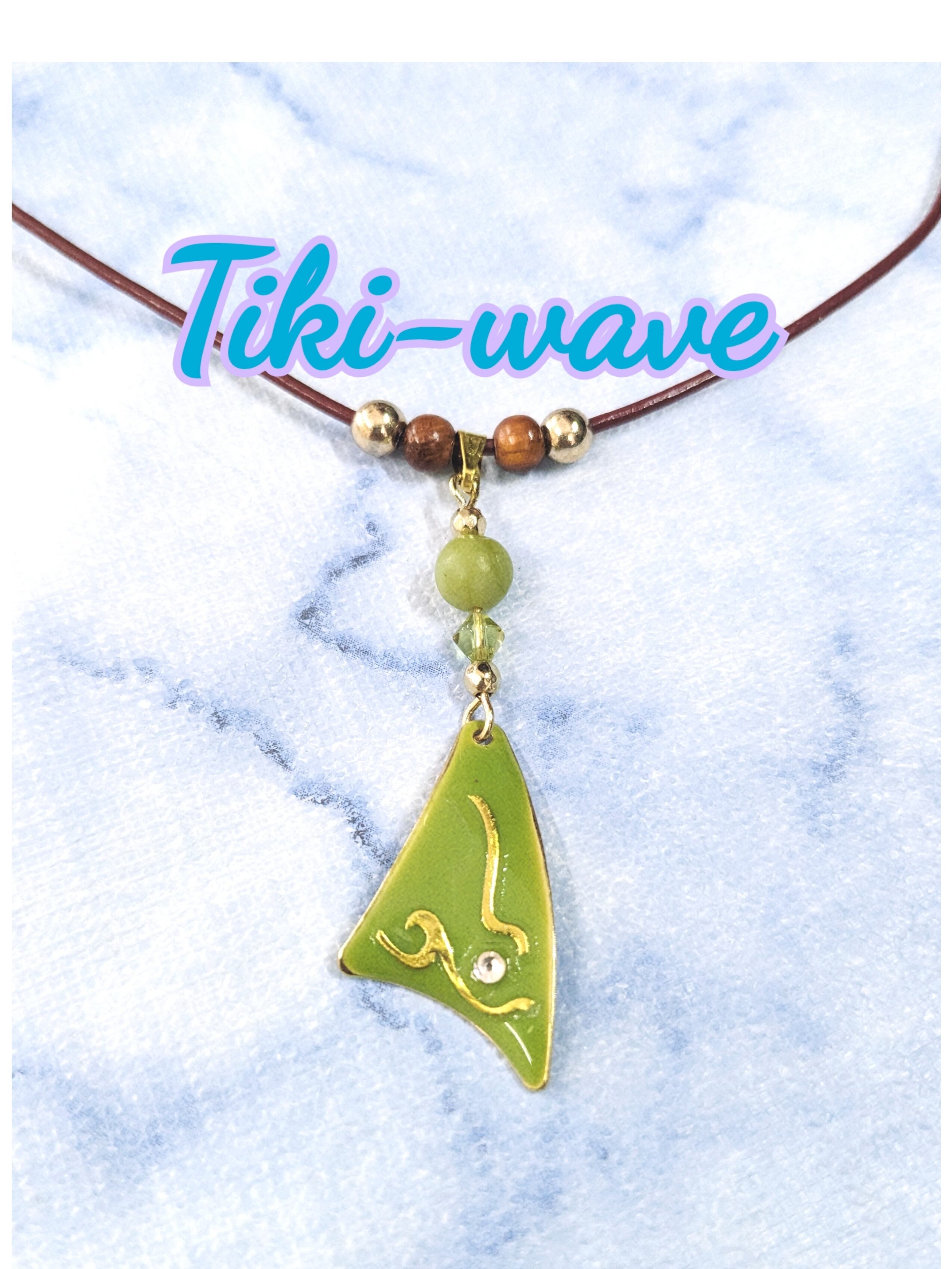 ハワイアンネックレス グリーンカラー サーフボード フィン &ストーン B-352