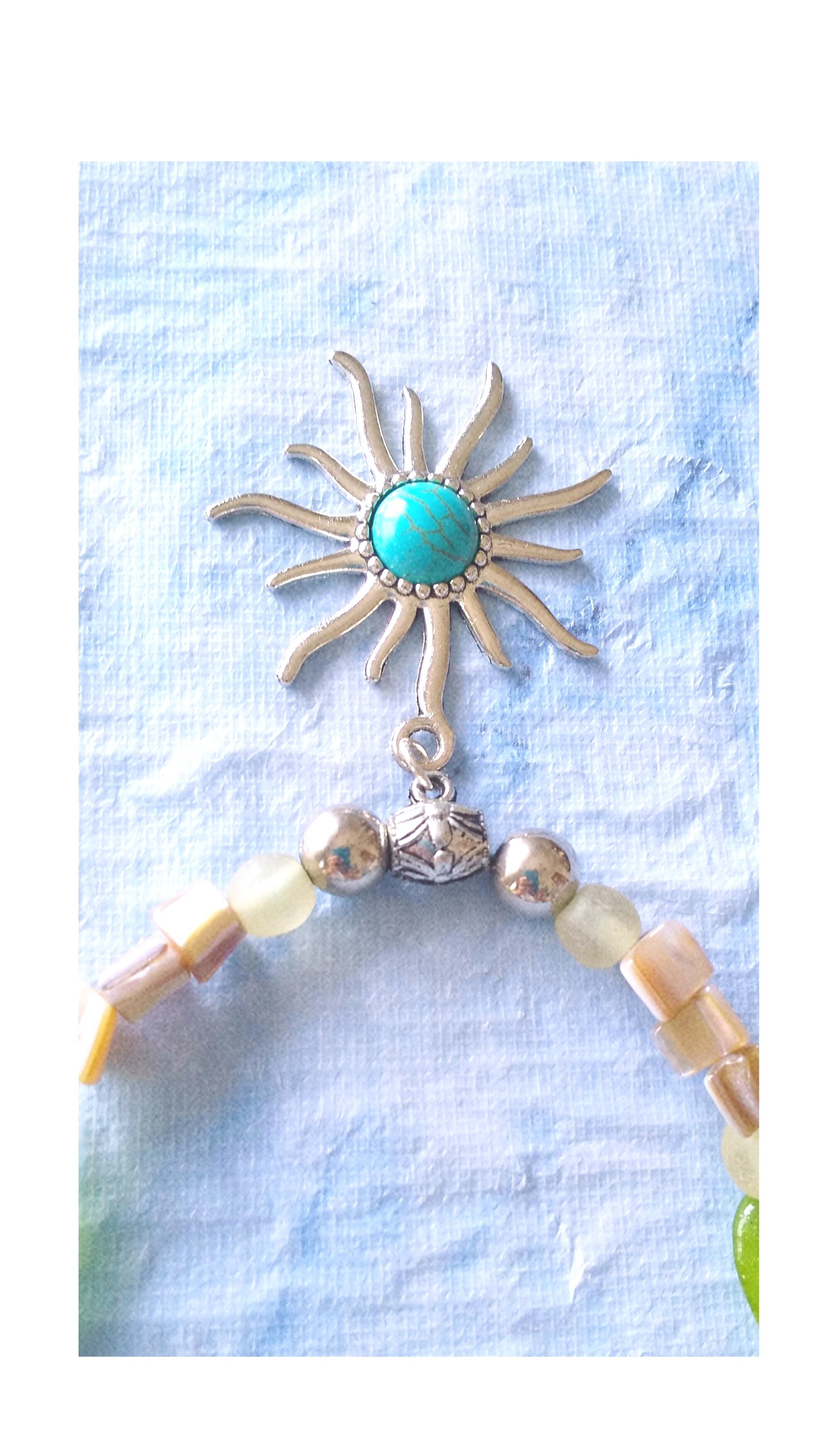ハワイアンネックレス シルバーラジアル&ターコイズ ブルービーズ Y-809