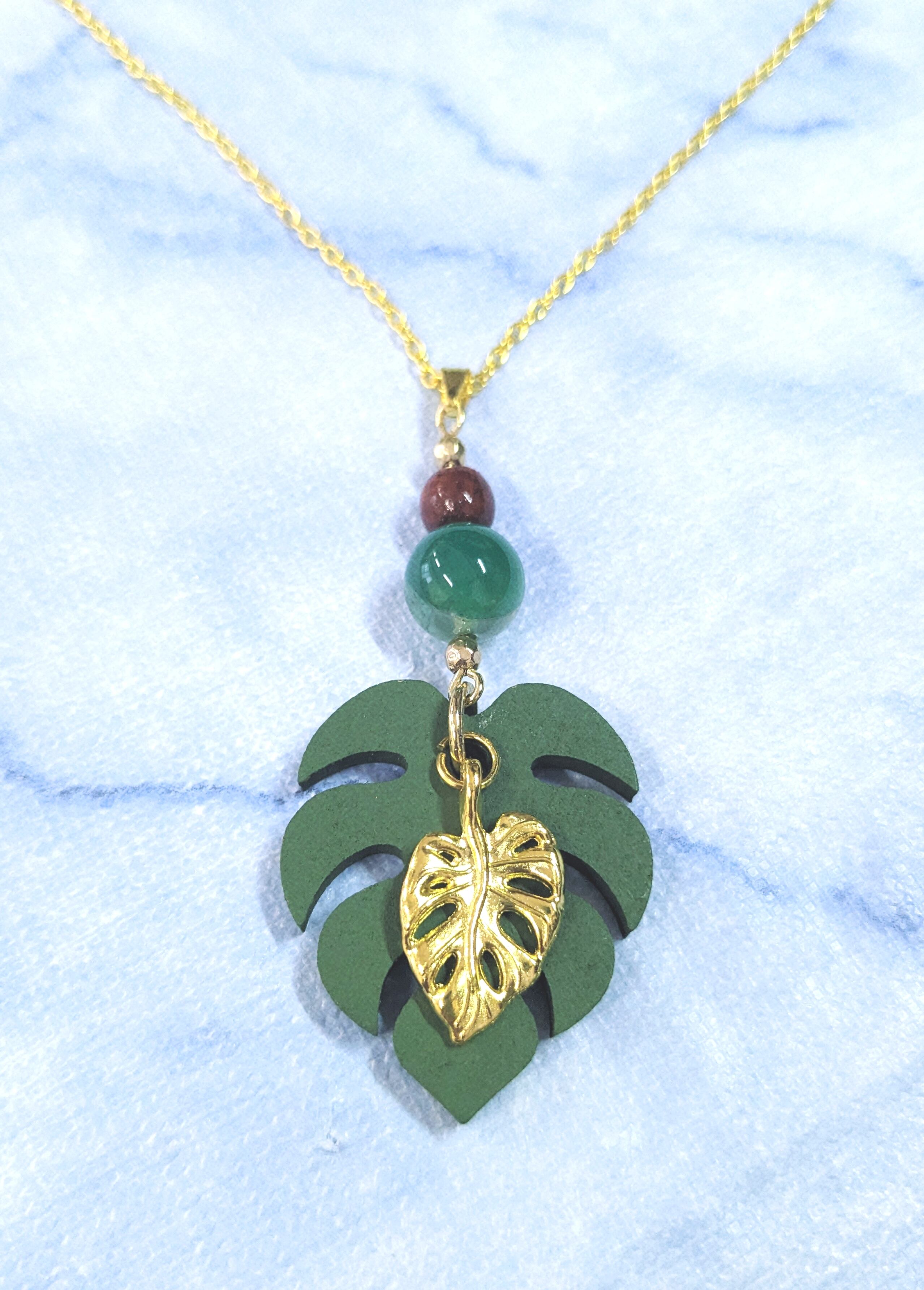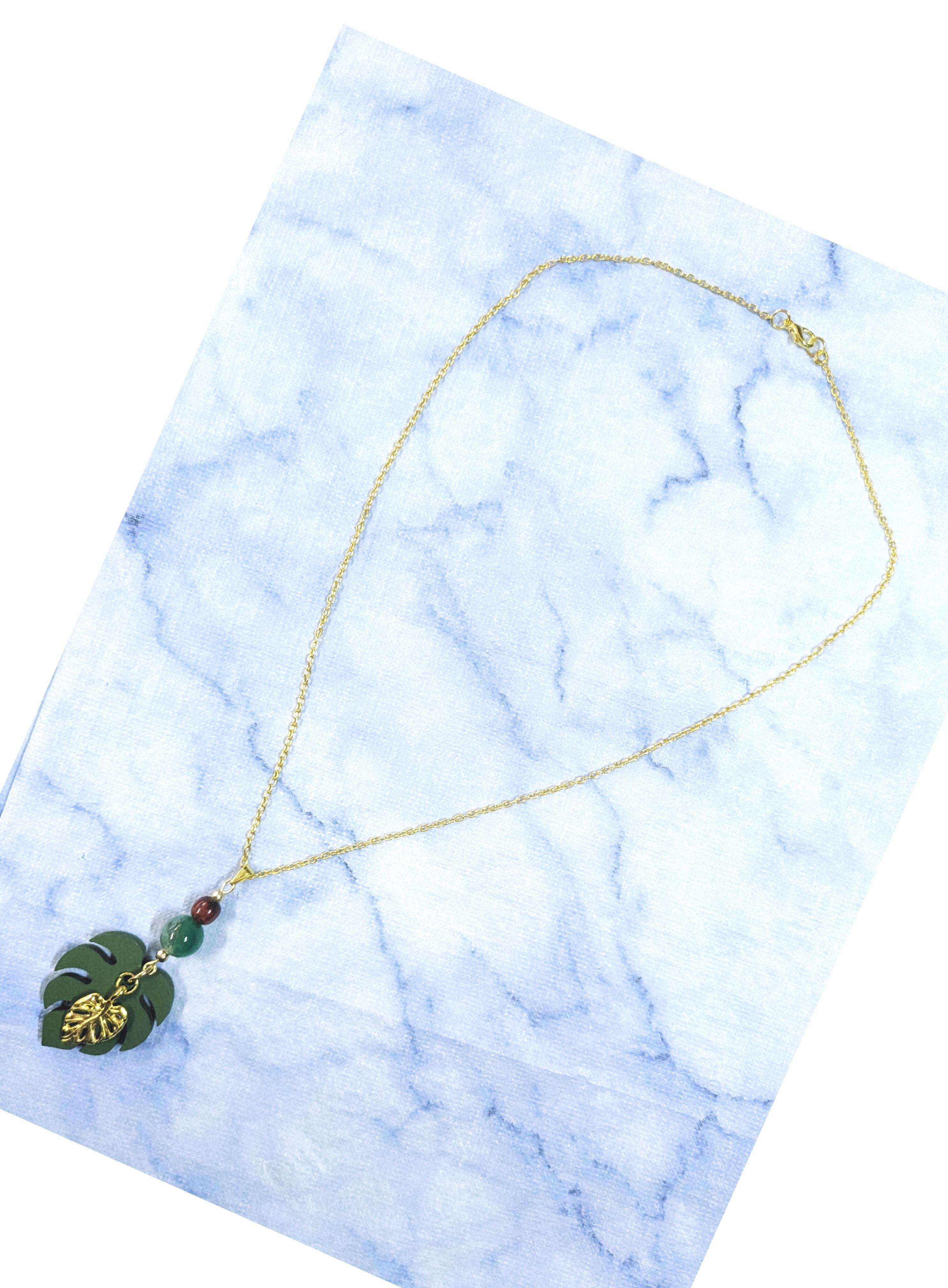 ハワイアンネックレス グリーンウッドモンステラ& ゴールドモンステラ M-529
