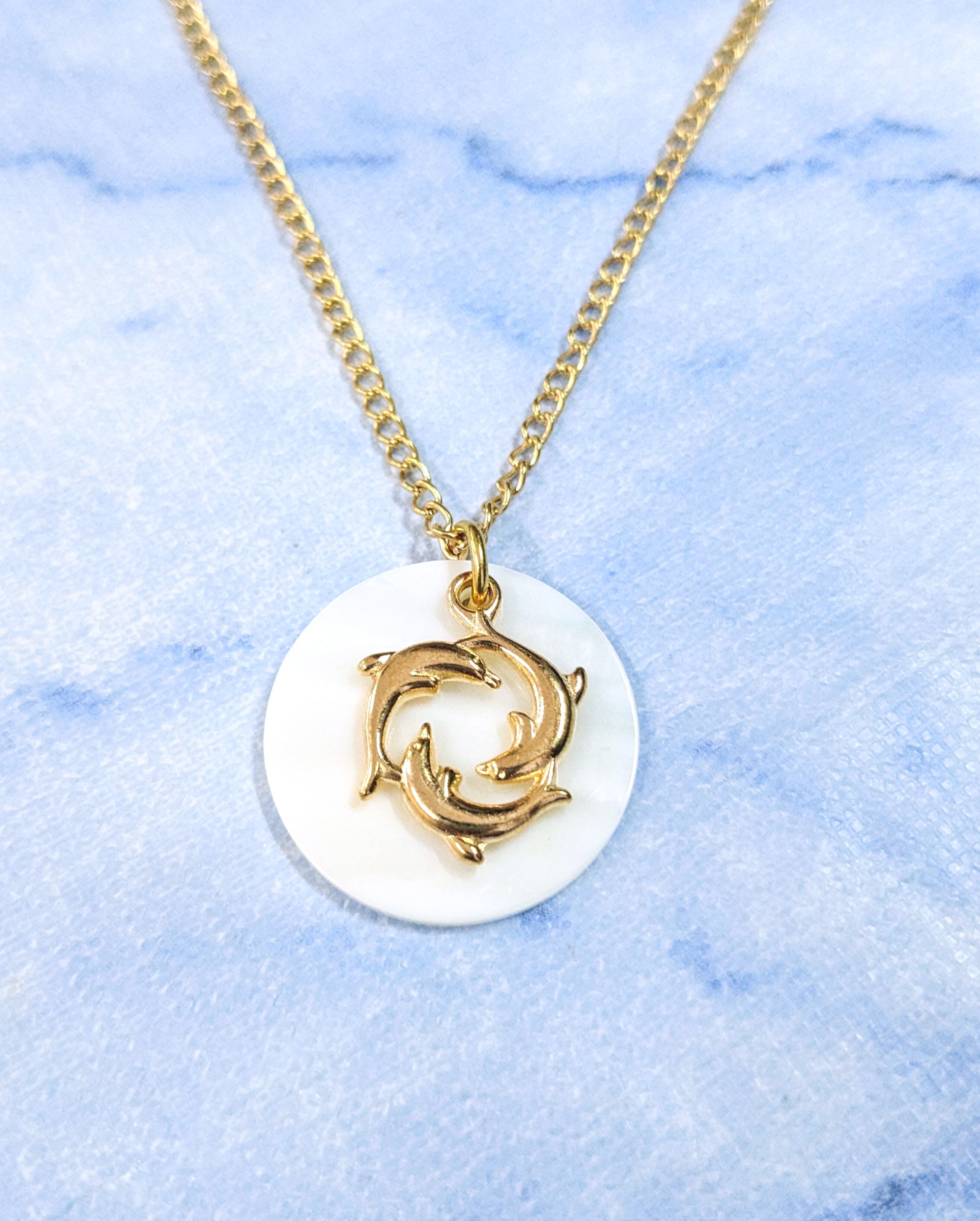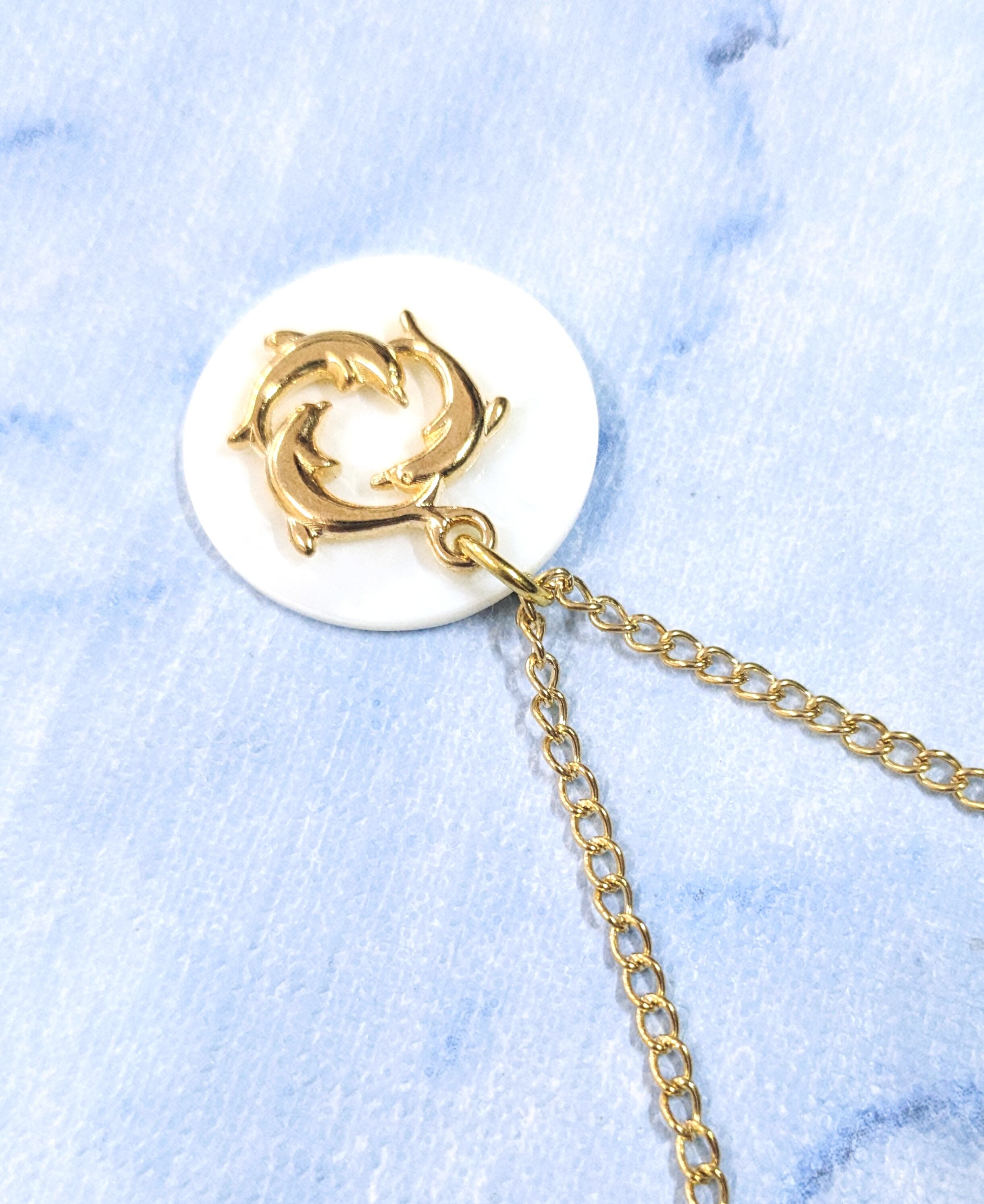 ハワイアンネックレス ゴールドカラー ドルフィン& ホワイトシェル D-240